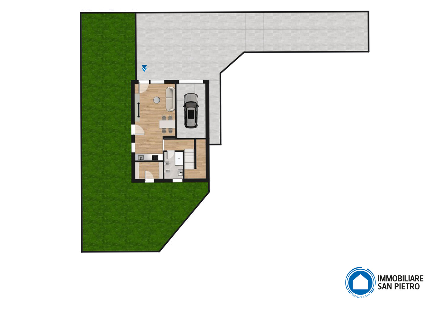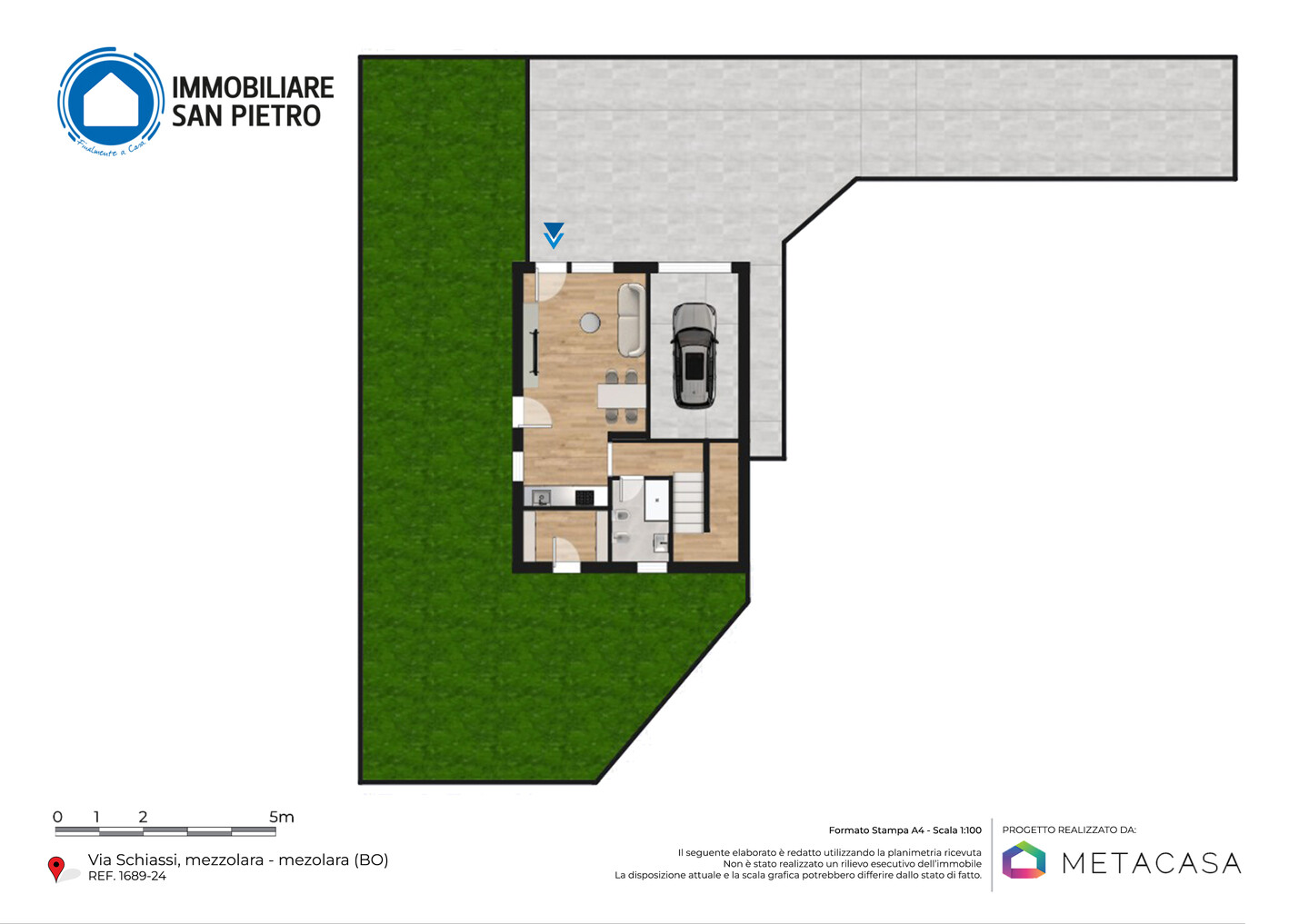 In fase di realizzazione, nel cuore di Mezzolara, sorgerà questa elegante porzione di villa trifamiliare, disposta su due livelli e circondata da un ampio giardino privato, che combina un’area verde e una zona pavimentata.