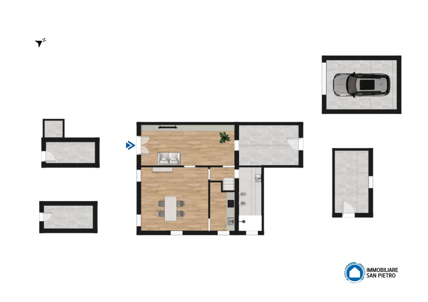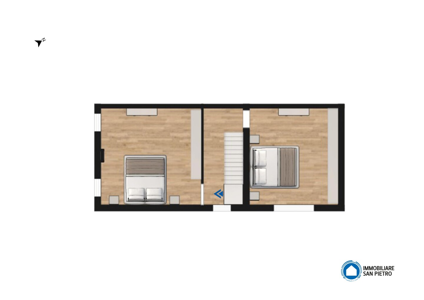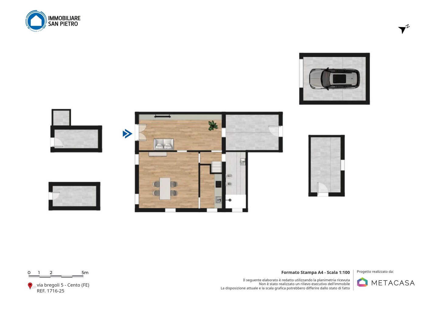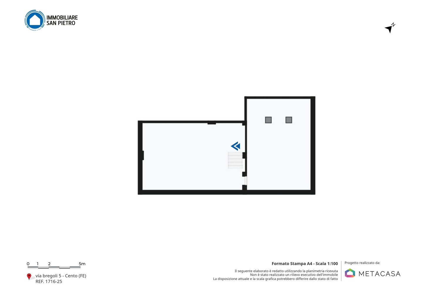 Porzione di bifamiliare composta da ingresso arredabile, soggiorno con cucinotto, bagno, cantina e centrale termica. Scala interna che porta al primo piano composto da 2 camere matrimoniali ed accesso ad un sottotetto grezzo ad uso soffitta. Giardino in condivisione con l’altro confinante, il tutto di proprietà della partecipanza agraria di Cento al quale viene riconosciuta una piccola somma annuale.