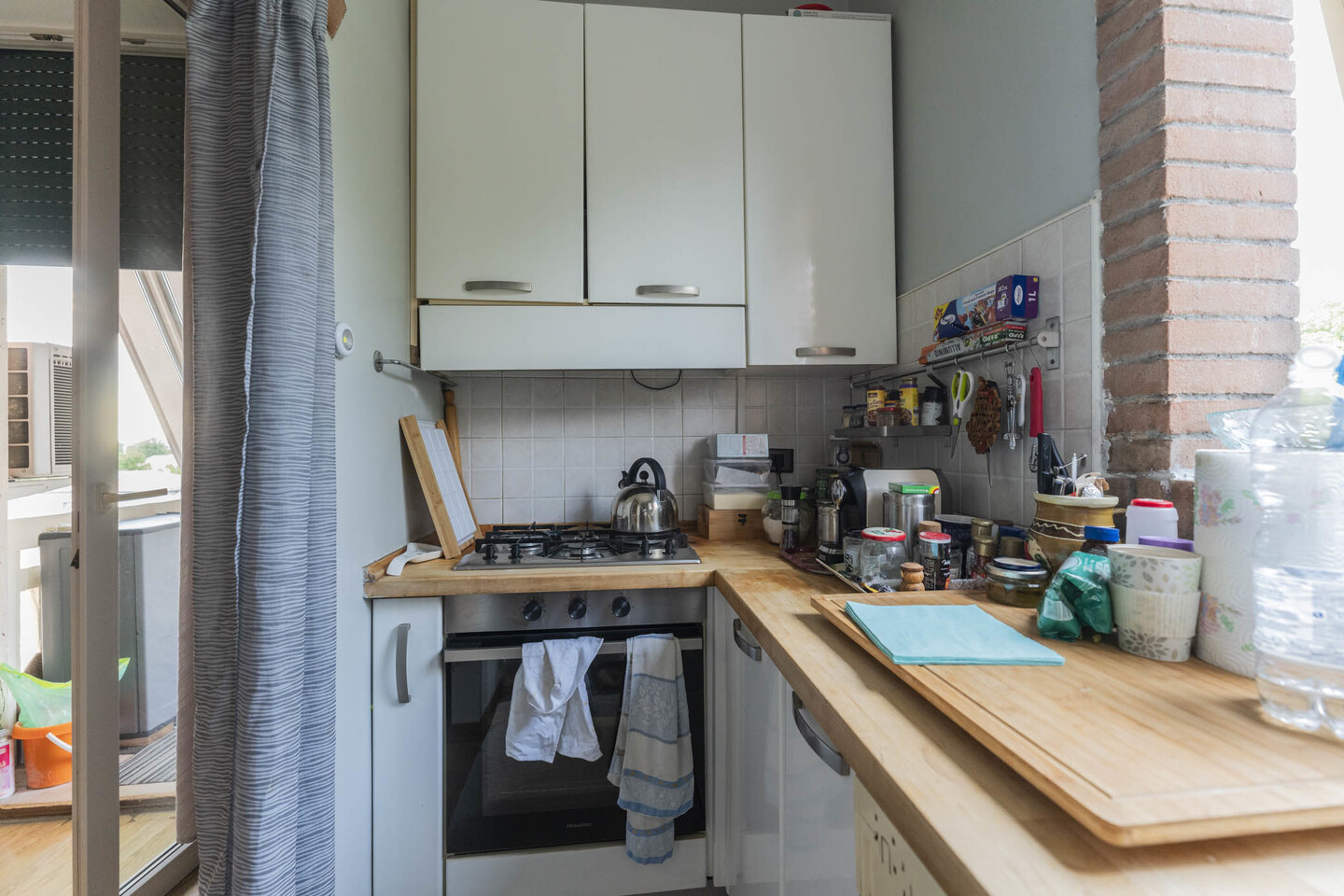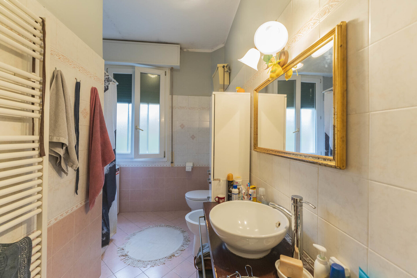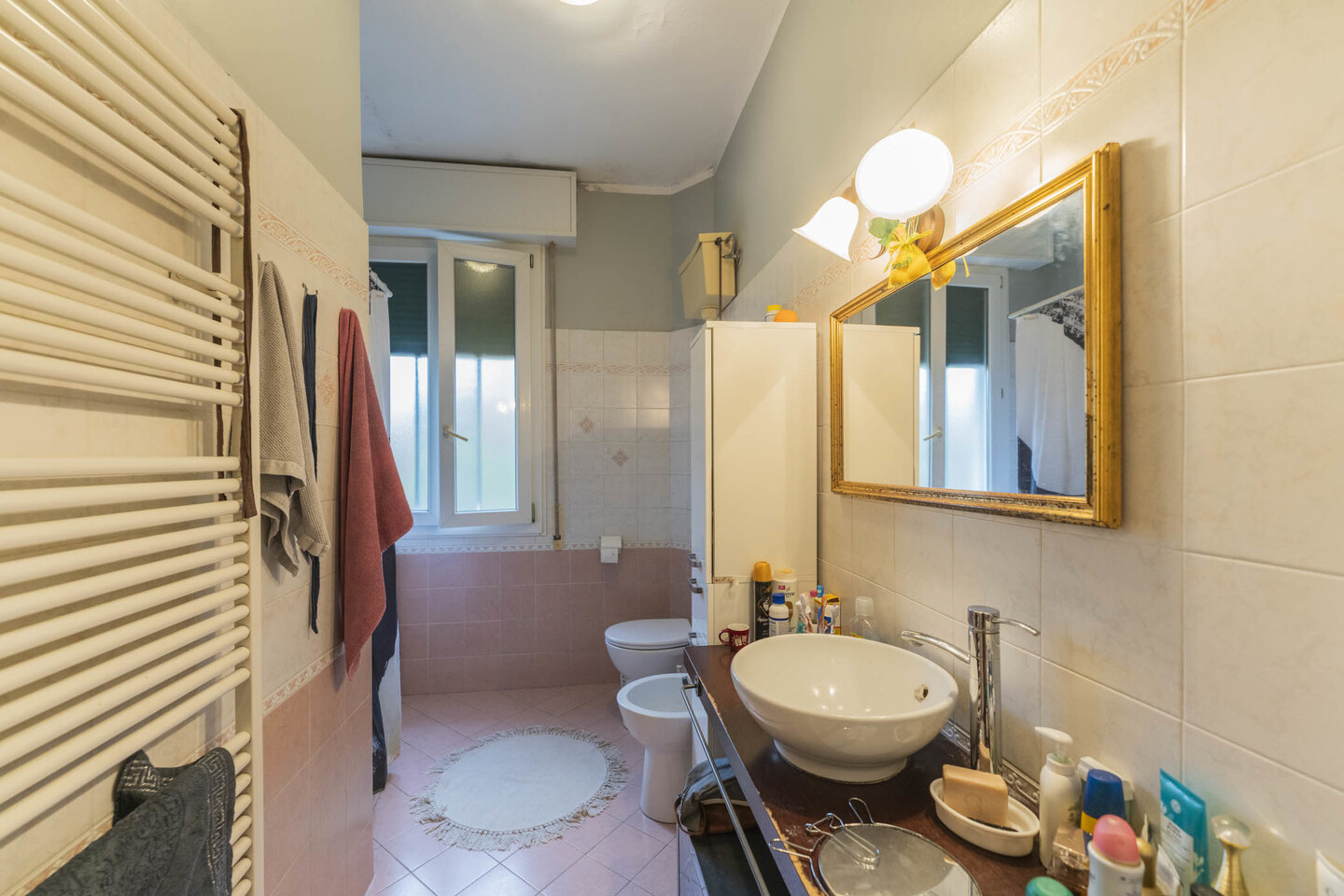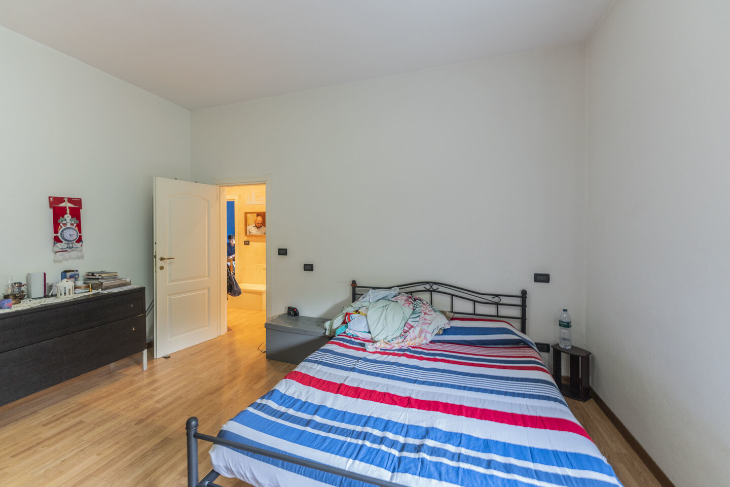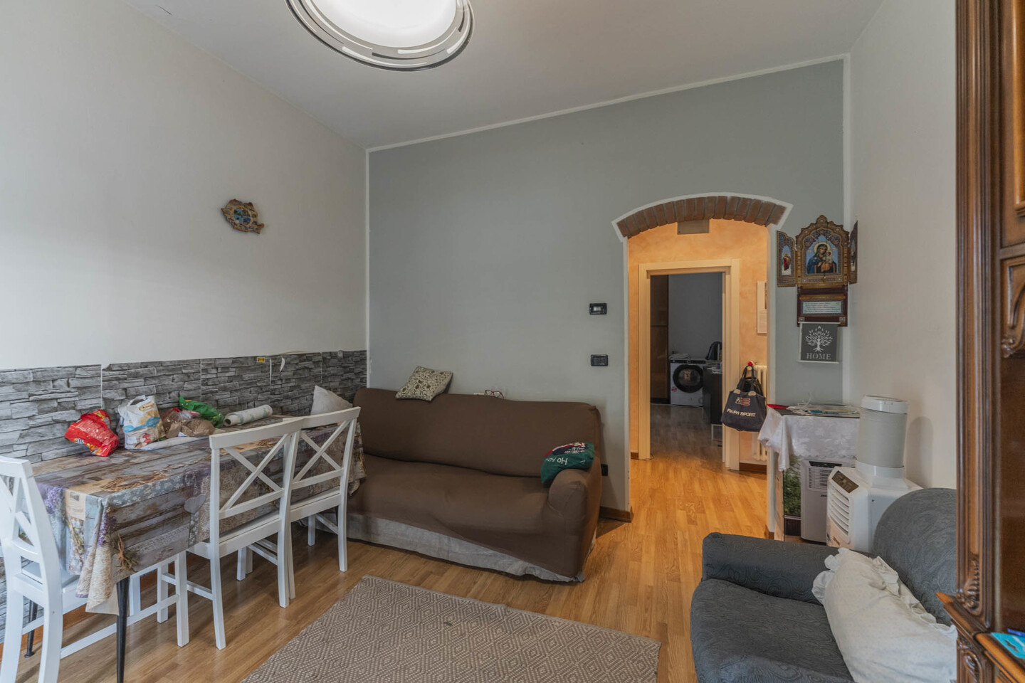 L’immobile è situato al terzo piano e così composto: ingresso, soggiorno con cucinotto (dai quali è possibile accedere direttamente al balcone), camera matrimoniale, camera doppia e bagno. Completano la proprietà soffitta, garage e cantina.