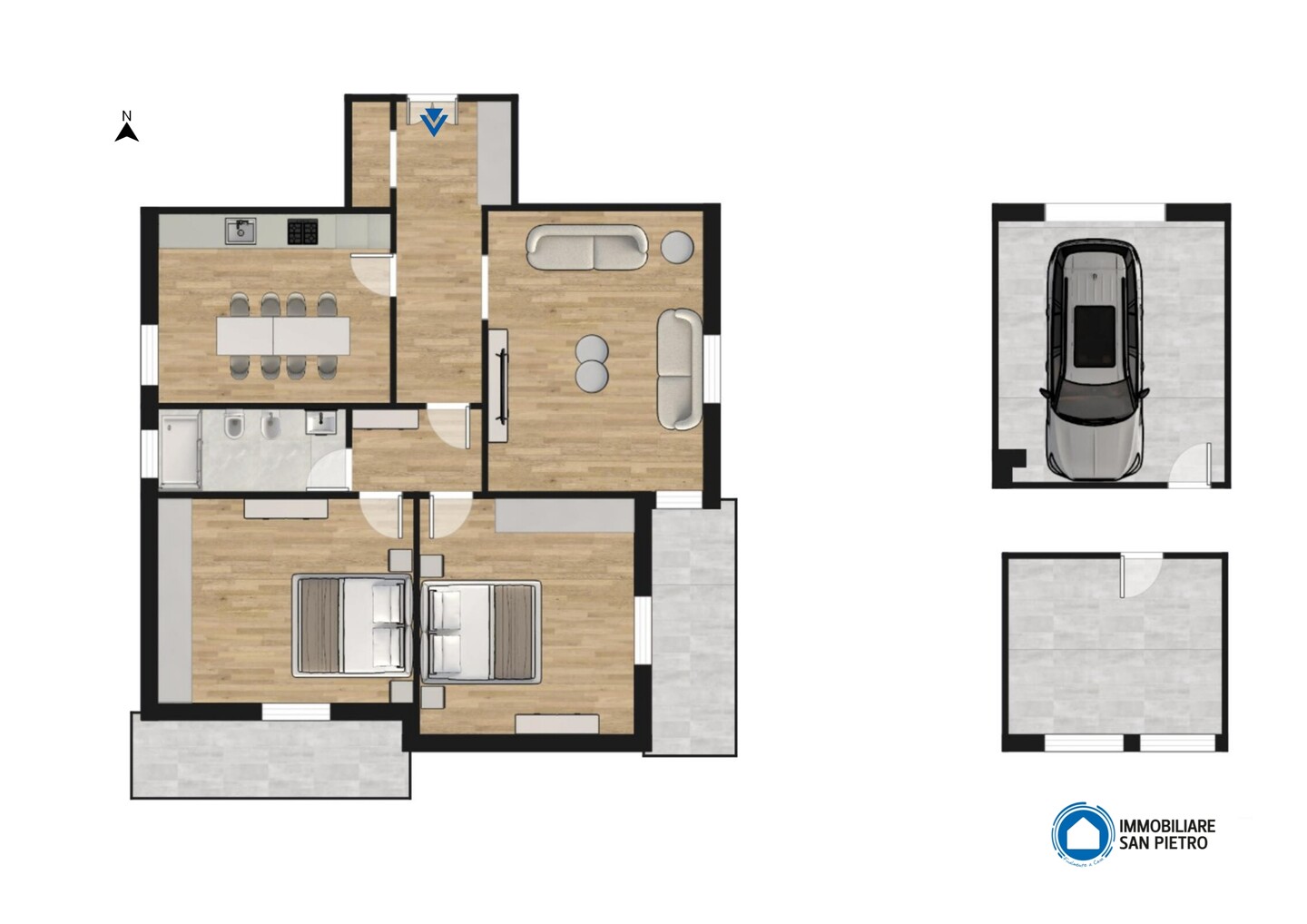 L’immobile è inoltre dotato di inferriate, porta blindata, garage e cantina, elementi che completano una proposta interessante per chi cerca ambienti comodi e la possibilità di valorizzarli tramite una ristrutturazione su misura.