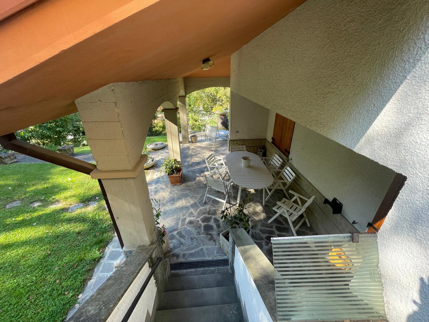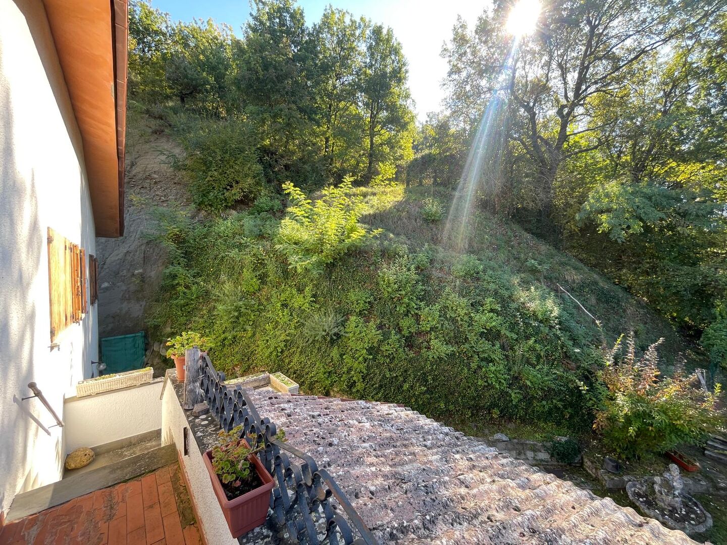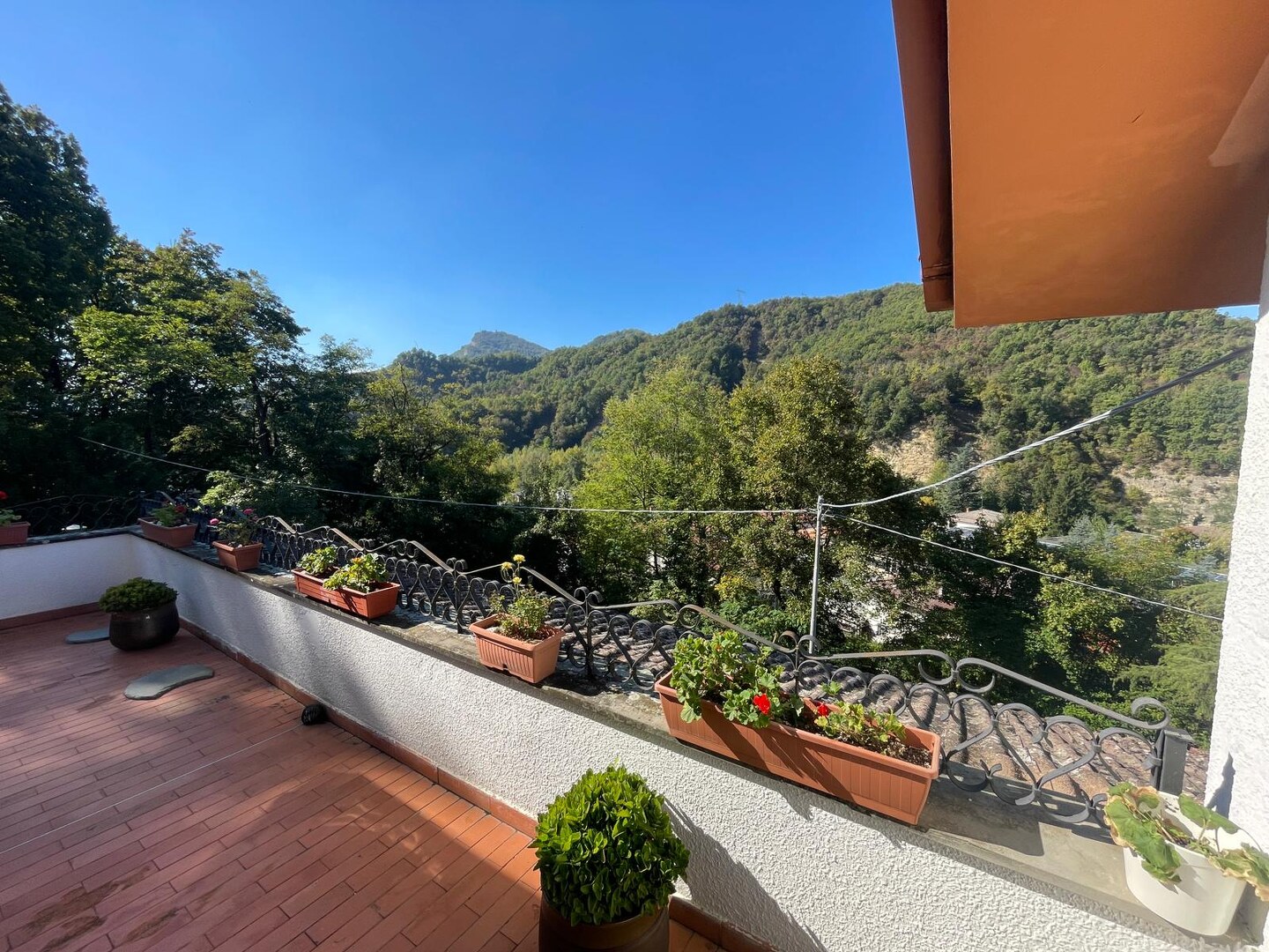 Risalendo dal giardino privato, attraverso la scala che conduce al primo piano, si arriva a un terrazzo abitabile che sembra sospeso sulla vallata: è da qui che si entra in casa, ed è qui che si percepisce subito la bellezza di questo luogo. L’appartamento si apre con un ingresso che accompagna verso un salone luminoso, ampio, ideale per vivere momenti di vera quotidianità. La cucina, grande e accogliente, è pensata per chi ama la convivialità, mentre la zona notte offre tre camere da letto che trasmettono tranquillità e spazi generosi. I due bagni completano una distribuzione comoda e funzionale. Completa l’abitazione due cantine ed un ampio laboratorio. È una casa che unisce privacy, panorama e ambienti caldi, dove ogni stanza racconta la sensazione di vivere in alto, in un punto privilegiato del paesaggio.