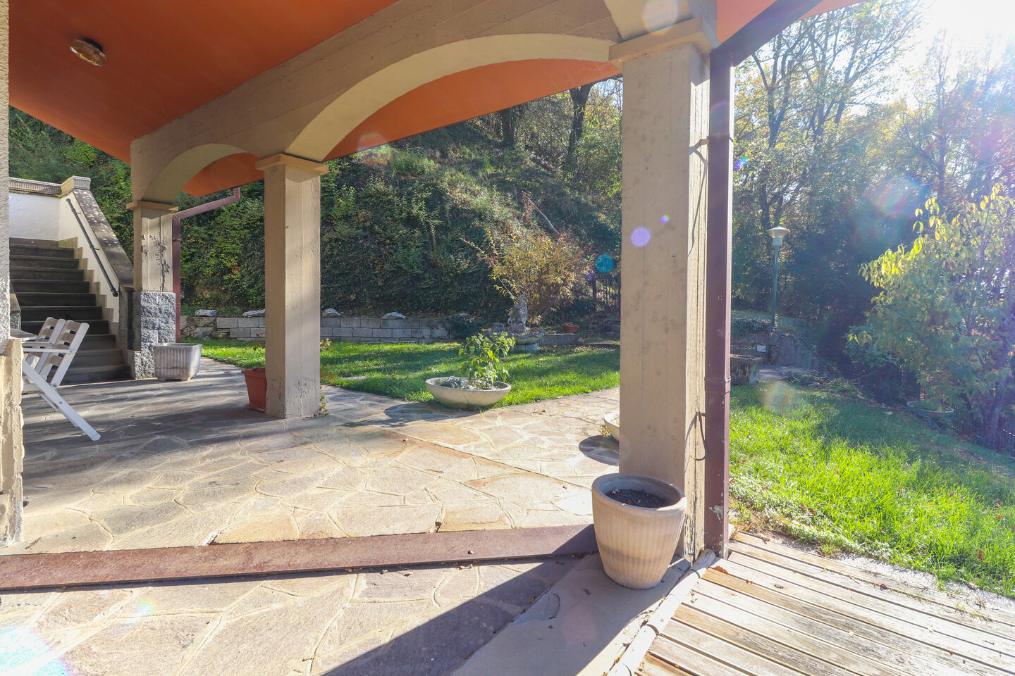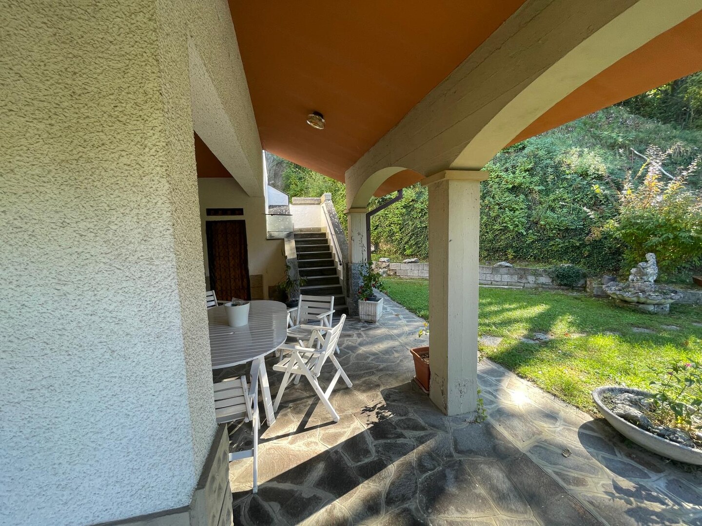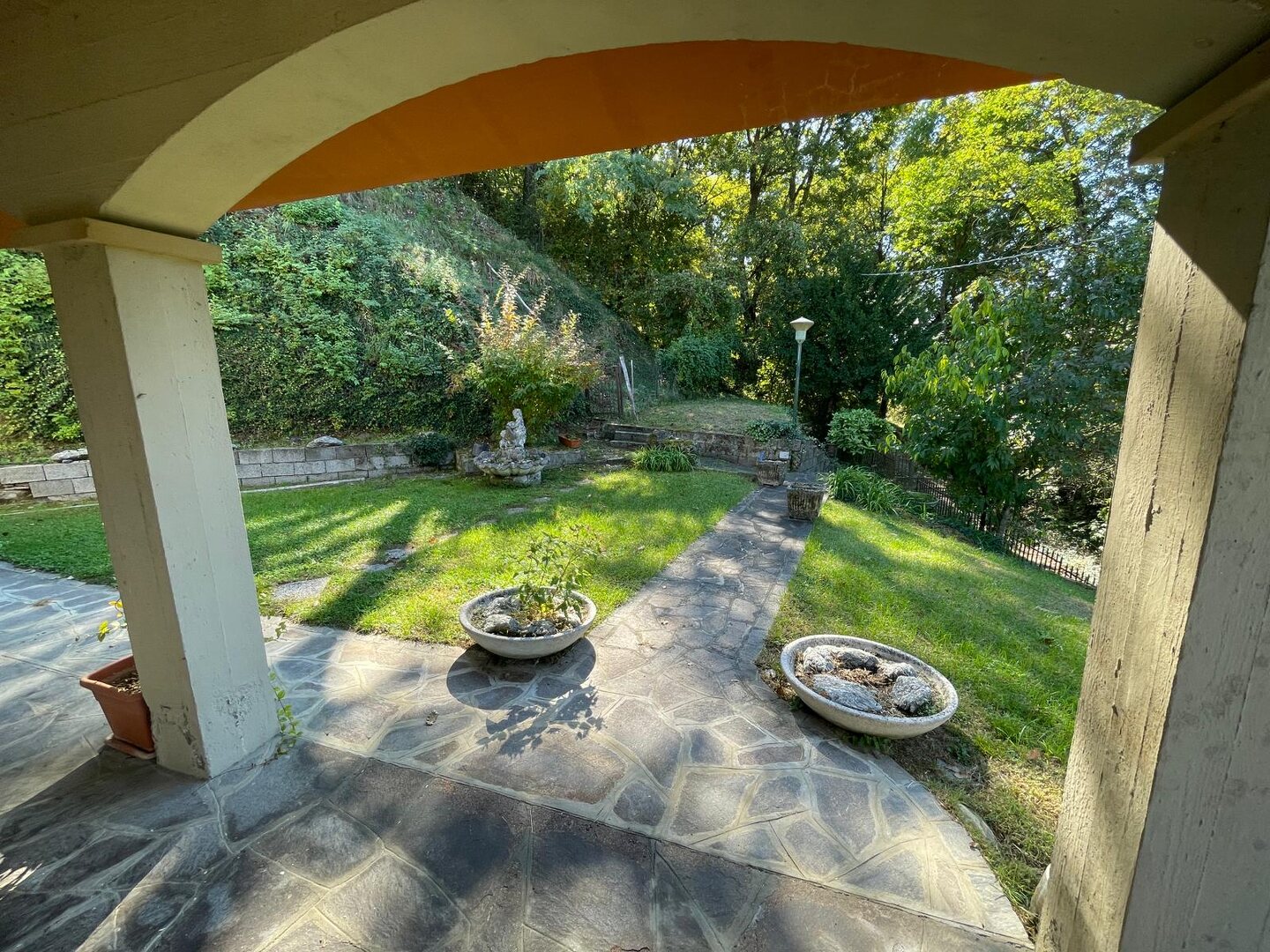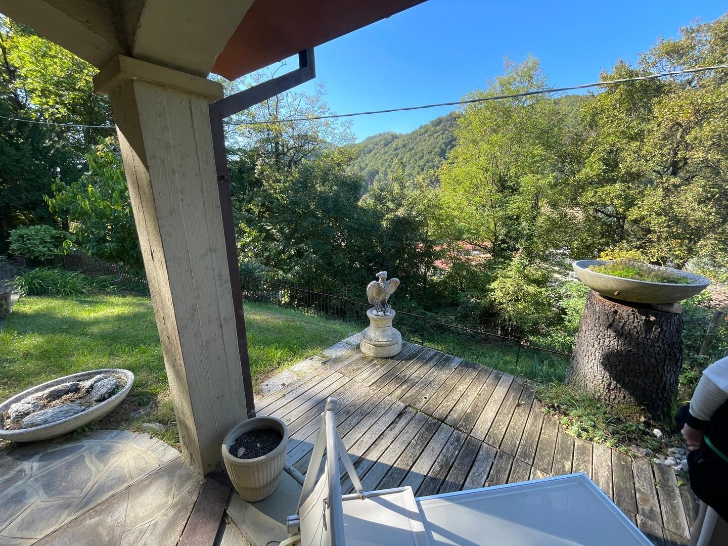 Risalendo dal giardino privato, attraverso la scala che conduce al primo piano, si arriva a un terrazzo abitabile che sembra sospeso sulla vallata: è da qui che si entra in casa, ed è qui che si percepisce subito la bellezza di questo luogo. L’appartamento si apre con un ingresso che accompagna verso un salone luminoso, ampio, ideale per vivere momenti di vera quotidianità. La cucina, grande e accogliente, è pensata per chi ama la convivialità, mentre la zona notte offre tre camere da letto che trasmettono tranquillità e spazi generosi. I due bagni completano una distribuzione comoda e funzionale. Completa l’abitazione due cantine ed un ampio laboratorio. È una casa che unisce privacy, panorama e ambienti caldi, dove ogni stanza racconta la sensazione di vivere in alto, in un punto privilegiato del paesaggio.