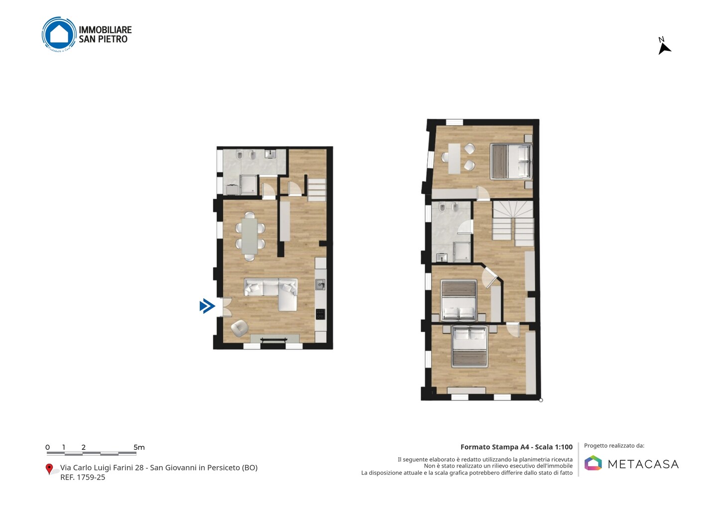 L’abitazione presenta finiture di ottima qualità, tra cui porta blindata, infissi in legno con doppio vetro, scuri, zanzariere e inferrate in tutti gli ambienti, oltre a impianto di climatizzazione e riscaldamento a pavimento che garantiscono comfort durante tutto l’anno. Il piano terra accoglie un ampio e luminoso soggiorno con angolo cottura, perfettamente organizzato per vivere la zona giorno in modo pratico e contemporaneo, un bagno con doccia e un comodo ripostiglio ricavato nel sottoscala. Al primo piano si sviluppa la zona notte tutta con bellissimi soffitti mansardati in legno, composta da un disimpegno, 2 camere matrimoniali, 1 camera singola e un secondo bagno finestrato sempre con doccia. Possibilità di acquistare a parte a € 60.000 totali i 2 negozi adiacenti in Via Farini 30 e 32, di 15 mq l’uno, utilizzabili anche come deposito o cantina. Per maggiori informazioni visionare gli annunci con rif. 2816-25 e 2817-25 oppure chiamare in agenzia.