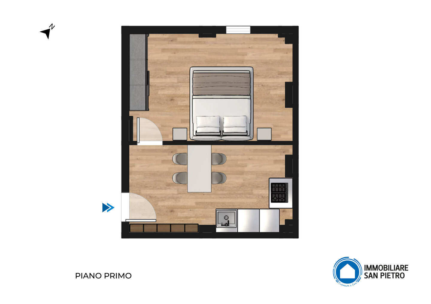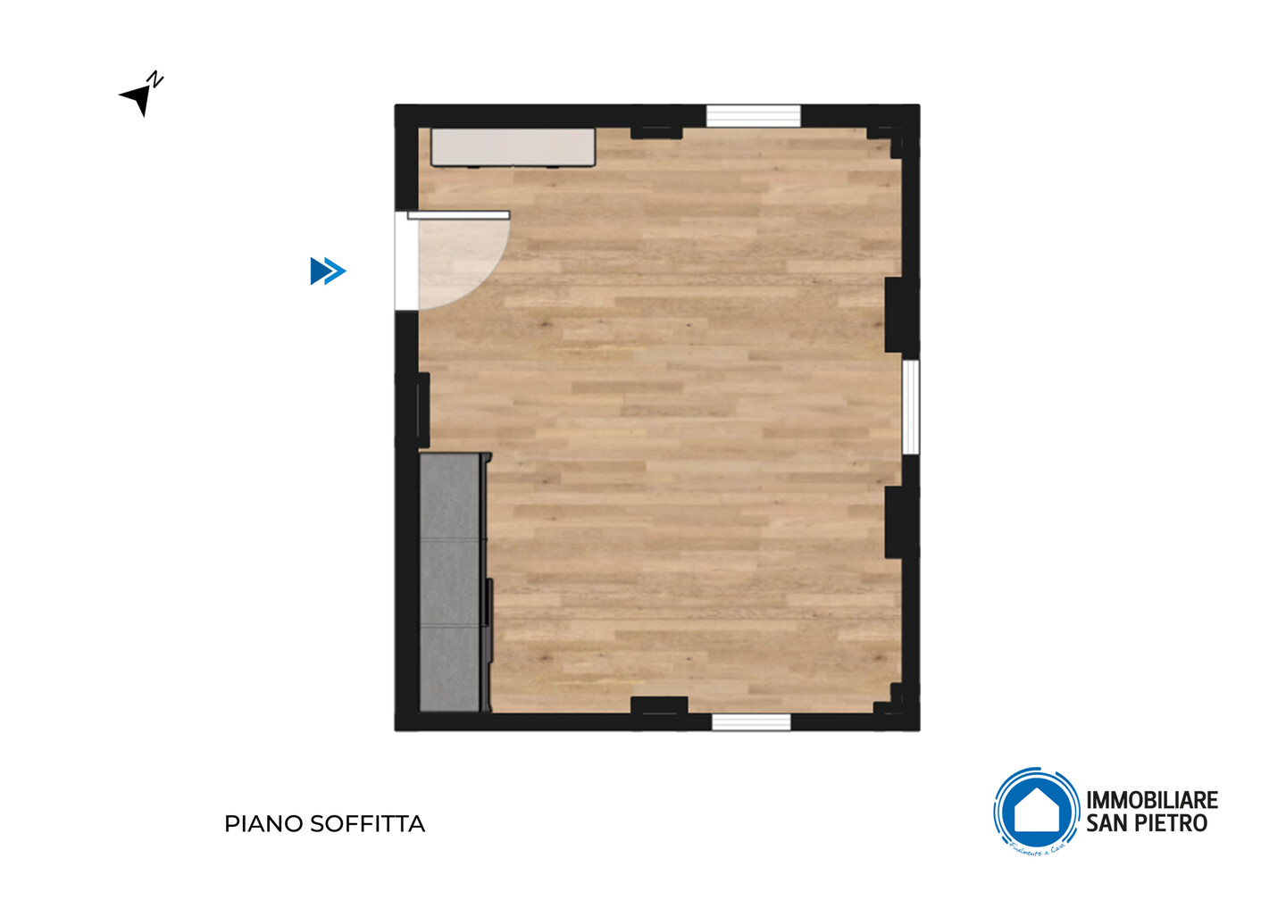 Al primo piano troviamo inoltre l’accesso alla seconda unità abitativa, con cucina e sala, mentre al secondo piano mansardato ulteriore vano.
