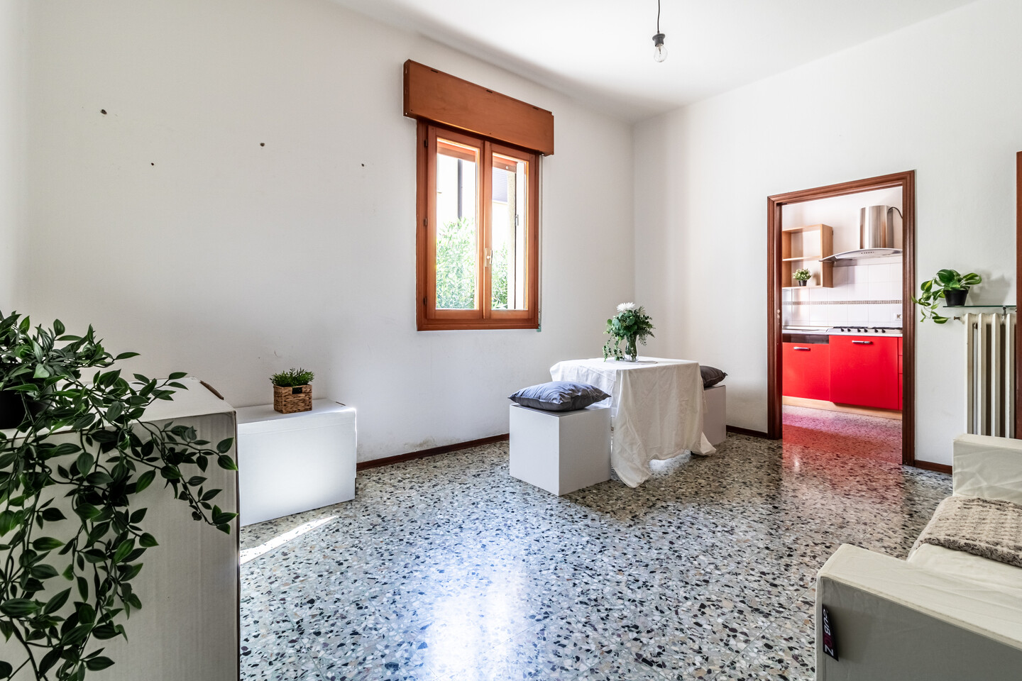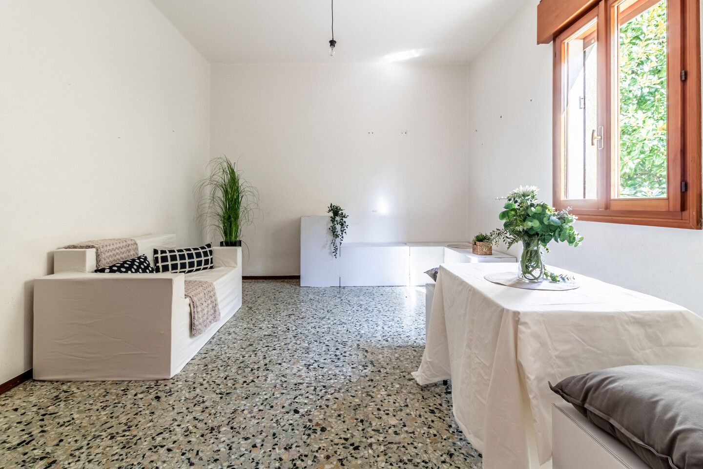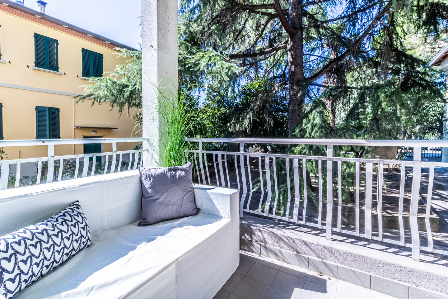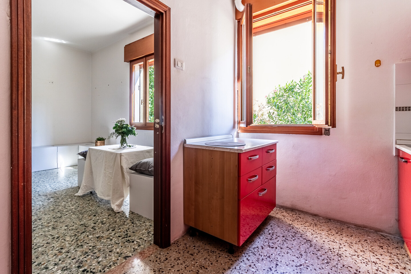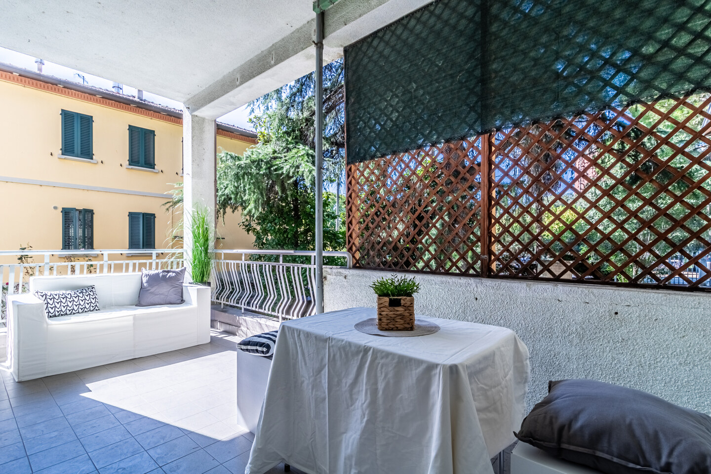 Le particolarità di questo immobile sono la quasi assenza di barriere architettoniche, l’assenza di spese condominiali e la possibilità offerta dal grande terrazzo abitabile completamente coperto ed esposto a ovest.
