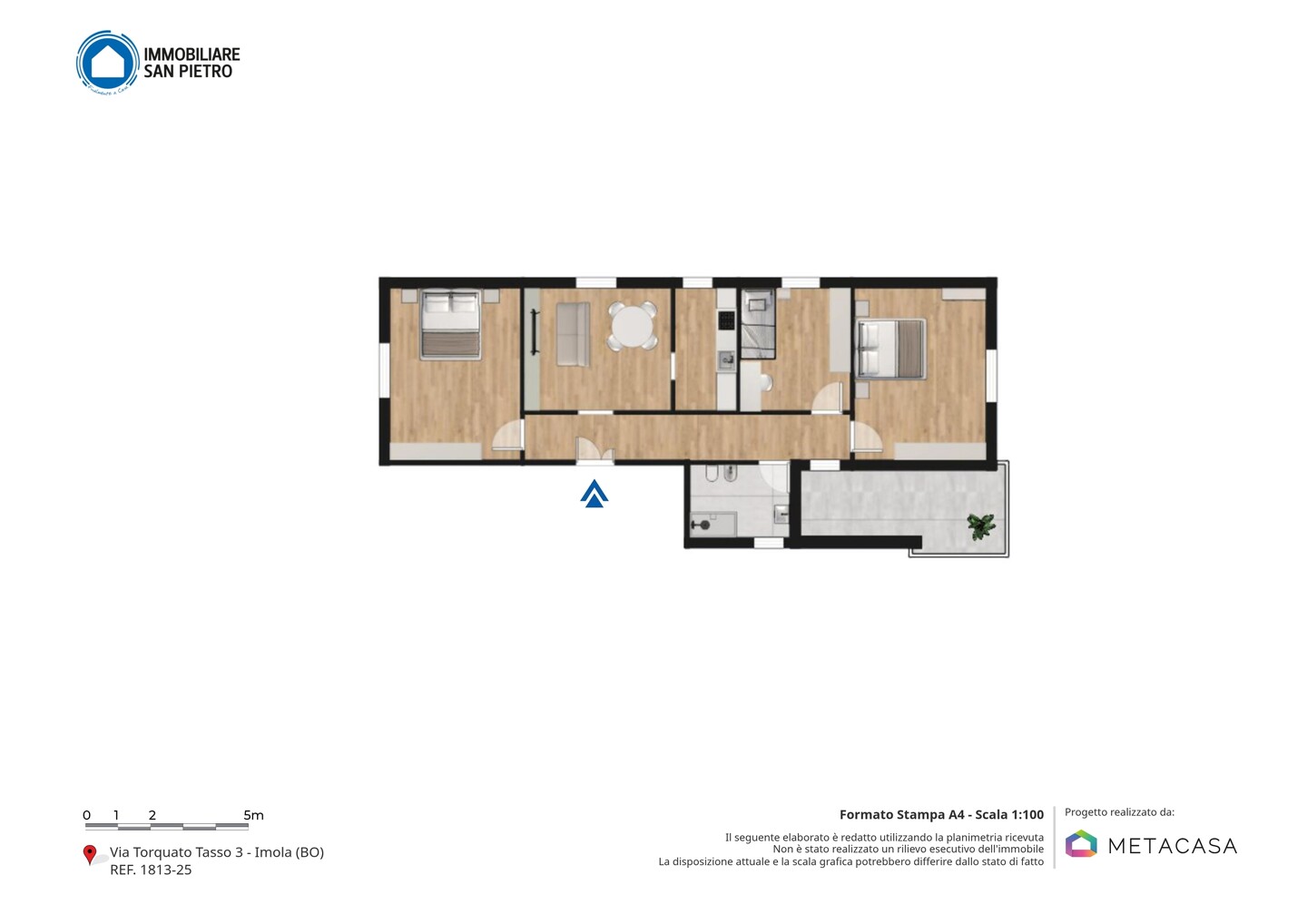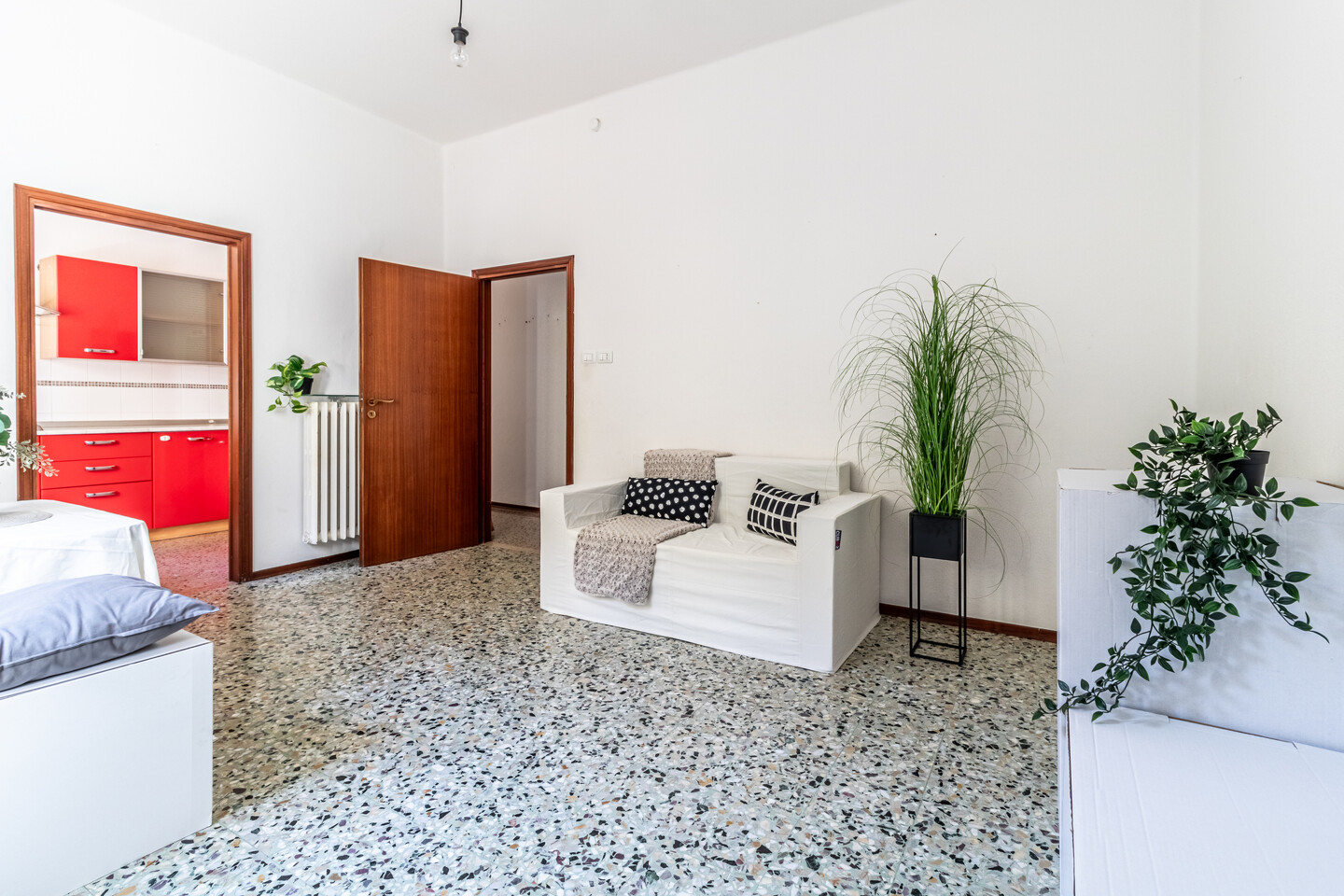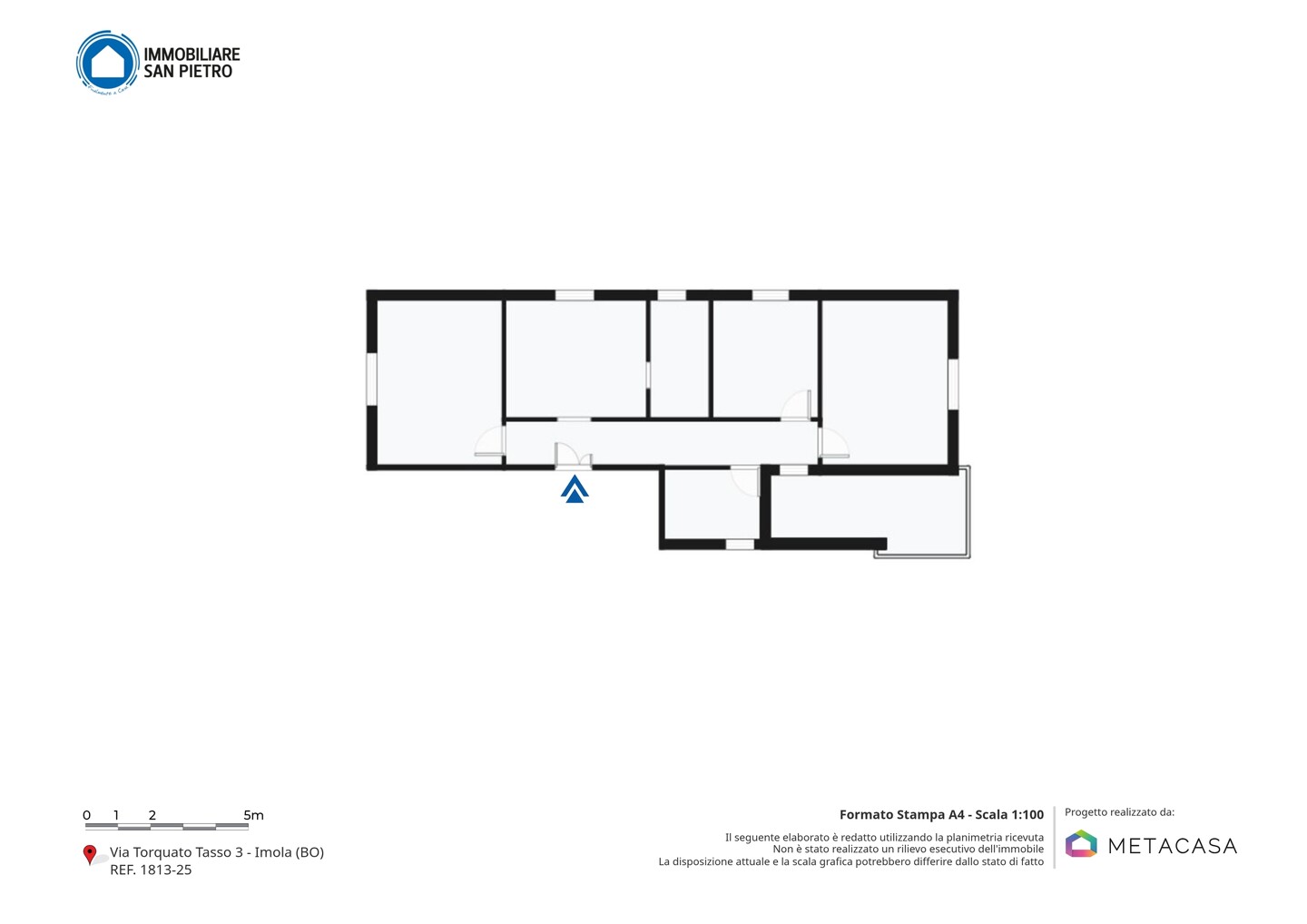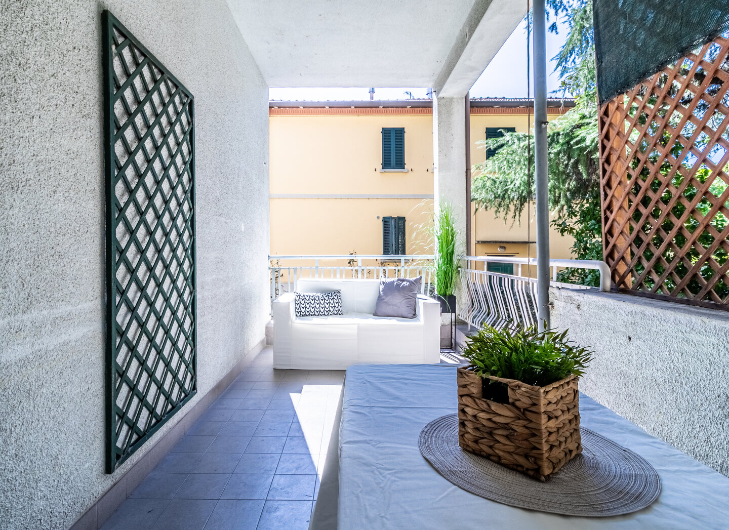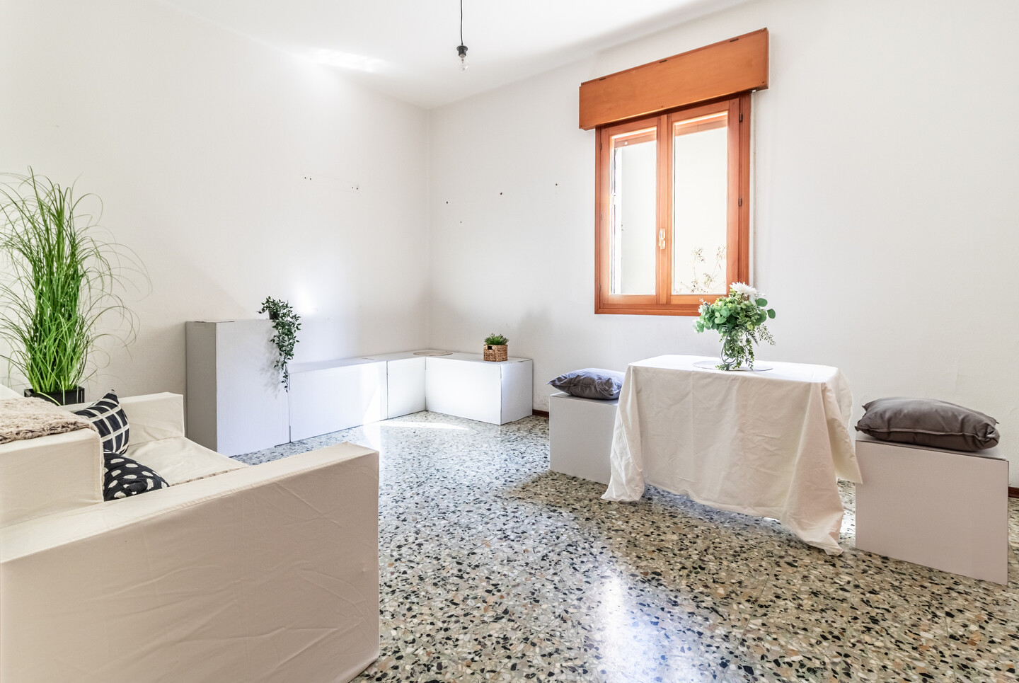 Le particolarità di questo immobile sono la quasi assenza di barriere architettoniche, l’assenza di spese condominiali e la possibilità offerta dal grande terrazzo abitabile completamente coperto ed esposto a ovest.