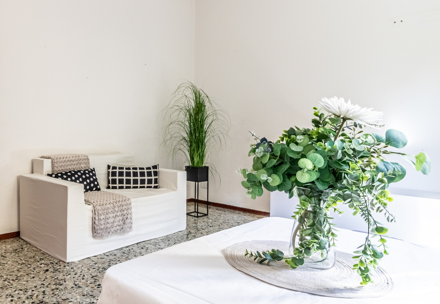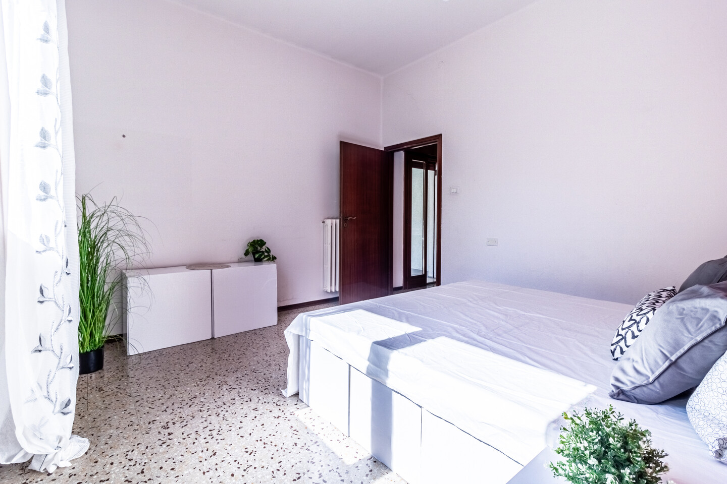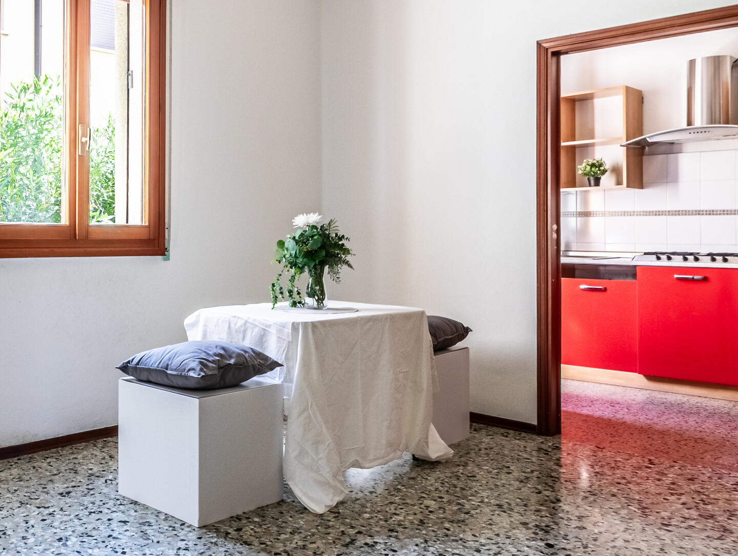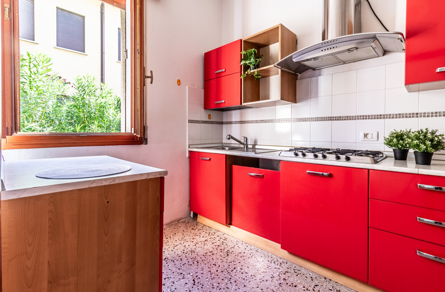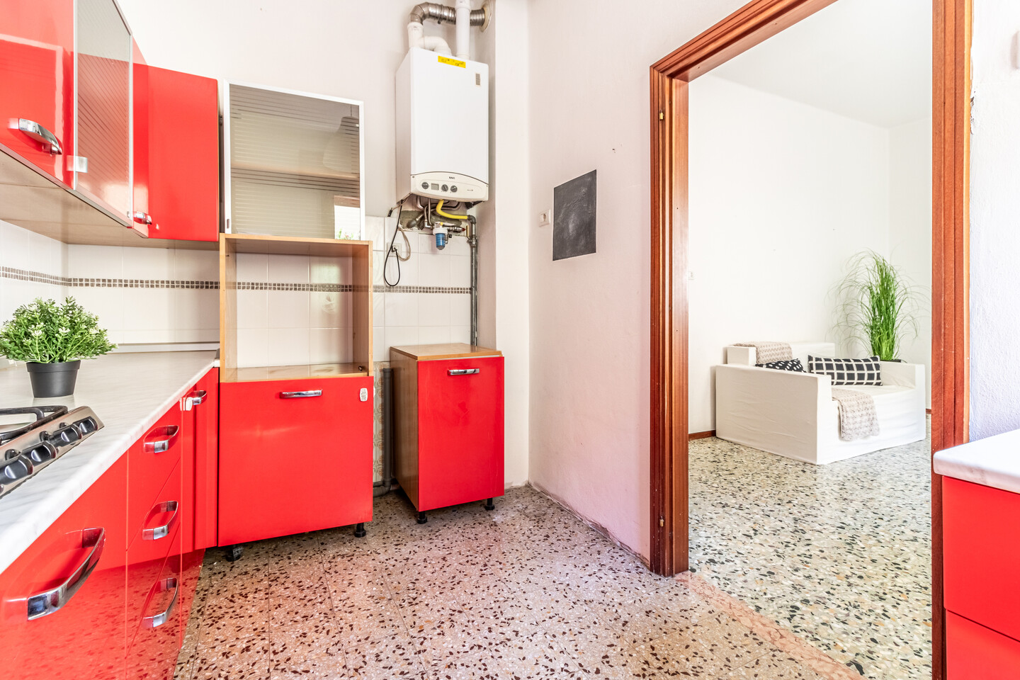 Le particolarità di questo immobile sono la quasi assenza di barriere architettoniche, l’assenza di spese condominiali e la possibilità offerta dal grande terrazzo abitabile completamente coperto ed esposto a ovest.