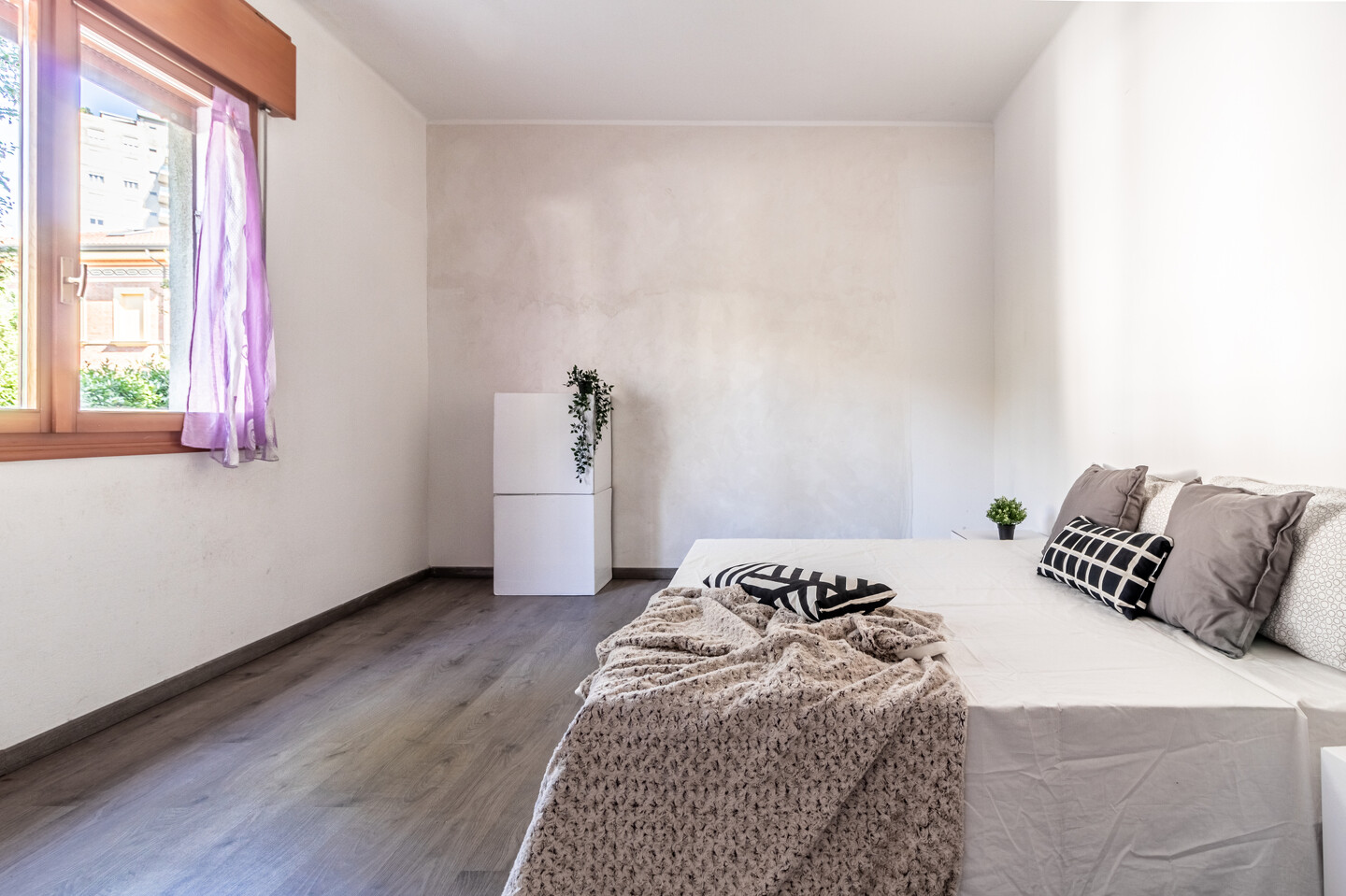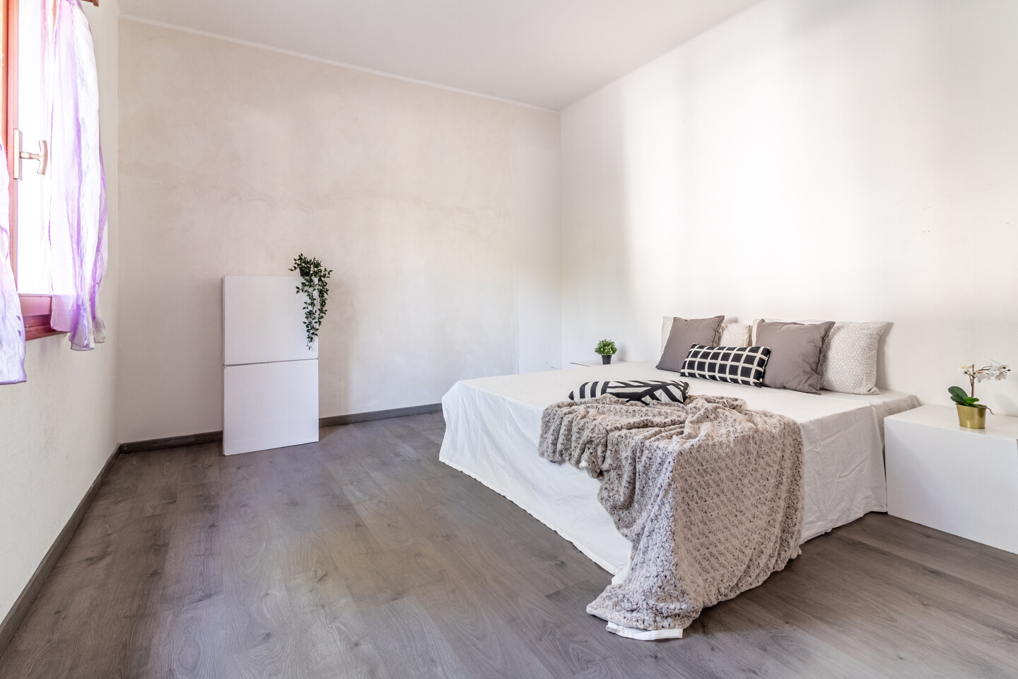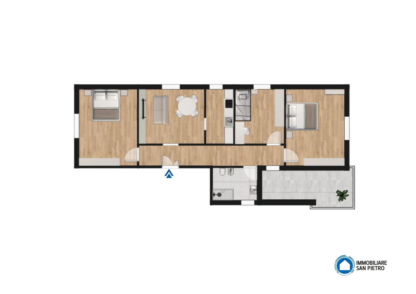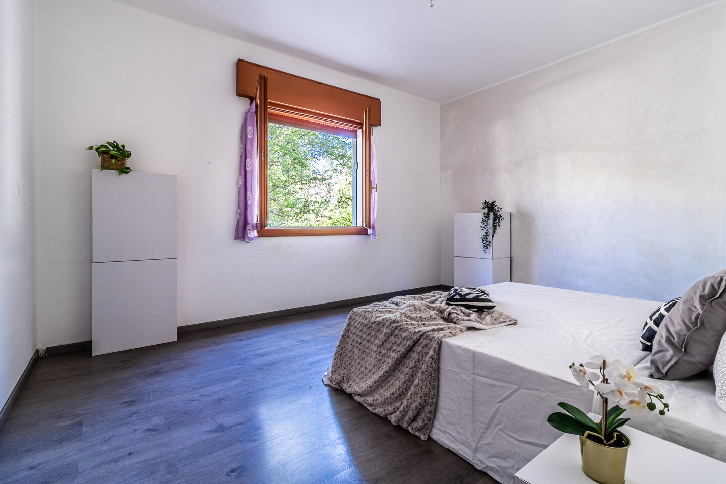 L’abitazione si compone di ingresso su disimpegno, soggiorno luminoso con cucina semi-abitabile separata, un bagno finestrato di ampie dimensioni e 3 camere da letto di cui due matrimoniali ed una singola.