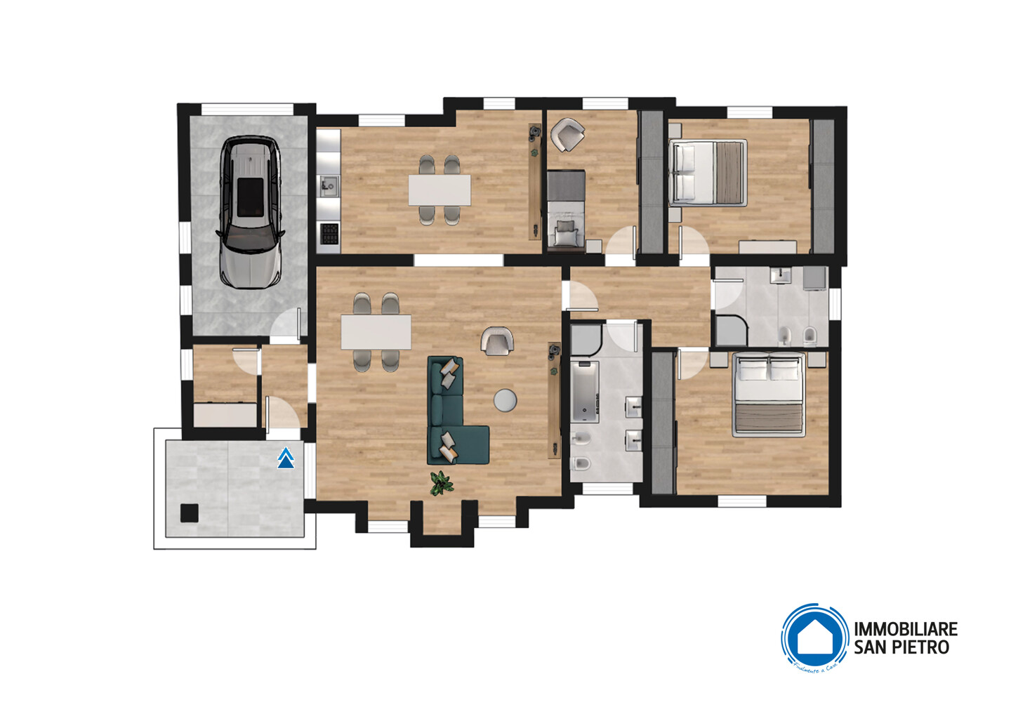 Gli interni, pensati per il massimo comfort e funzionalità, accolgono con un ampio soggiorno luminoso e una moderna cucina abitabile. Un caldo parquet avvolge ogni ambiente, creando un’atmosfera accogliente e di gran pregio. La zona notte offre 3 camere, di cui due spaziose matrimoniali e una singola, perfette per ogni esigenza. Completano la proprietà 2 bagni finemente rifiniti, ripostiglio e un’autorimessa. Un pratico sottotetto offre ulteriore potenziale, personalizzabile a tuo piacimento. Per la tua tranquillità, la villa è dotata di un moderno sistema di allarme.