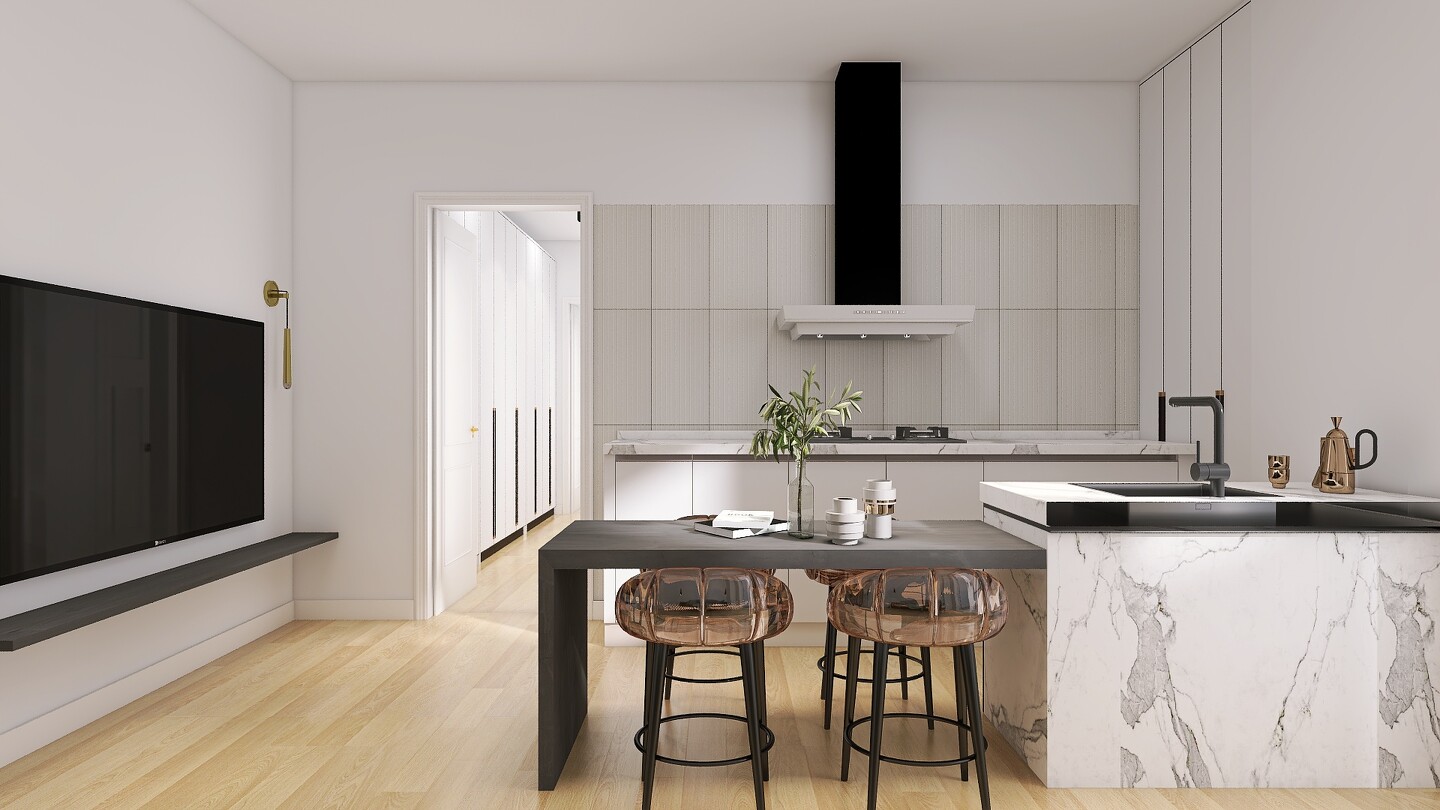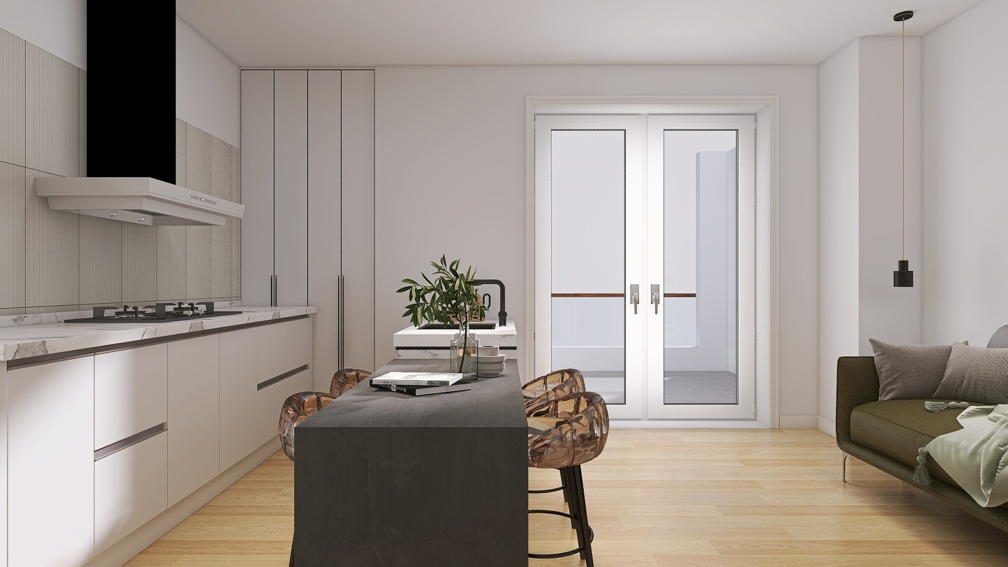 LOTTO 2 Appartamento 6 sito al primo piano composto da soggiorno con cucina a vista ed affaccio su terrazzo, disimpegno zona notte, 1 camera matrimoniale, 1 camera singola ed un bagno.