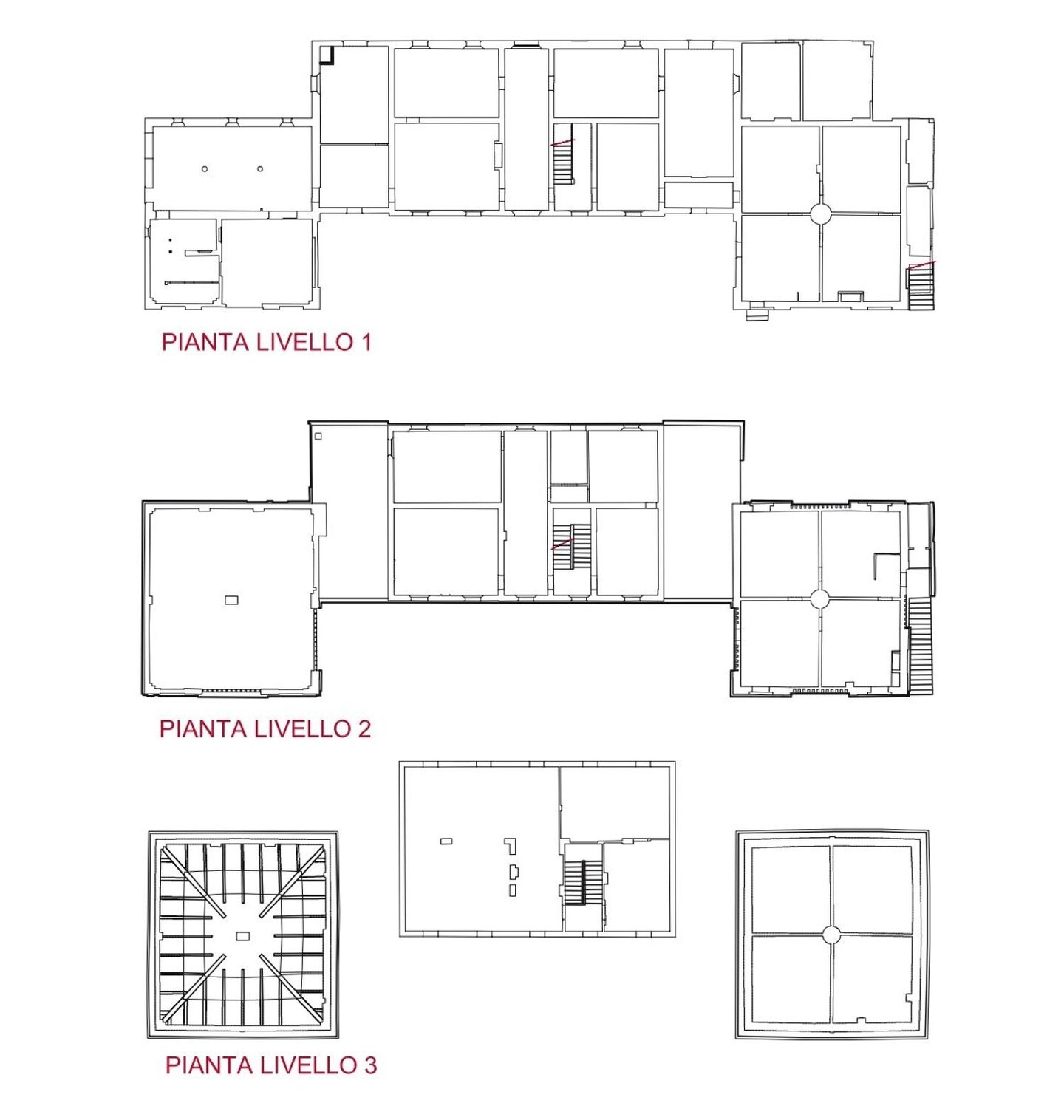 L’immobile si compone di circa 723 mq abitativi suddivisi su 3 livelli e attualmente distribuiti in 3 unità (per un totale di 24,5 vani catastali), che comprendono complessivamente 10 camere, 3 cucine, 3 soggiorni e 3 bagni, oltre a numerosi ambienti accessori che permettono diverse possibilità di ridistribuzione degli spazi.