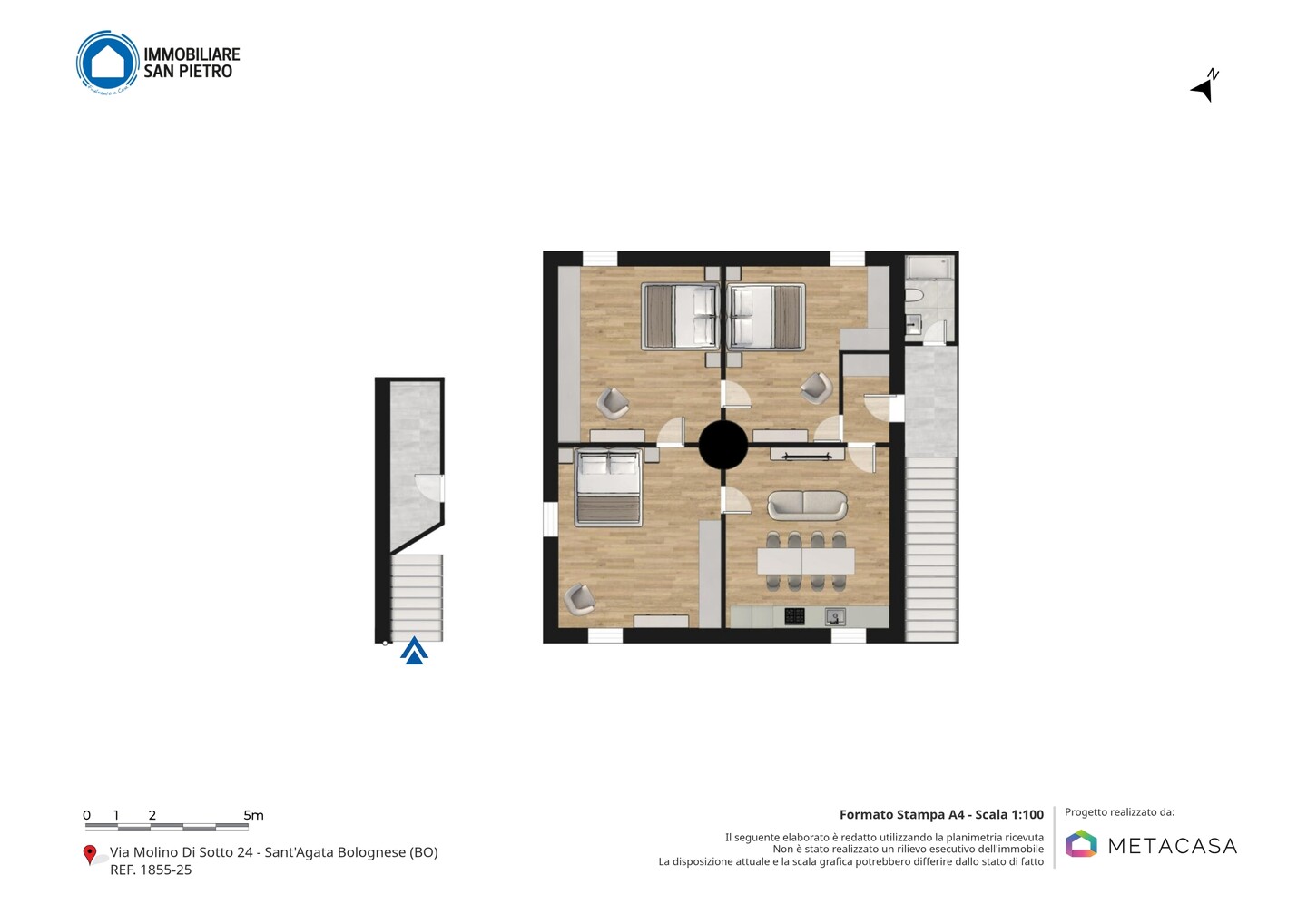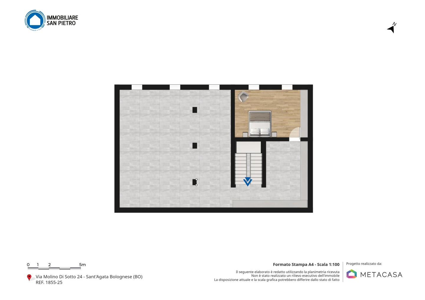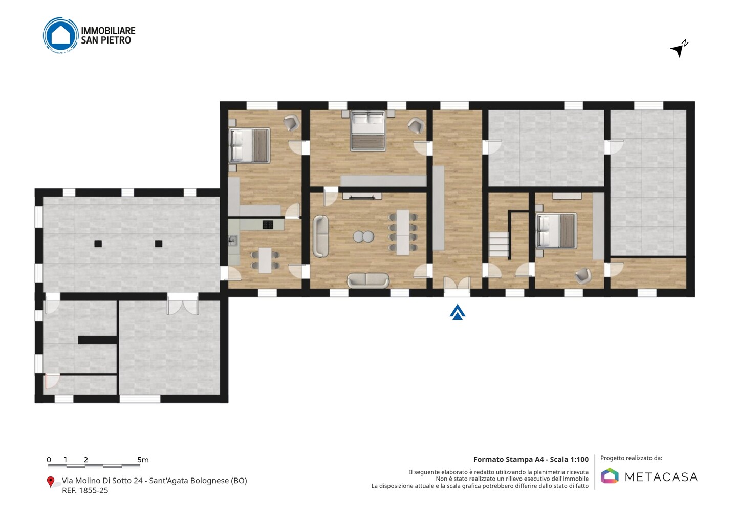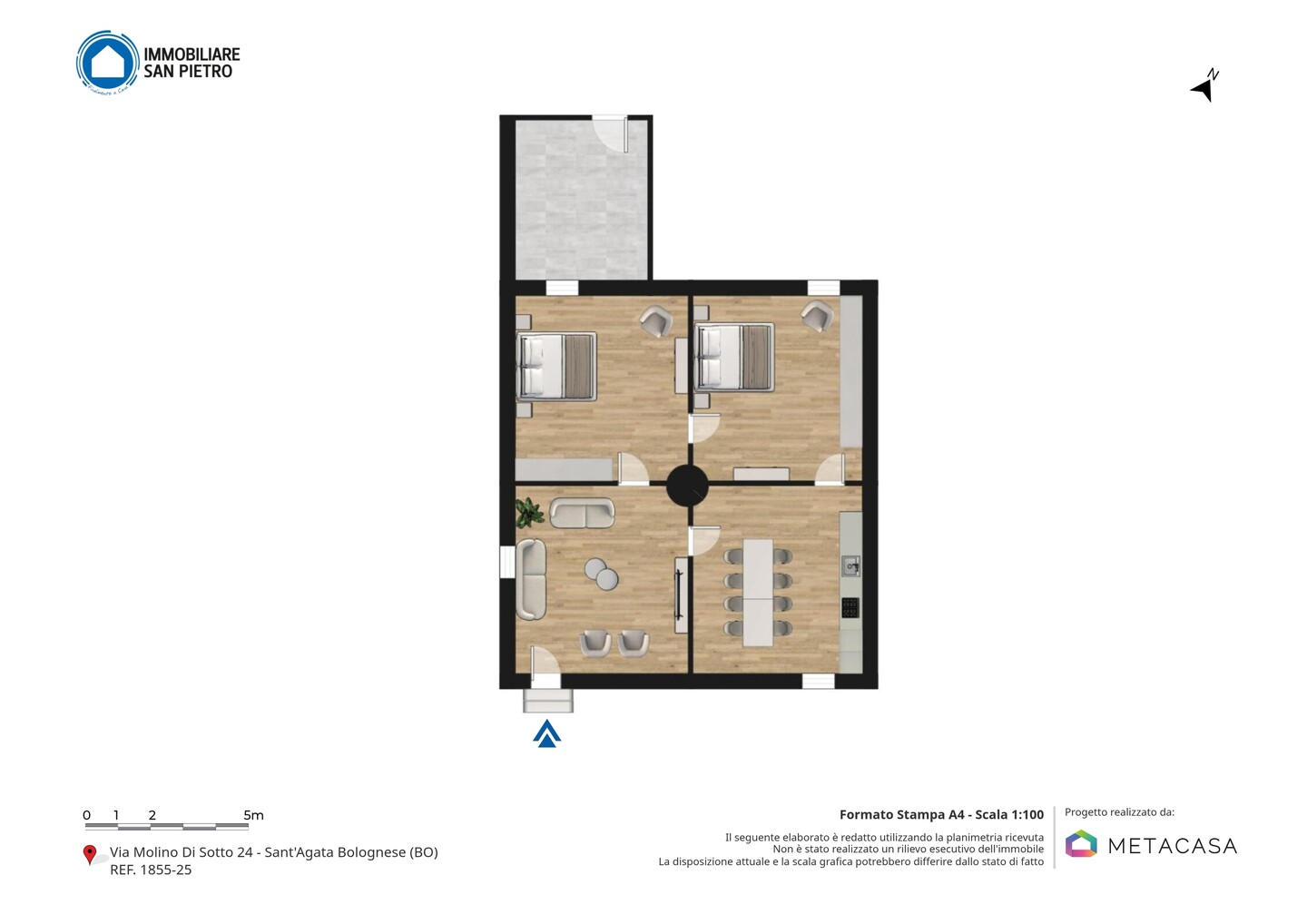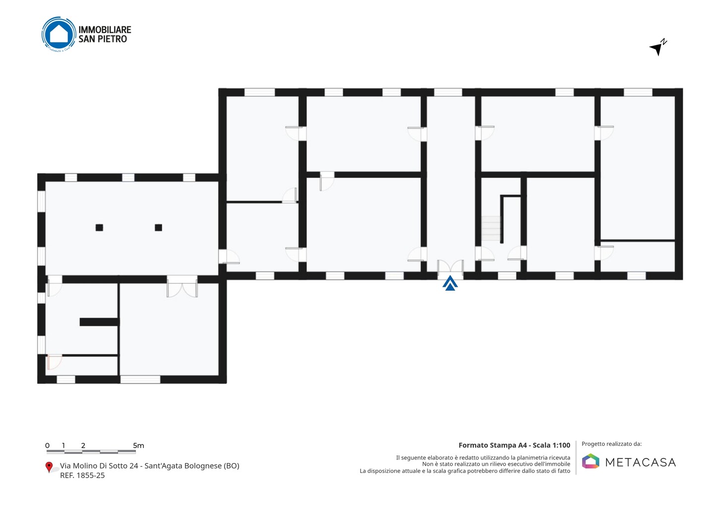 La posizione è strategica: pur trovandosi in un’area rurale suggestiva e silenziosa, la corte è ben collegata al centro di Sant’Agata Bolognese e ai principali servizi.