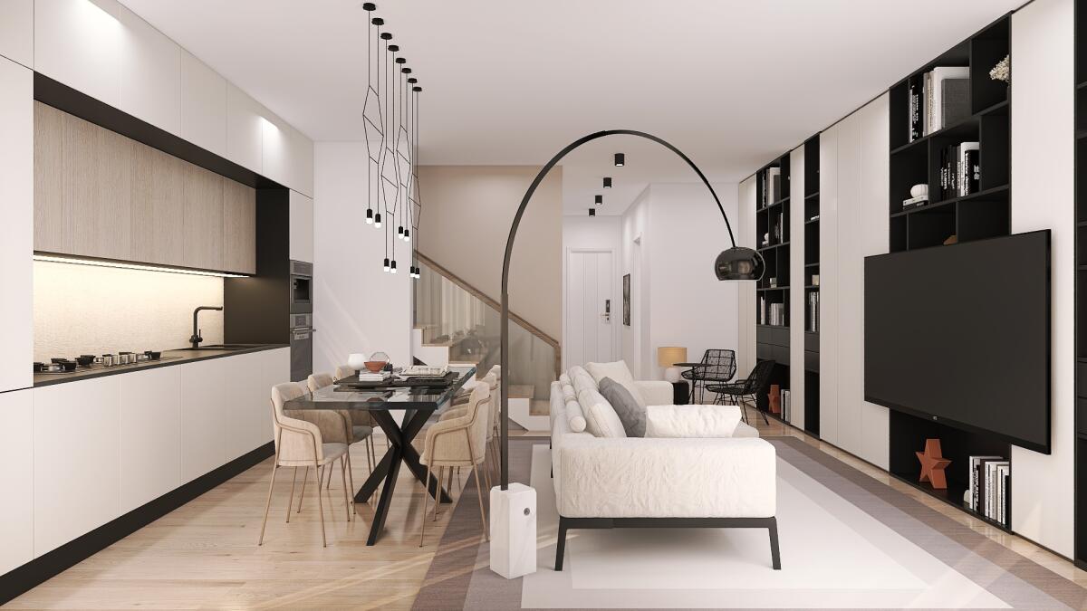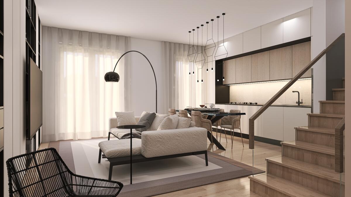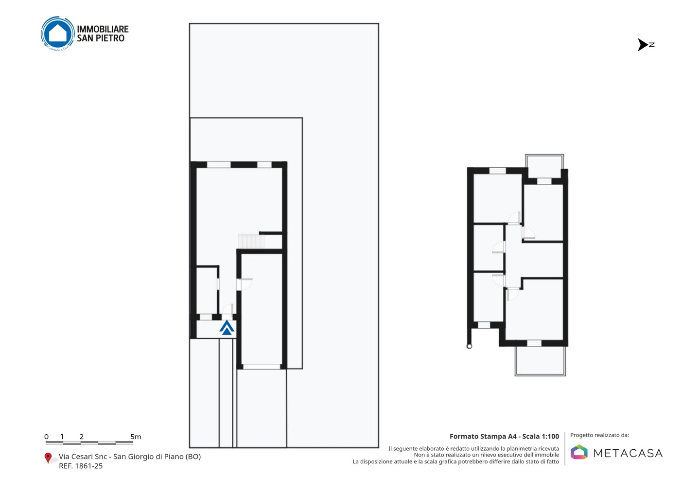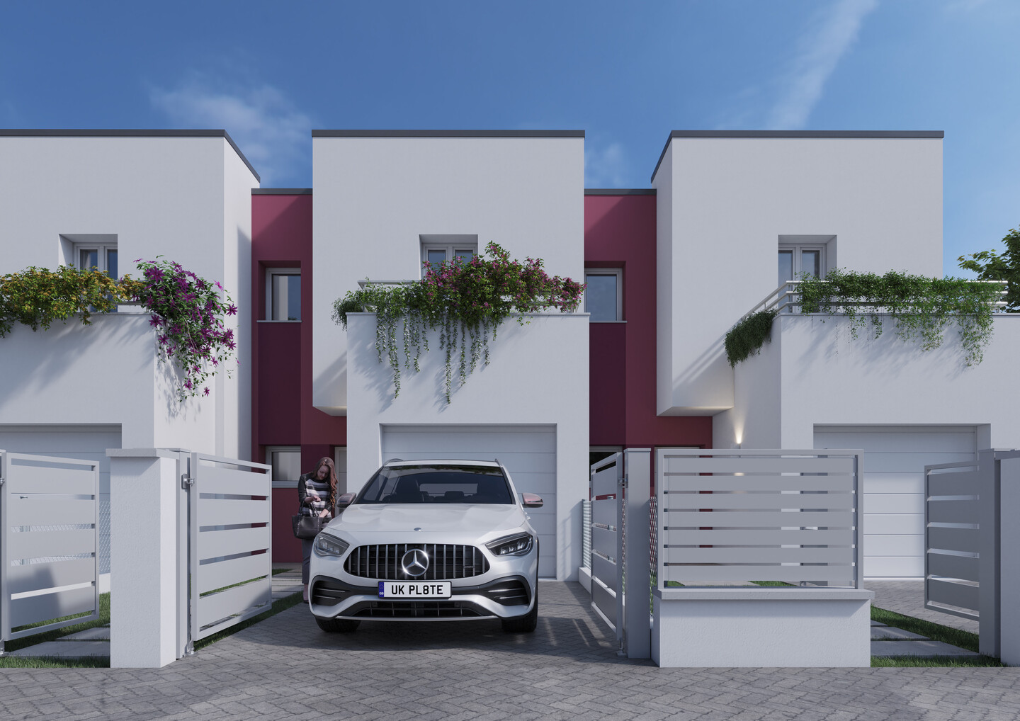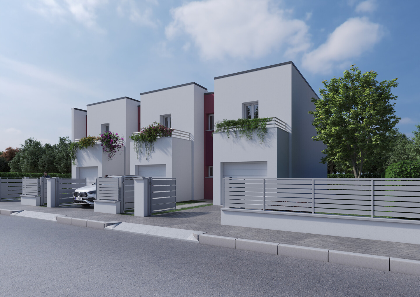 Porzione di trifamiliare disposta su due livelli con giardino privato ed ingresso indipendente. Al piano terra abbiamo ingresso su disimpegno, soggiorno con cucina a vista, lavanderia ed accesso diretto al garage; al piano superiore 3 camere da letto, vano tecnico, bagno e due balconi.