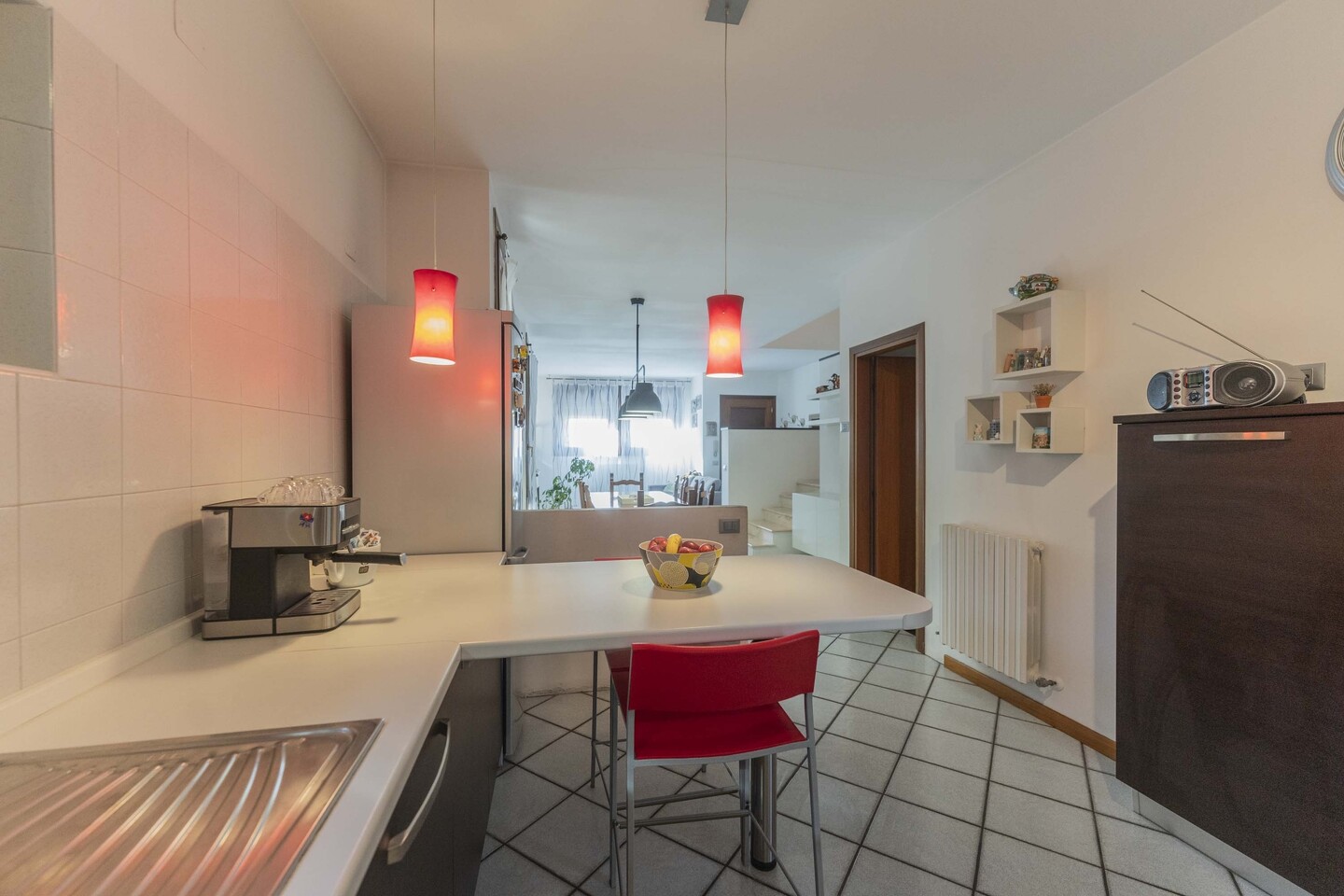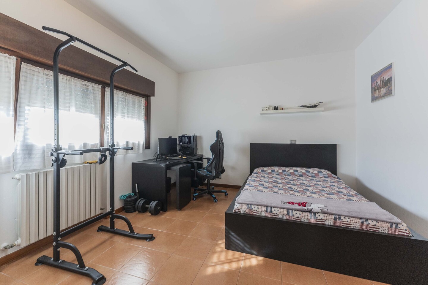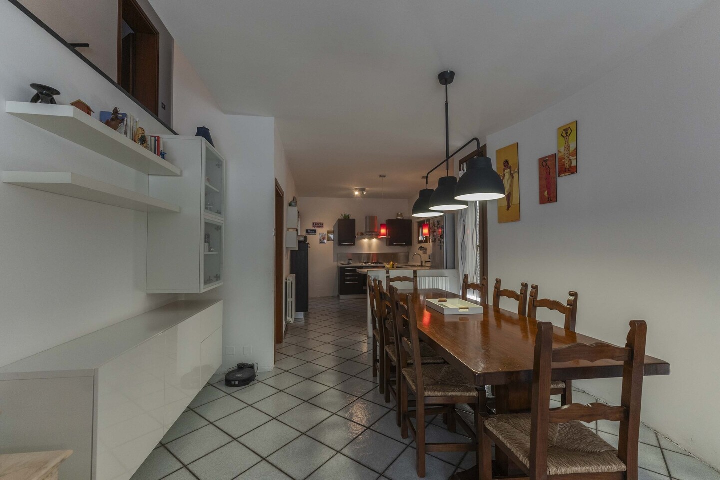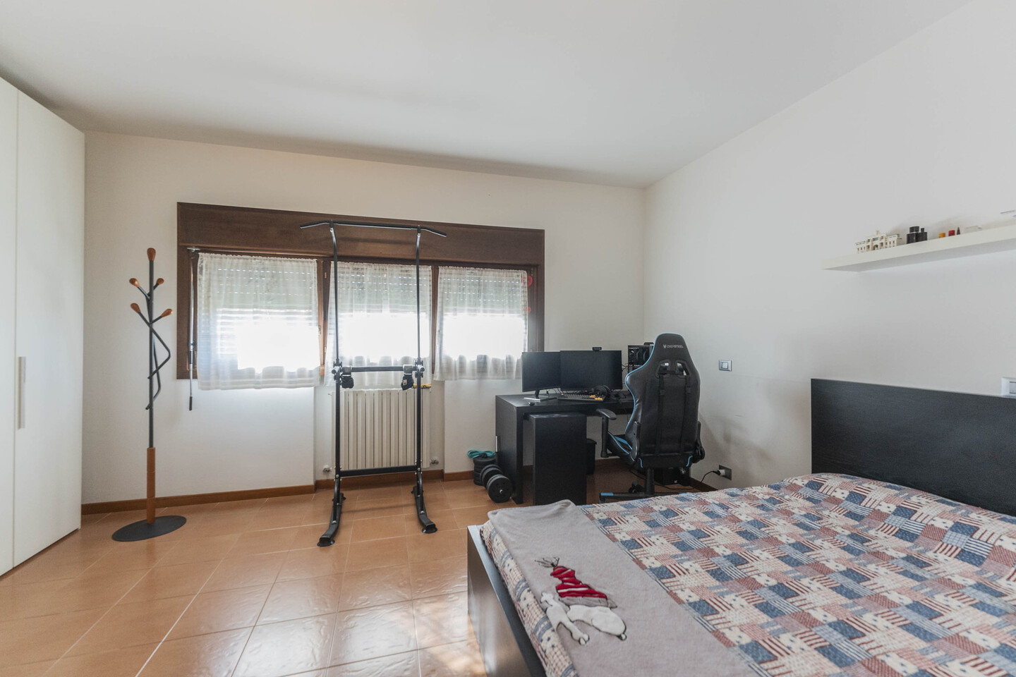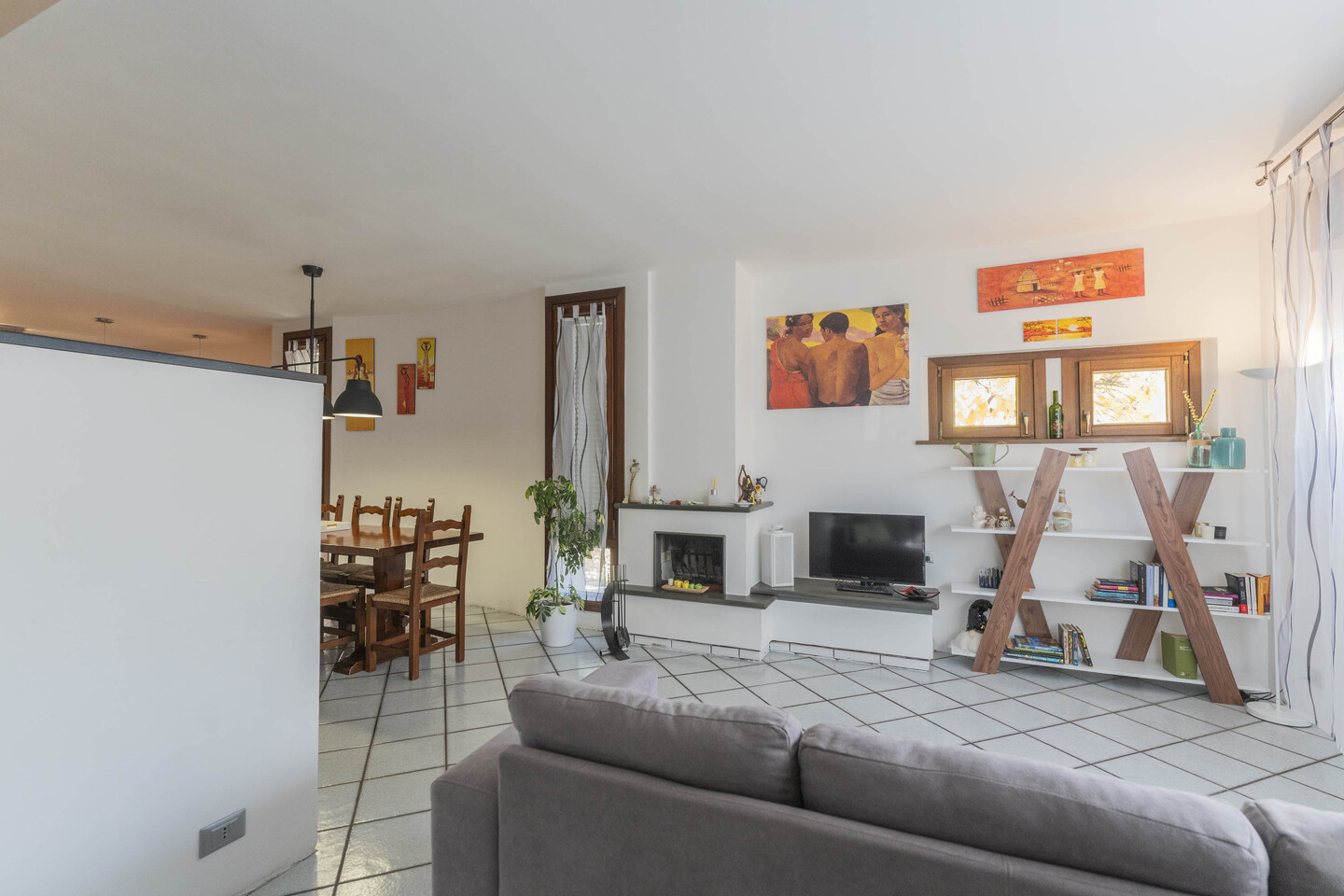 L’immobile è sviluppato su due livelli e così composto: al piano terra troviamo il soggiorno con annessa sala da pranzo, cucina abitabile ed il primo bagno. Una scala conduce al secondo piano dove sono presenti 3 camere da letto (matrimoniale, doppia e singola) divise da un disimpegno dal quale è possibile accedere direttamente al balcone ed il secondo bagno. Completano la proprietà garage, cantina, posto auto scoperto, portico e giardino privato al pian terreno.