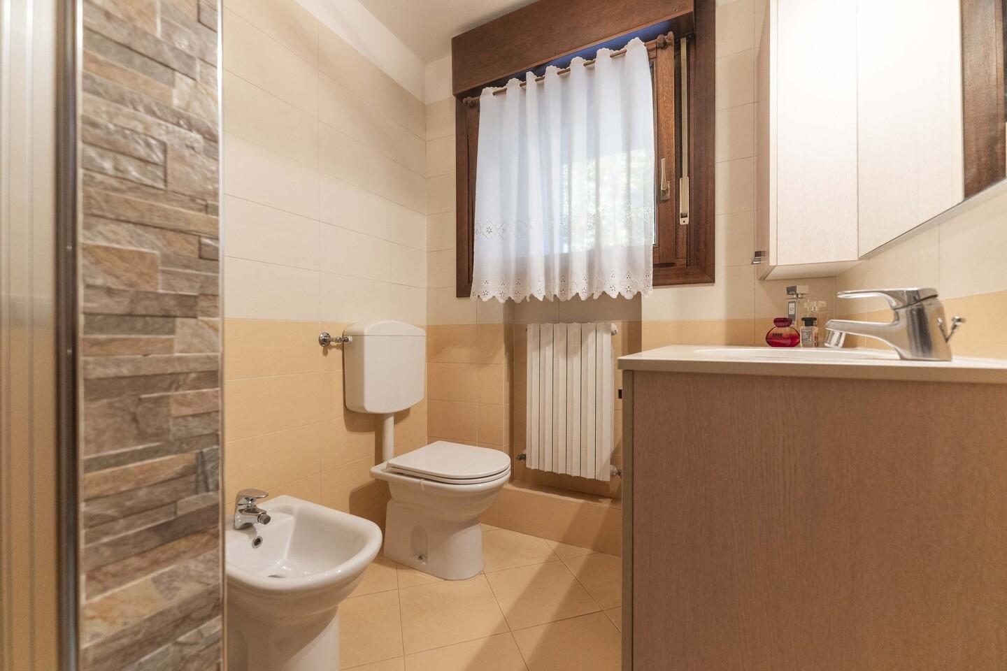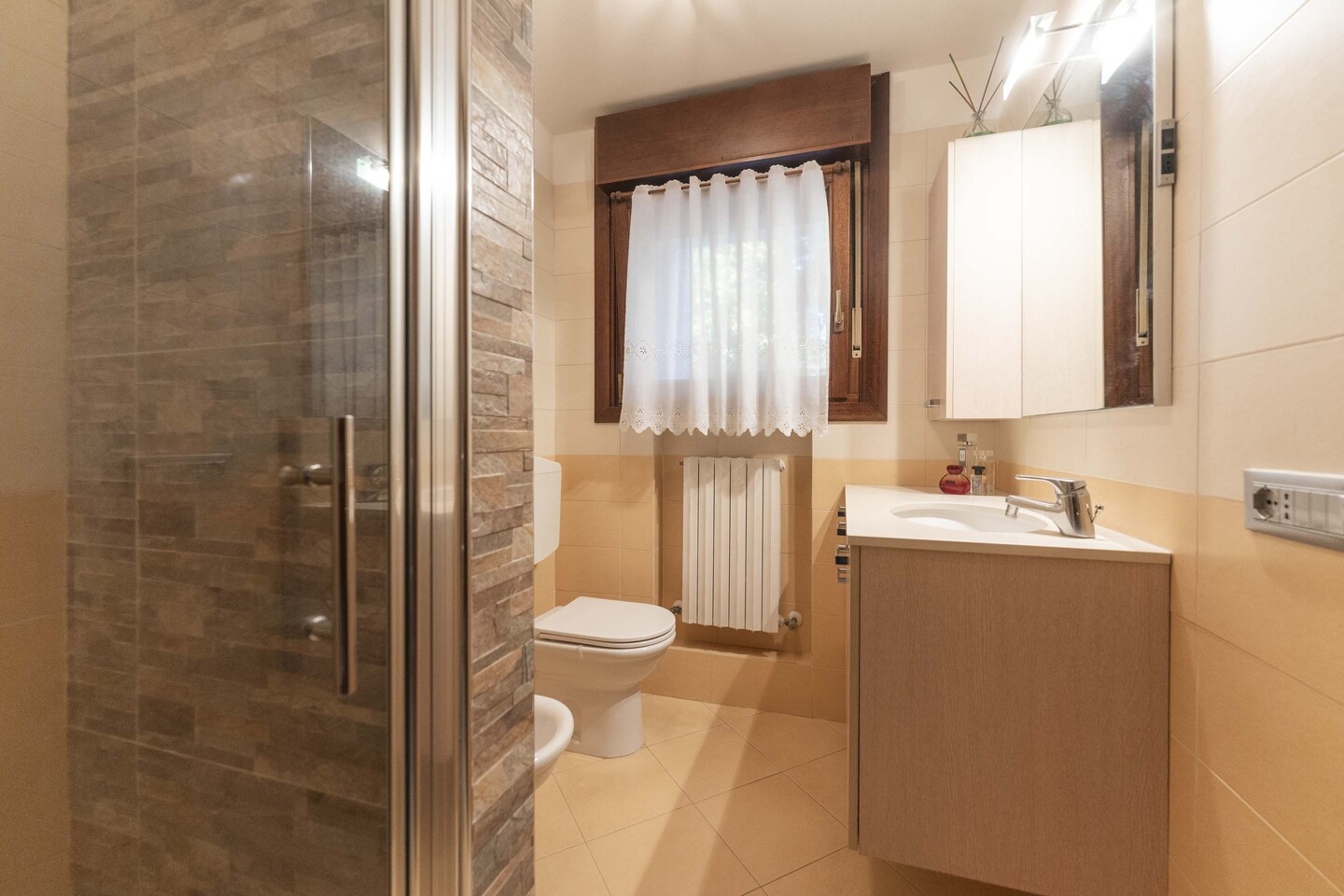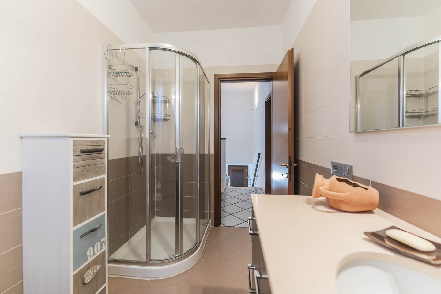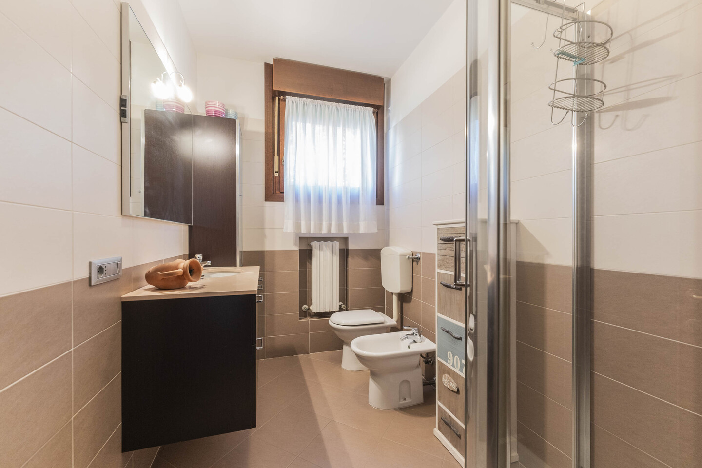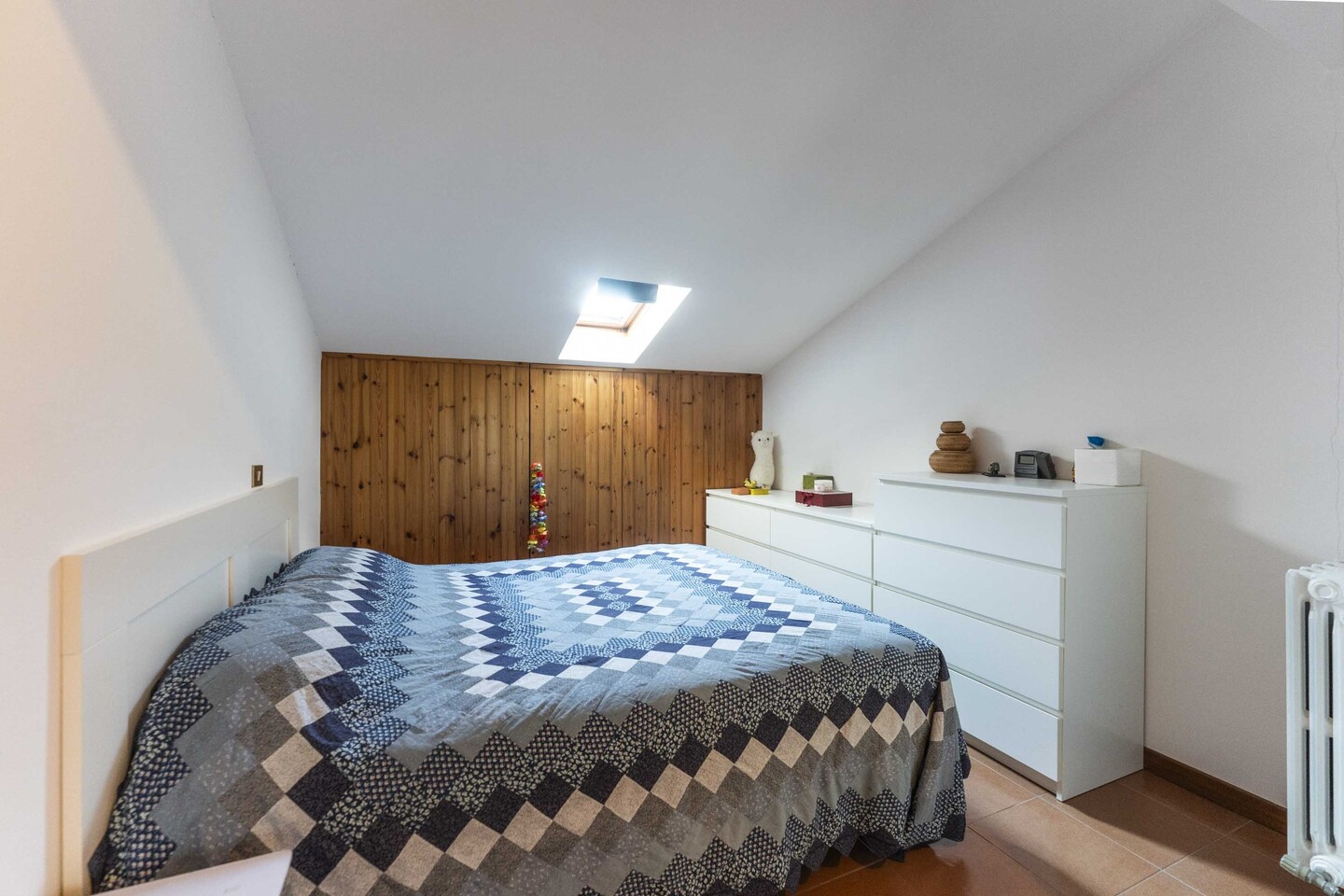 L’immobile è sviluppato su due livelli e così composto: al piano terra troviamo il soggiorno con annessa sala da pranzo, cucina abitabile ed il primo bagno. Una scala conduce al secondo piano dove sono presenti 3 camere da letto (matrimoniale, doppia e singola) divise da un disimpegno dal quale è possibile accedere direttamente al balcone ed il secondo bagno. Completano la proprietà garage, cantina, posto auto scoperto, portico e giardino privato al pian terreno.