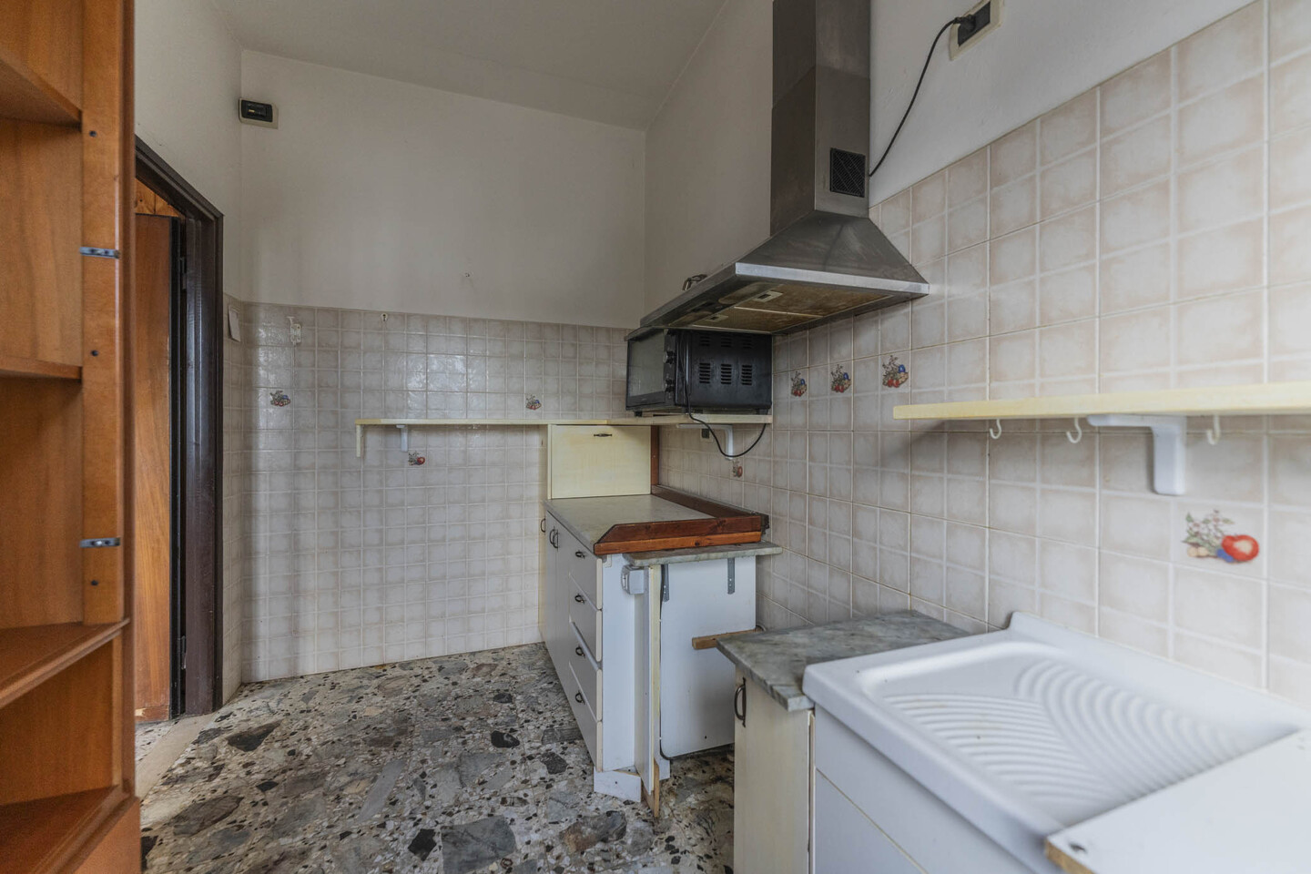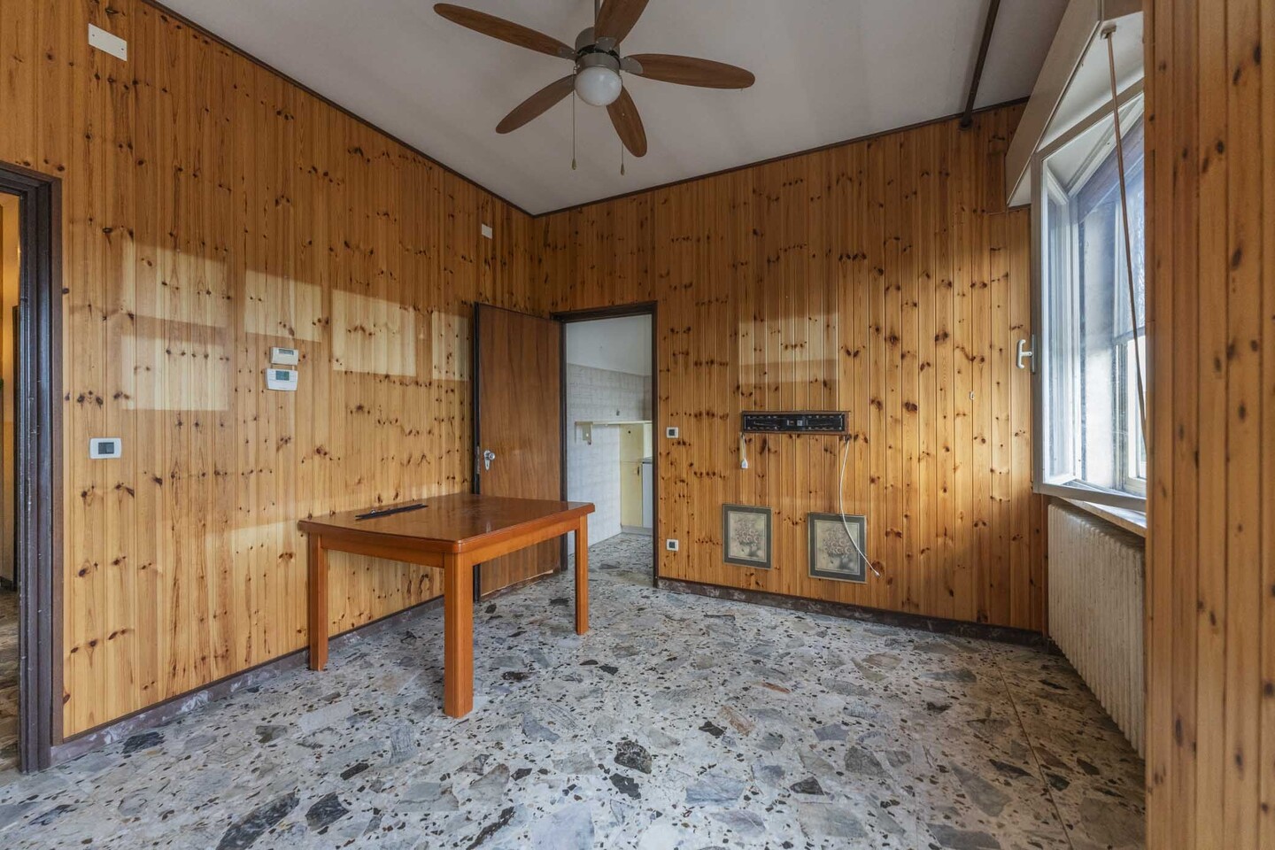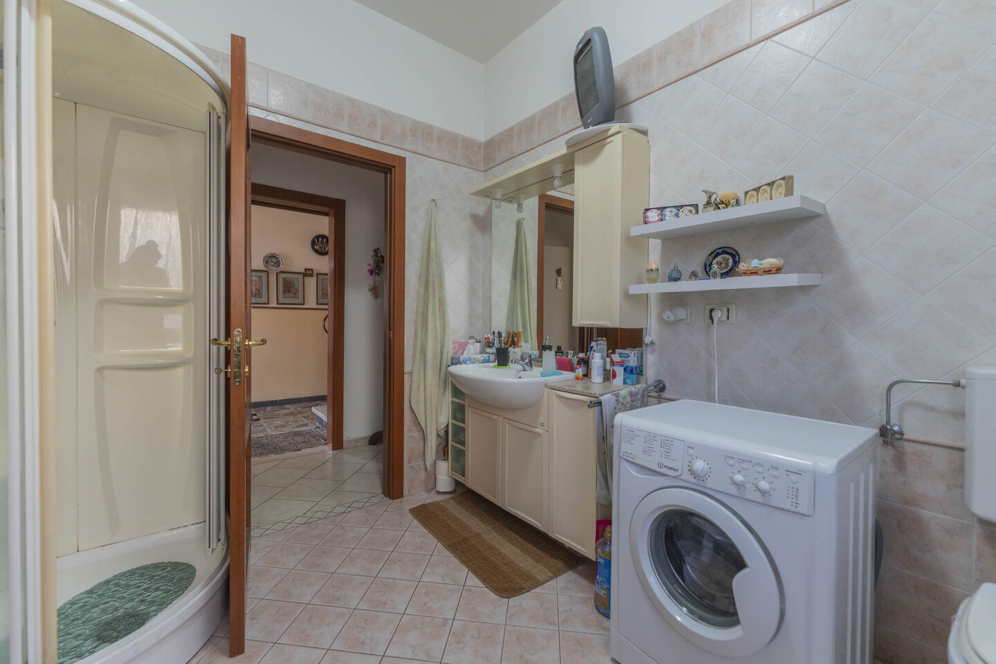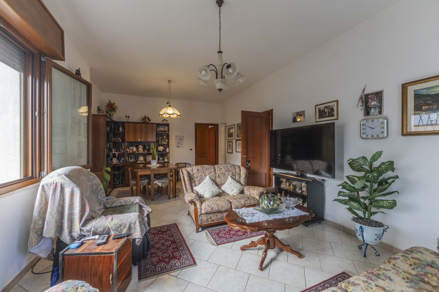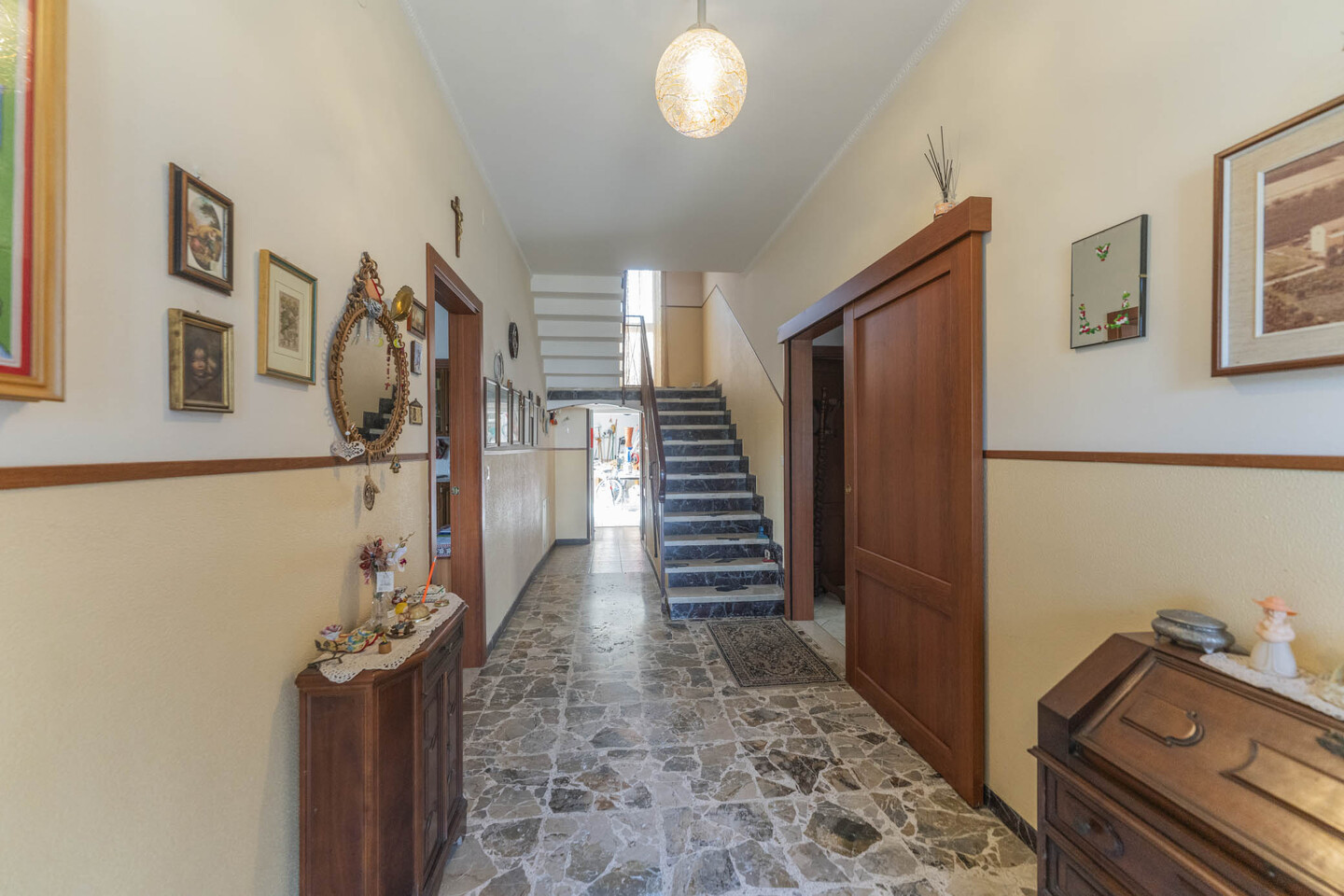 L’immobile sviluppato su due livelli, caratterizzato da ingresso indipendente e così composto: al piano terra ingresso, soggiorno/pranzo, cucinotto, una camera matrimoniale, una camera ripostiglio e un bagno. Una scala conduce al primo piano dove troviamo altre 4 camere matrimoniali, da una delle quali è possibile accedere direttamente al balcone e al terrazzo di 60 mq, ed il secondo bagno. Completano la proprietà garage doppio, cantina e giardino privato. L’abitazione si presenta