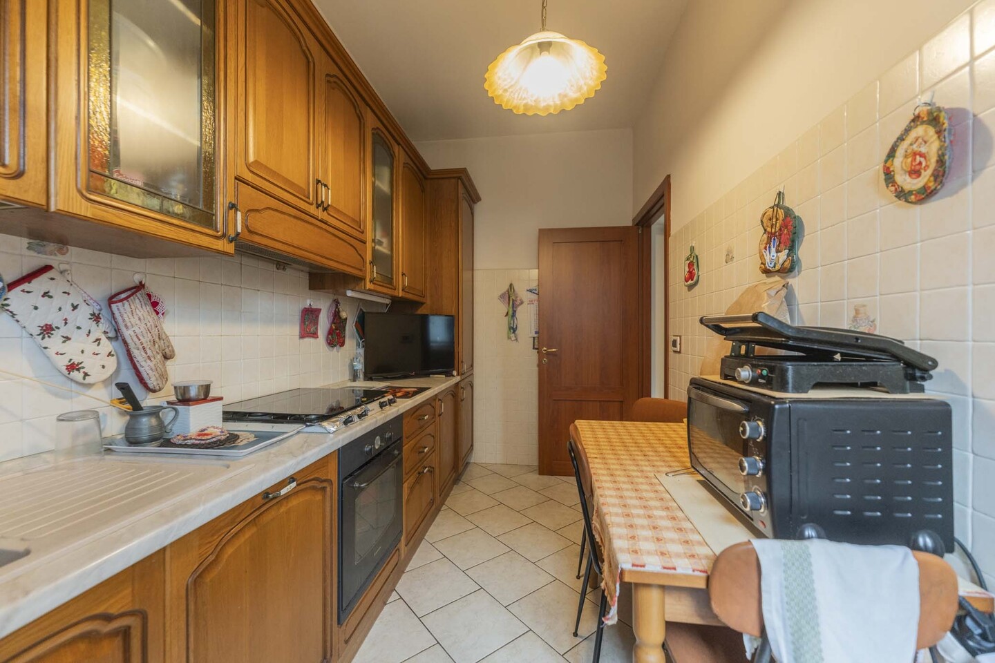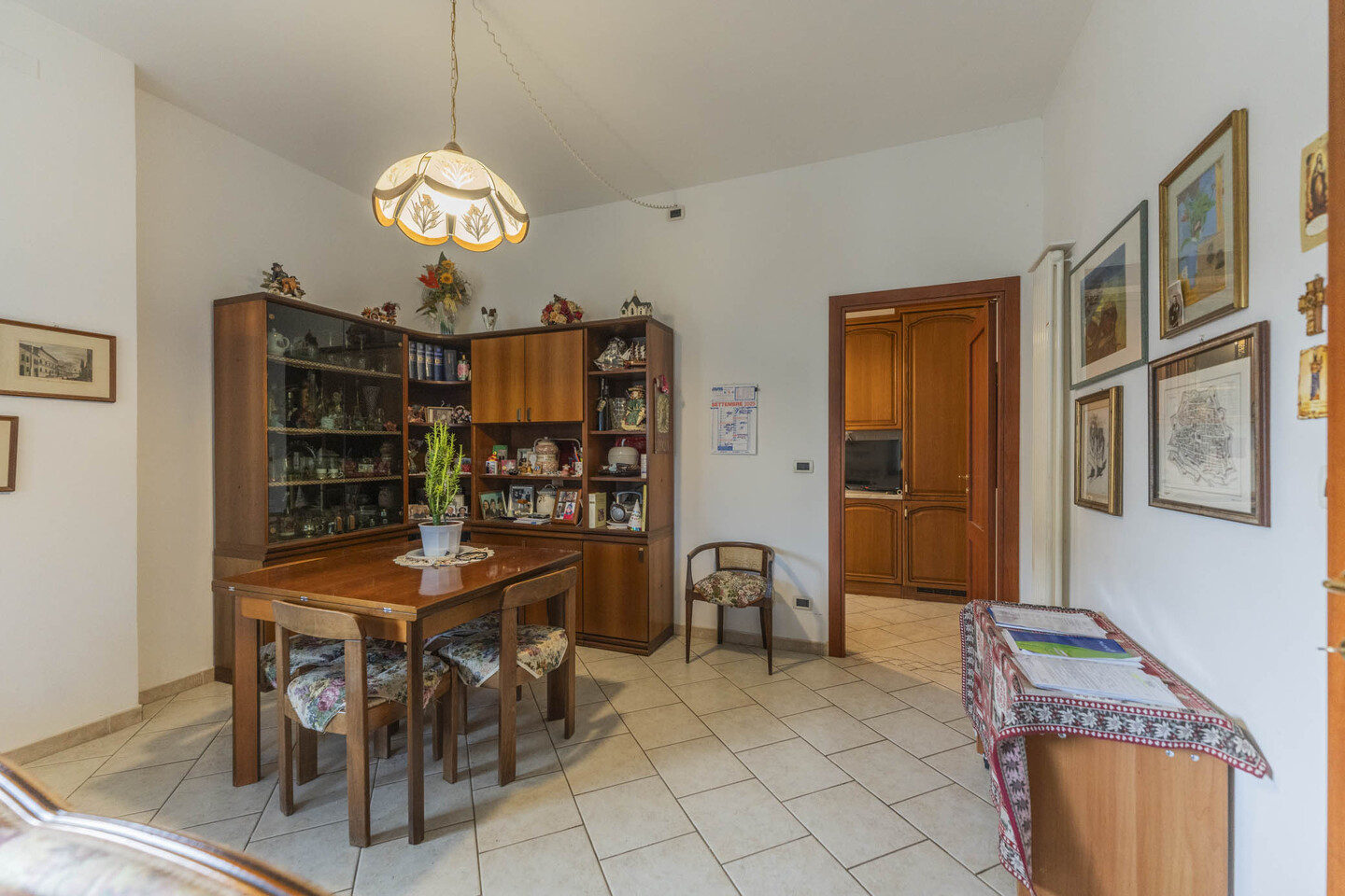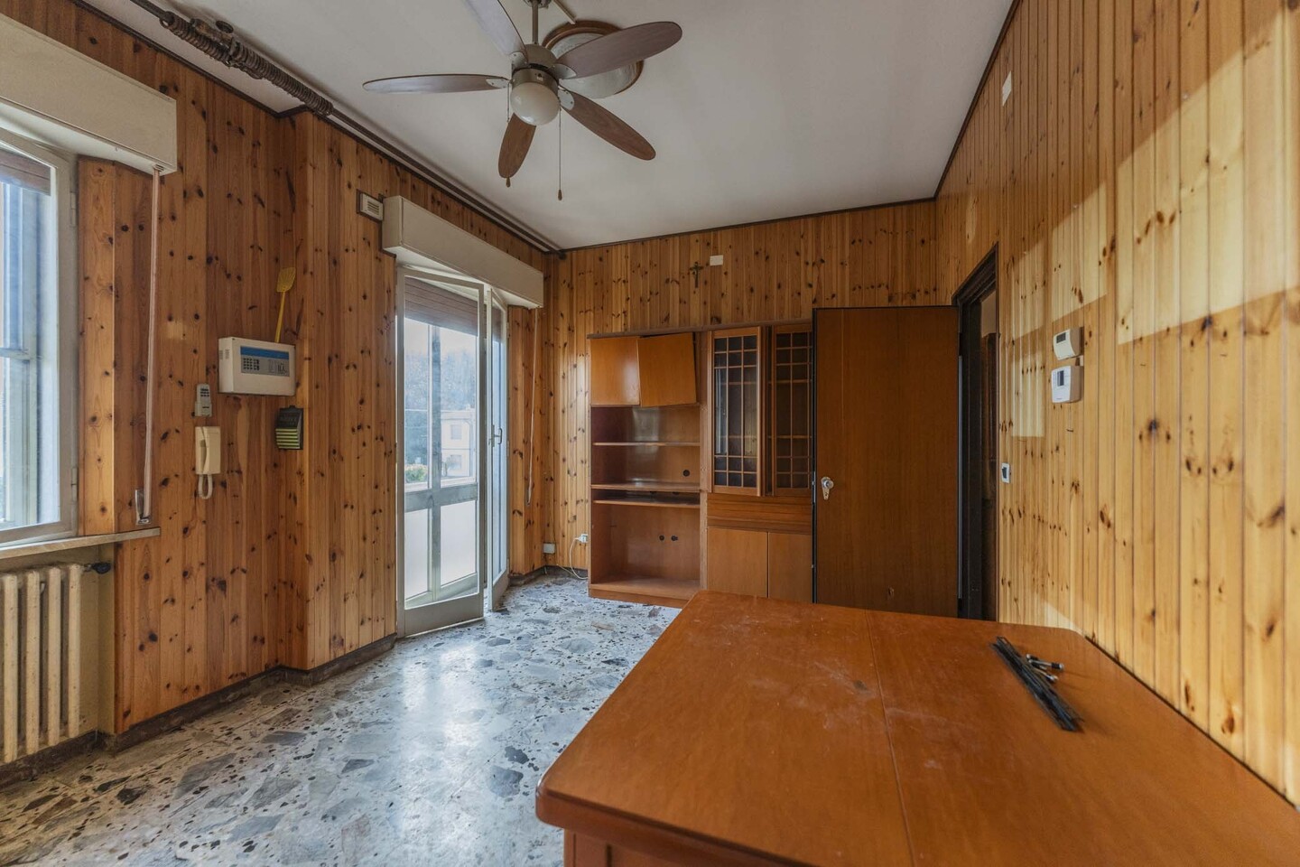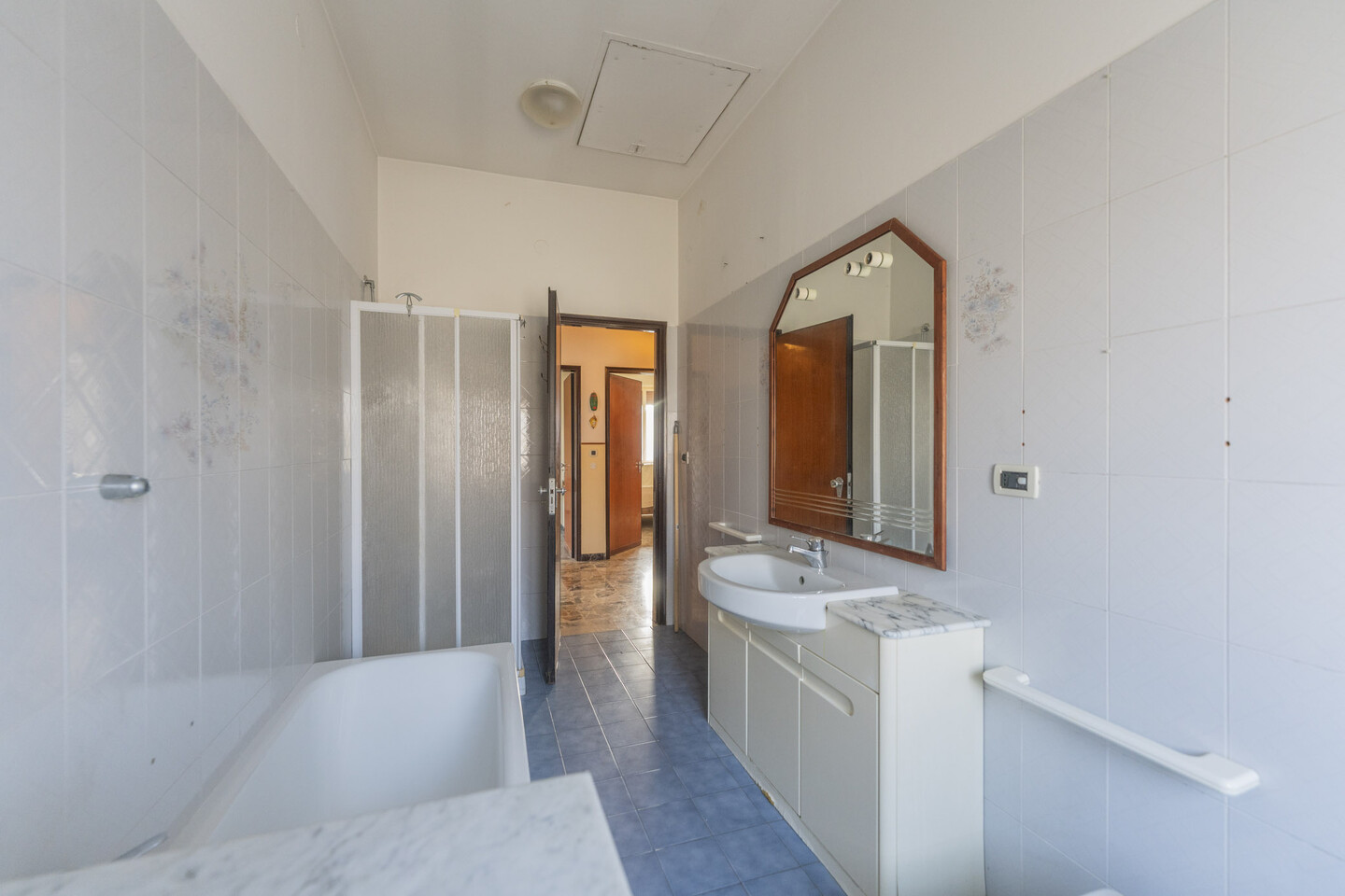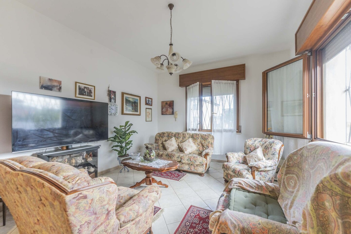 L’immobile sviluppato su due livelli, caratterizzato da ingresso indipendente e così composto: al piano terra ingresso, soggiorno/pranzo, cucinotto, una camera matrimoniale, una camera ripostiglio e un bagno. Una scala conduce al primo piano dove troviamo altre 4 camere matrimoniali, da una delle quali è possibile accedere direttamente al balcone e al terrazzo di 60 mq, ed il secondo bagno. Completano la proprietà garage doppio, cantina e giardino privato. L’abitazione si presenta