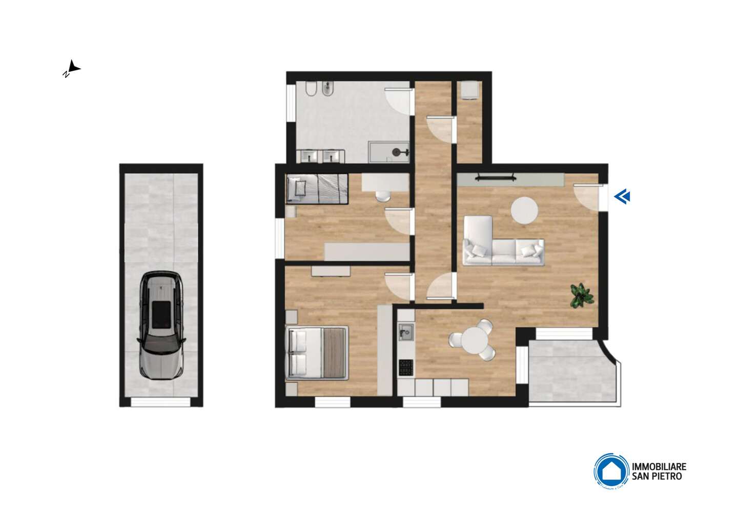 L’appartamento si presenta in ottime condizioni e offre spazi ben distribuiti. L’ingresso si apre su un accogliente soggiorno, con la cucina abitabile è separata, garantendo praticità e funzionalità; da entrambi gli ambienti si accede direttamente al balcone, che dona ariosità e luce naturale. La zona notte, a cui si accede tramite disimpegno, comprende una camera matrimoniale, una camera singola spaziosa, un ampio bagno finestrato completo di doccia e vasca, e un pratico ripostiglio. Tra le dotazioni troviamo riscaldamento autonomo, impianto di aria condizionata, porta blindata e infissi in doppio vetro.