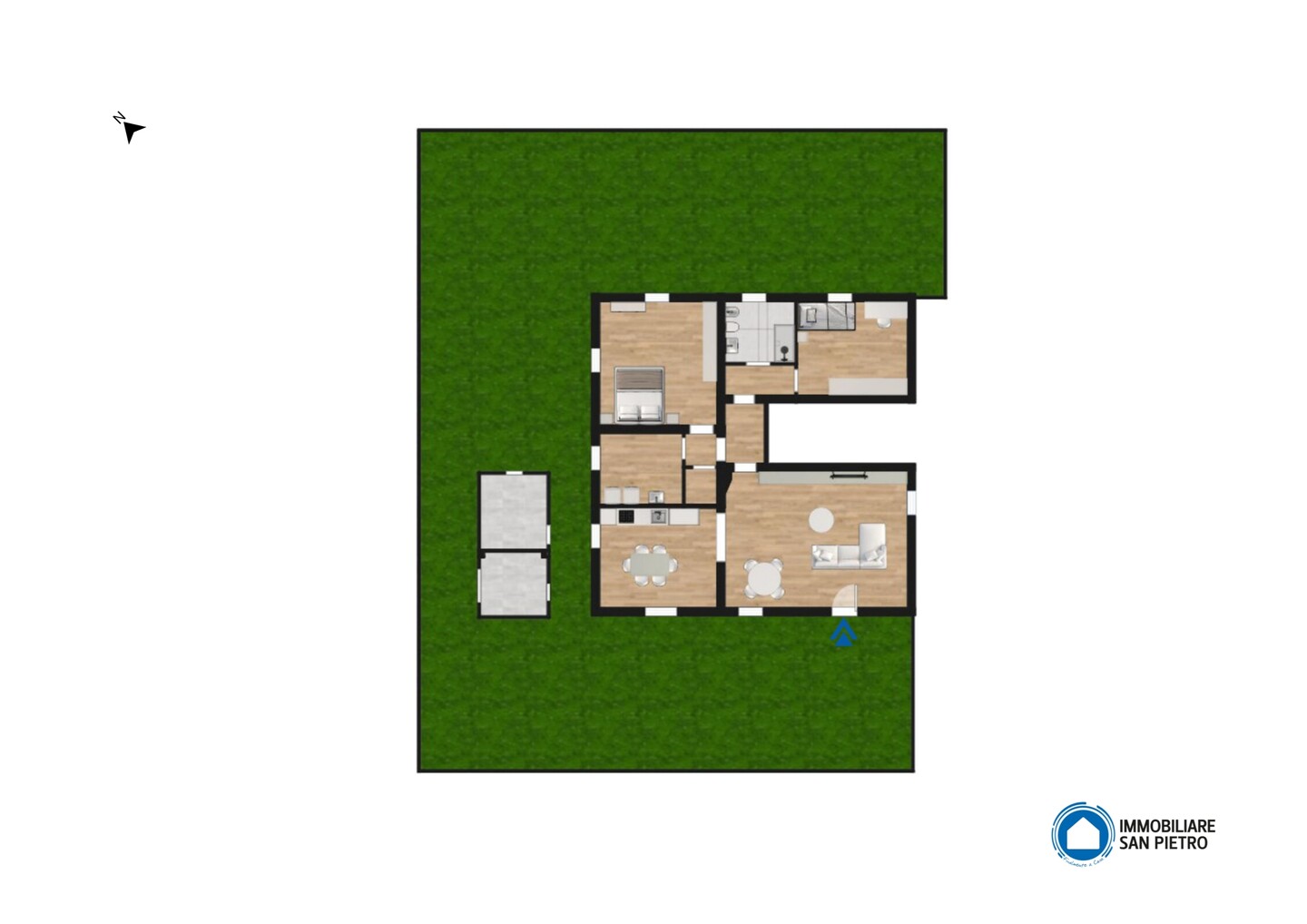 L’abitazione, di circa 130 mq, è circondata da un giardino esclusivo di circa 600 mq, con possibilità di parcheggiare comodamente all’interno della proprietà. Completa la soluzione una cantina all’interno di un fabbricato accessorio esterno. Gli ambienti interni sono ampi e ben distribuiti: l’ingresso conduce alla cucina abitabile di 14mq, separata dal soggiorno di quasi 30 mq, luminoso e accogliente, ideale per la vita quotidiana e per ricevere ospiti. La zona notte ospita una camera matrimoniale, una camera doppia e un bagno, oltre a ripostiglio e lavanderia, elementi che rendono la casa particolarmente funzionale e adatta anche a nuclei familiari. L’immobile è stato ristrutturato internamente nel 2010, mentre nel 2022 l’edificio ha beneficiato della completa riqualificazione esterna tramite Superbonus. Dotato di riscaldamento autonomo a gas/metano, aria condizionata, infissi in doppio vetro, oscuranti in alluminio e inferriate, offre comfort, sicurezza ed efficienza.