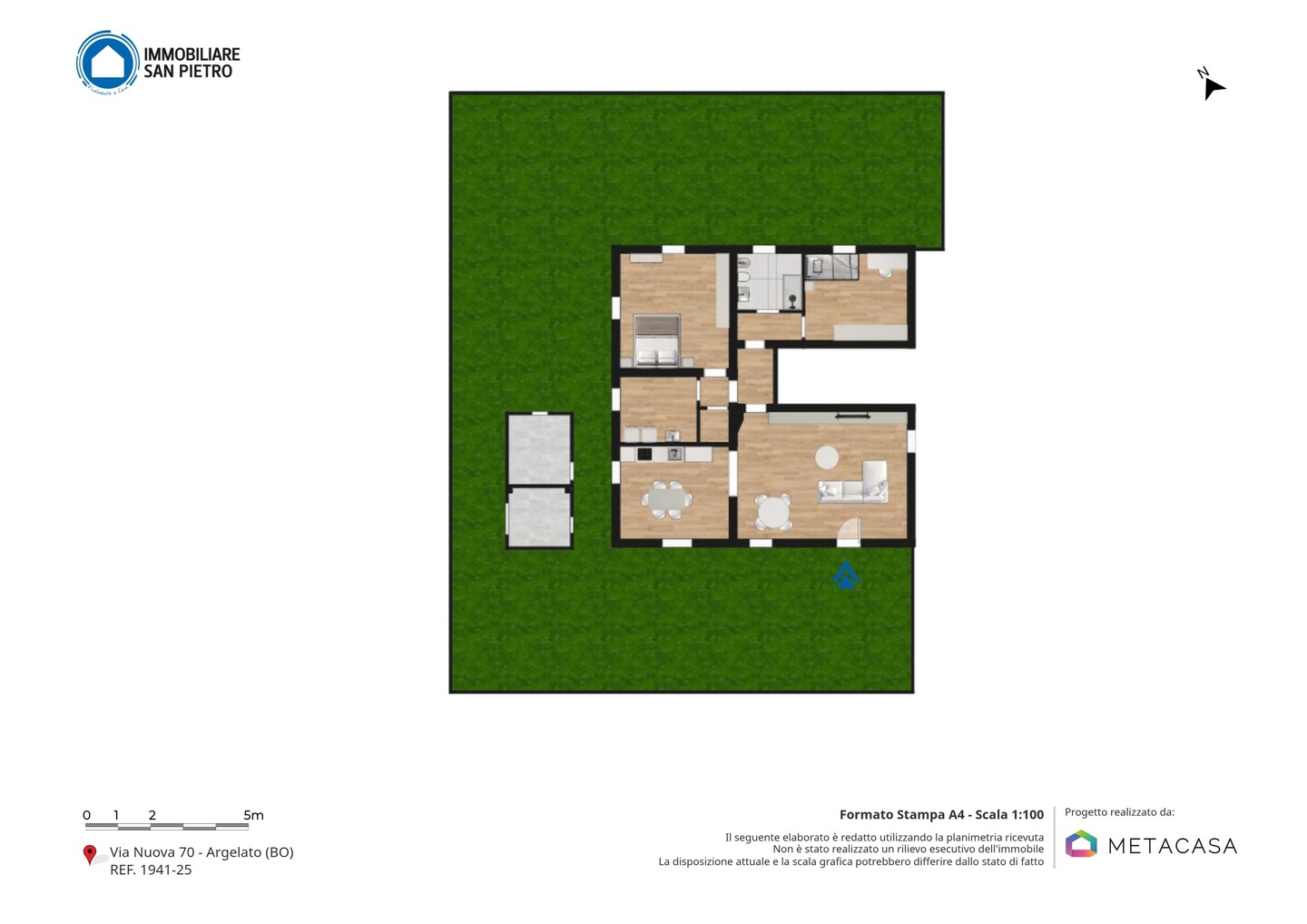 L’immobile si trova in Via Nuova 70 ad Argelato (BO), adiacenze Trasversale di Pianura, in un contesto ben collegato ai principali snodi: Distanze indicative in auto: Circa 20 km dal centro di Bologna, raggiungibile in ~20-25 minuti Autostrade e tangenziali facilmente raggiungibili Aeroporto G. Marconi di Bologna a circa 18-20 km (~18 min in auto) Servizi pubblici nelle vicinanze: Stazione ferroviaria Funo-Centergross raggiungibile in pochi minuti, con treni regionali verso Bologna e Ferrara