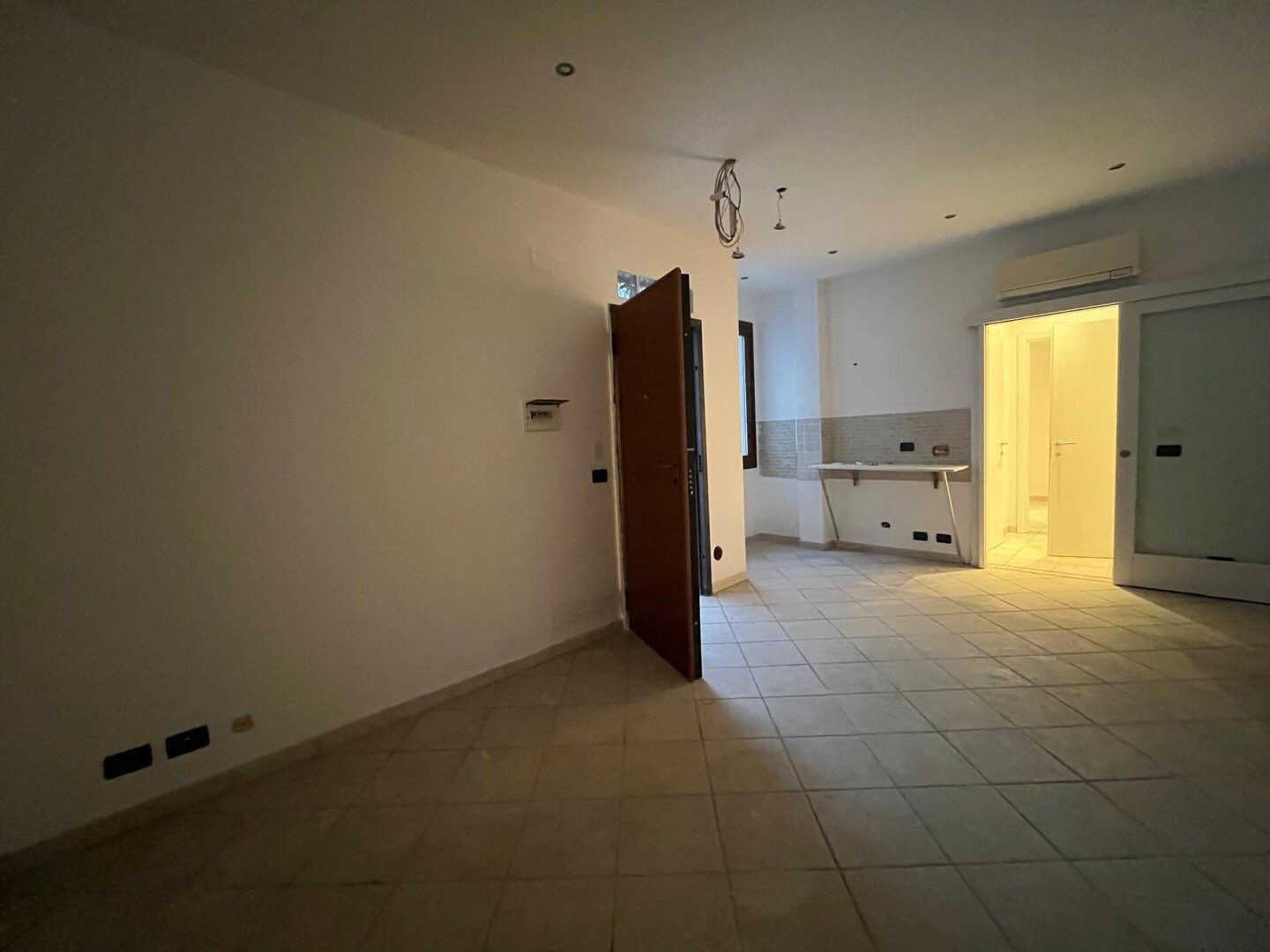 Ingresso su soggiorno con angolo cottura, disimpegno con ripostiglio, 1 camera da letto e bagno.