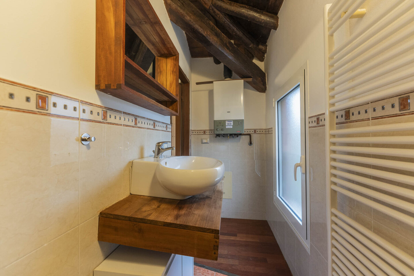 L’immobile è sviluppato su due livelli e così composto: al piano terra ingresso su soggiorno con angolo cottura, al primo piano troviamo un secondo ambiente con bagno. Completa la proprietà una cantina.