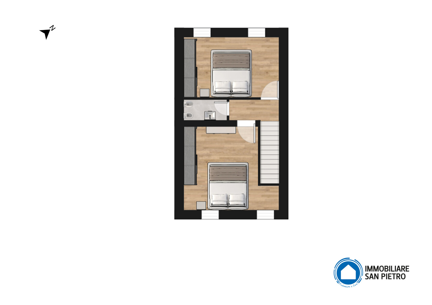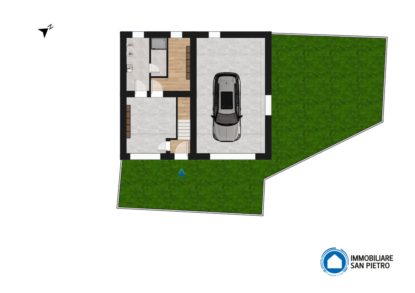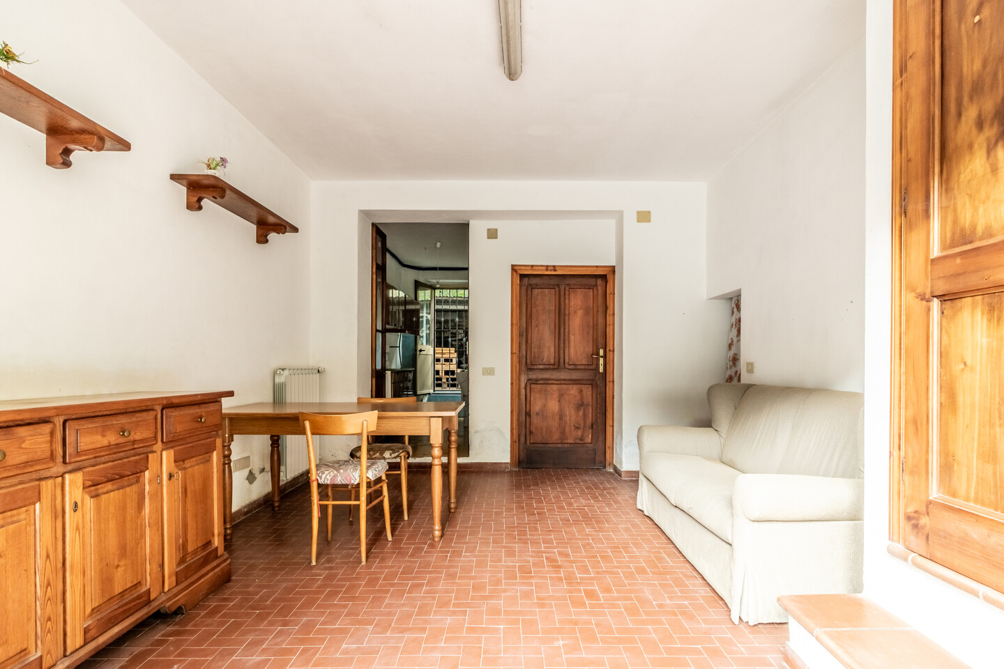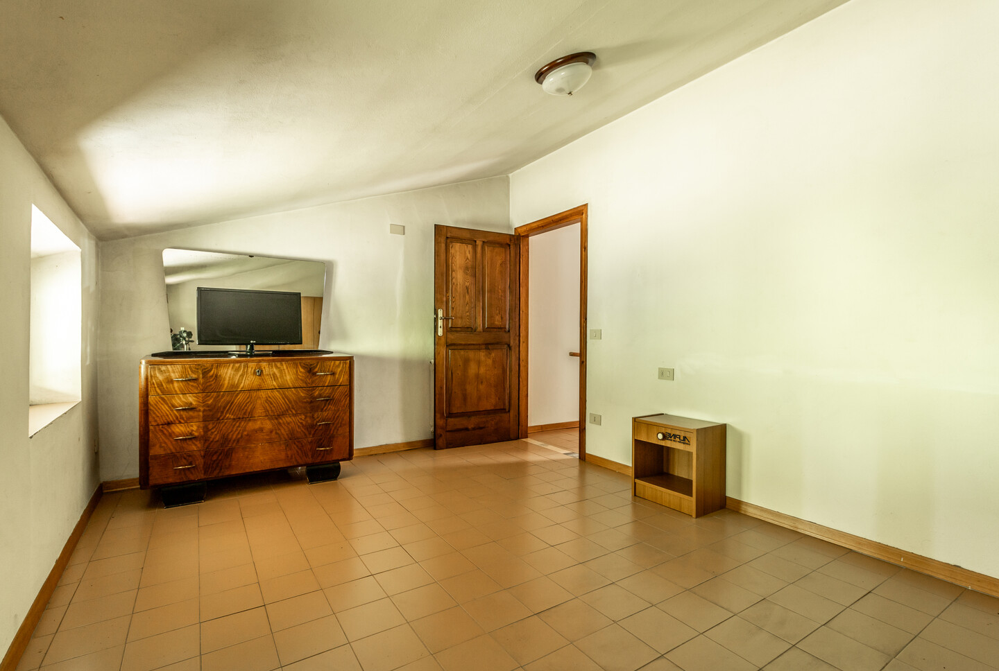 Porzione indipendente di testa sviluppata su tre livelli. Al piano terra, l’immobile presenta un luminoso ambiente, un ripostiglio e un bagno. Al primo piano, si trovano un soggiorno (attualmente usata come camera) e una cucina abitabile; da questo livello inoltre si accede ad un’ampia e luminosa terrazza, ideale per pasti all’aperto e momenti di relax con vista sul vasto giardino. Sempre su questo piano si trova il secondo bagno. Percorrendo le scale si accede al livello mansardato, con due ulteriori ambienti e un bagno. A completare la proprietà, un garage al piano terra, che offre ulteriore praticità.