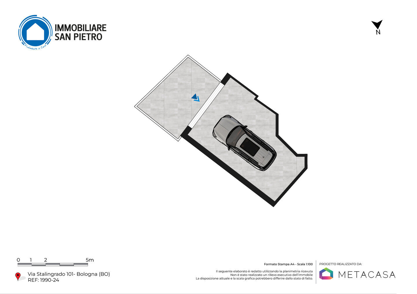 Si trova sotto un condominio con accesso da un cancello da via stalingrado, ha una corte esclusiva davanti al garage.