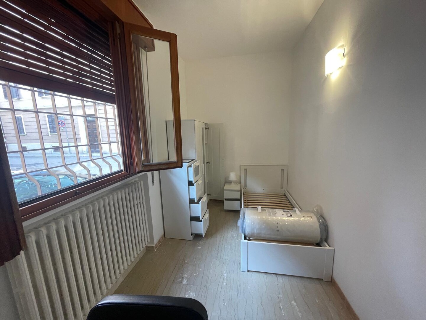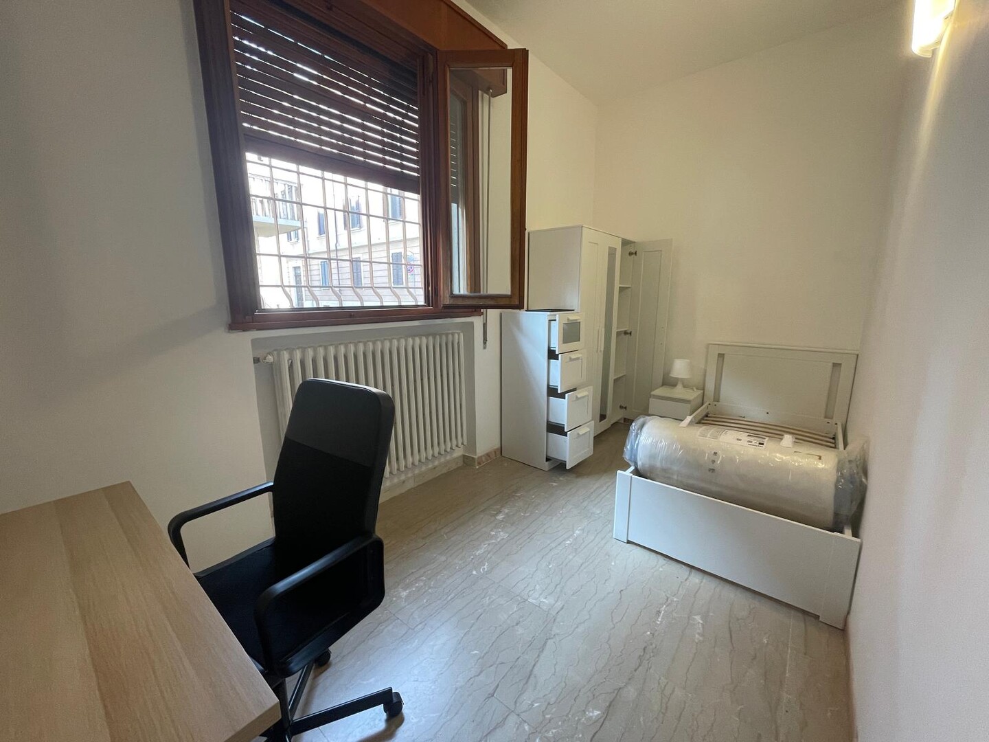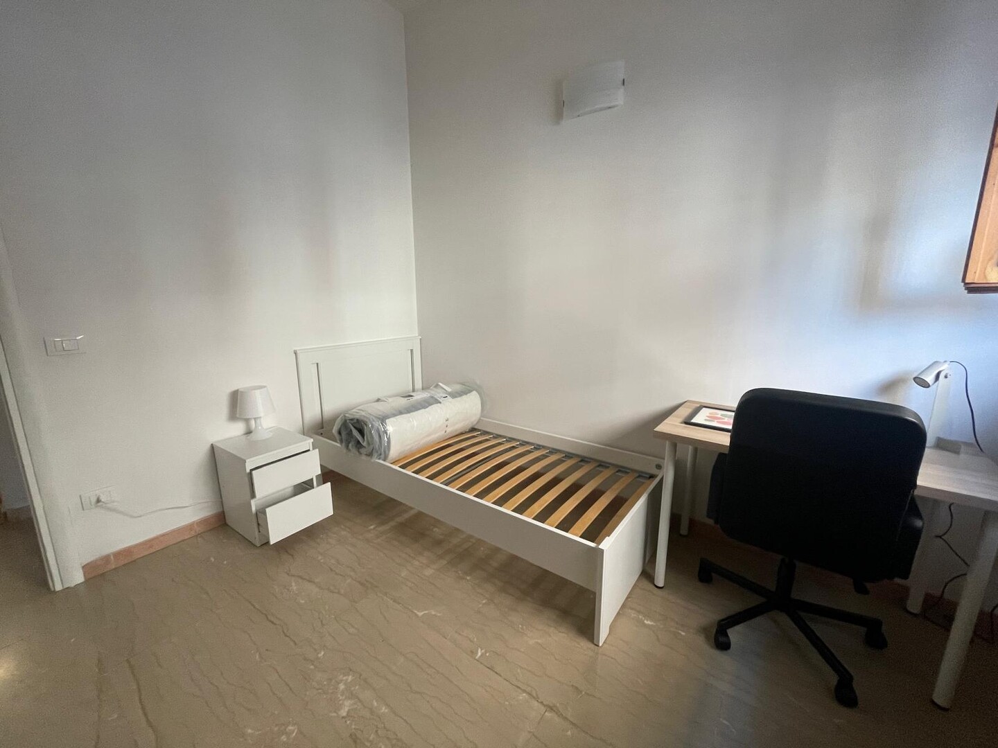 Camera singola completamente arredata in appartamento di 100mq. Ampia cucina comune e bagno.