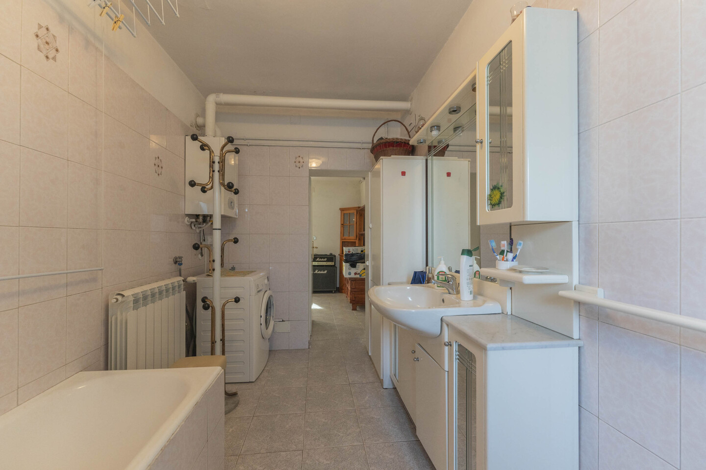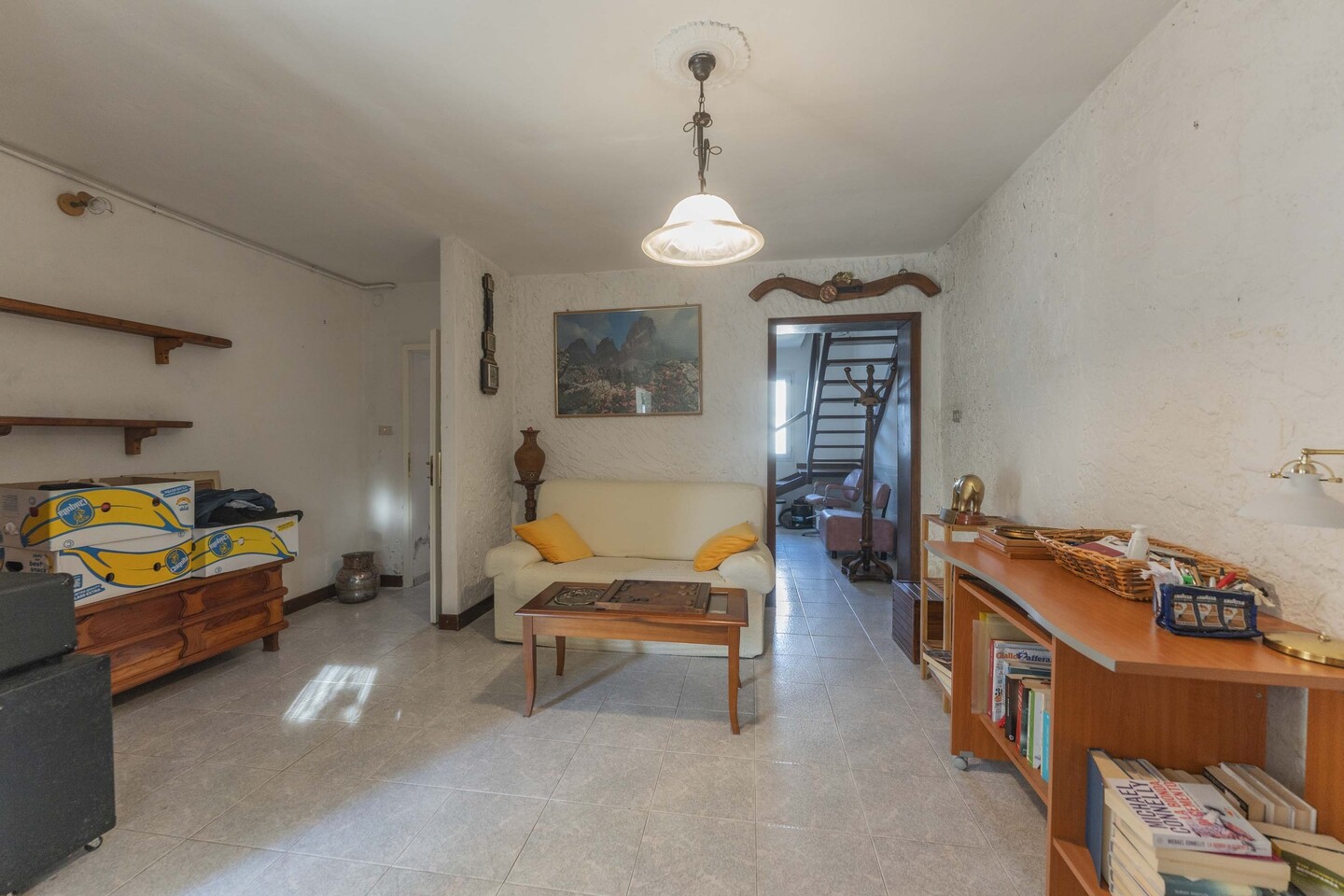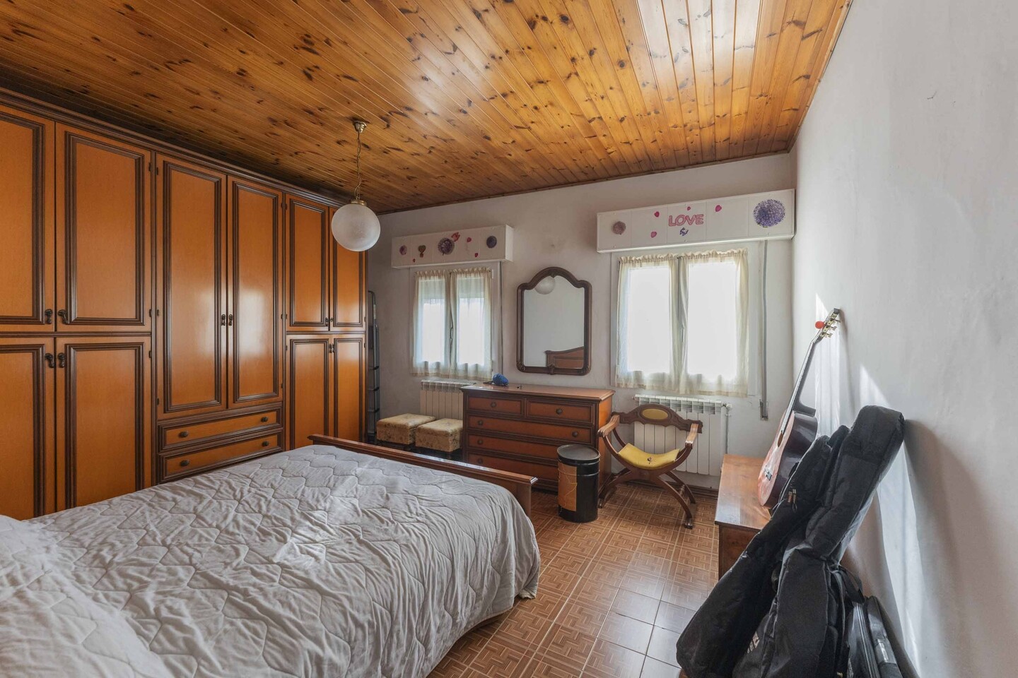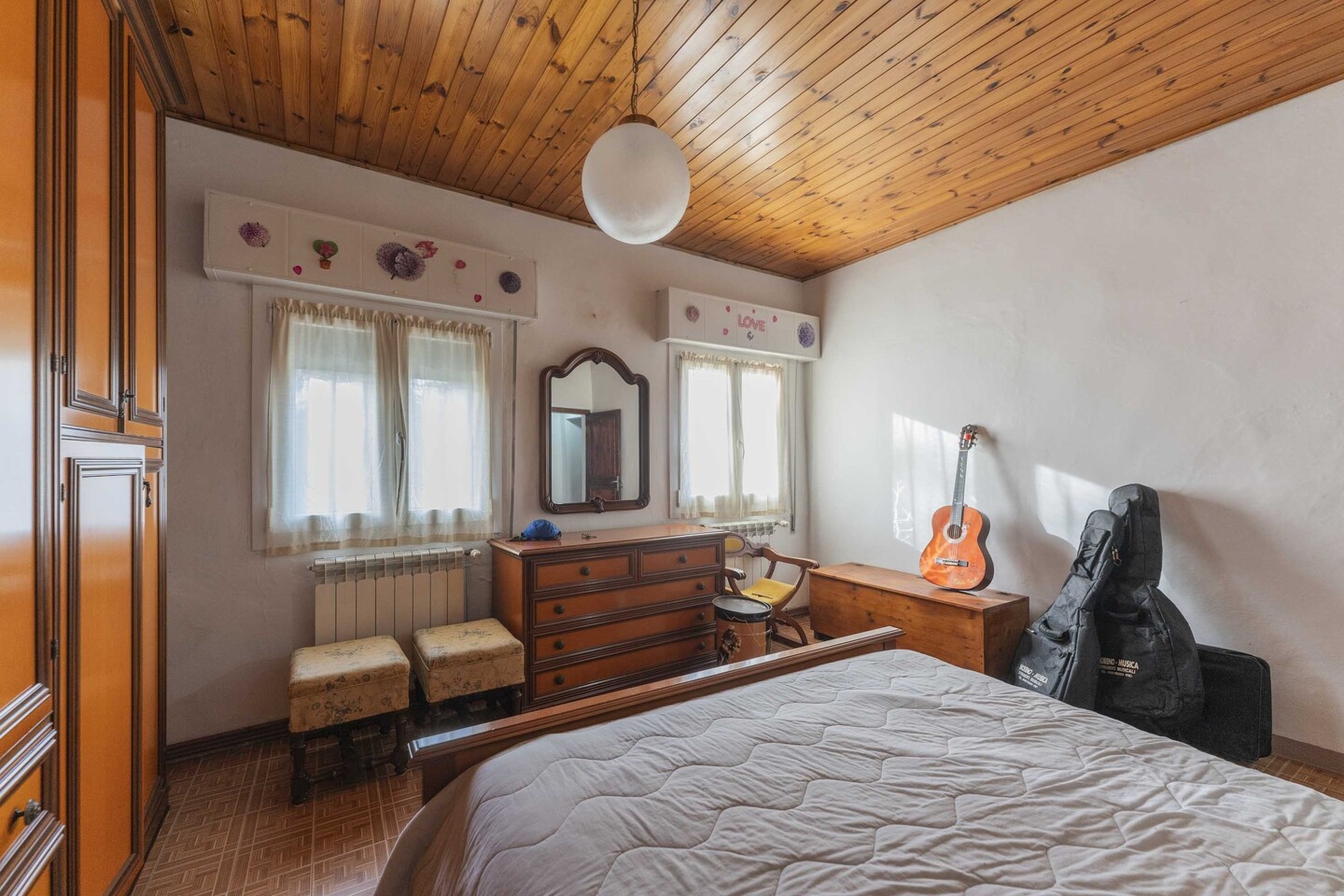 L’immobile è sviluppato su due livelli e così composto: ingresso, soggiorno, sala da pranzo, cucina abitabile e 2 bagni. Una scala conduce al primo piano dove troviamo 3 camere da letto (una matrimoniale, una doppia e una singola). Completano la proprietà garage, cantina e giardino privato su 3 lati.