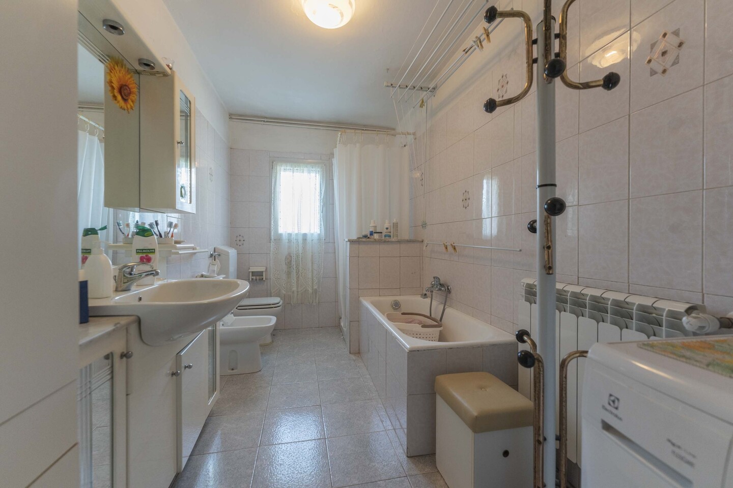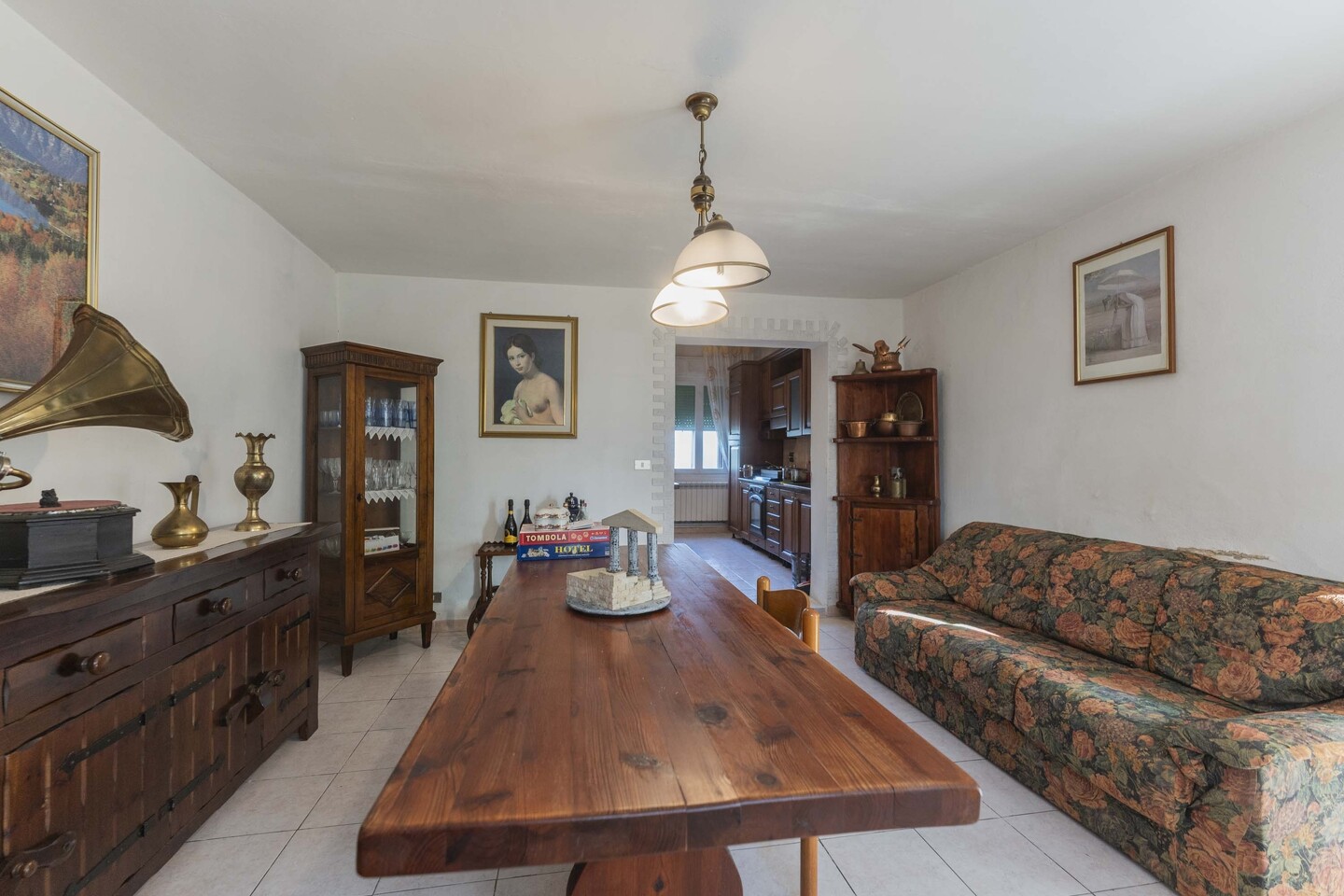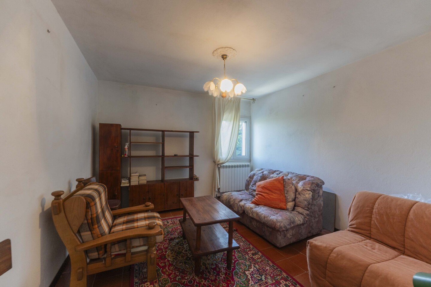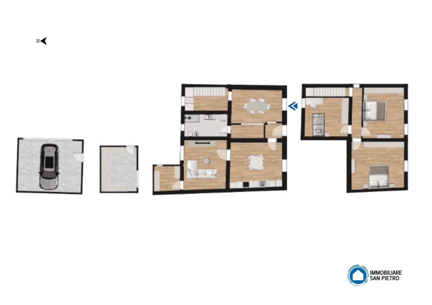 L’immobile è sviluppato su due livelli e così composto: ingresso, soggiorno, sala da pranzo, cucina abitabile e 2 bagni. Una scala conduce al primo piano dove troviamo 3 camere da letto (una matrimoniale, una doppia e una singola). Completano la proprietà garage, cantina e giardino privato su 3 lati.