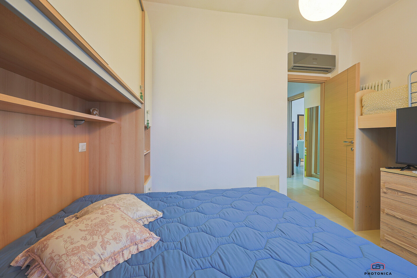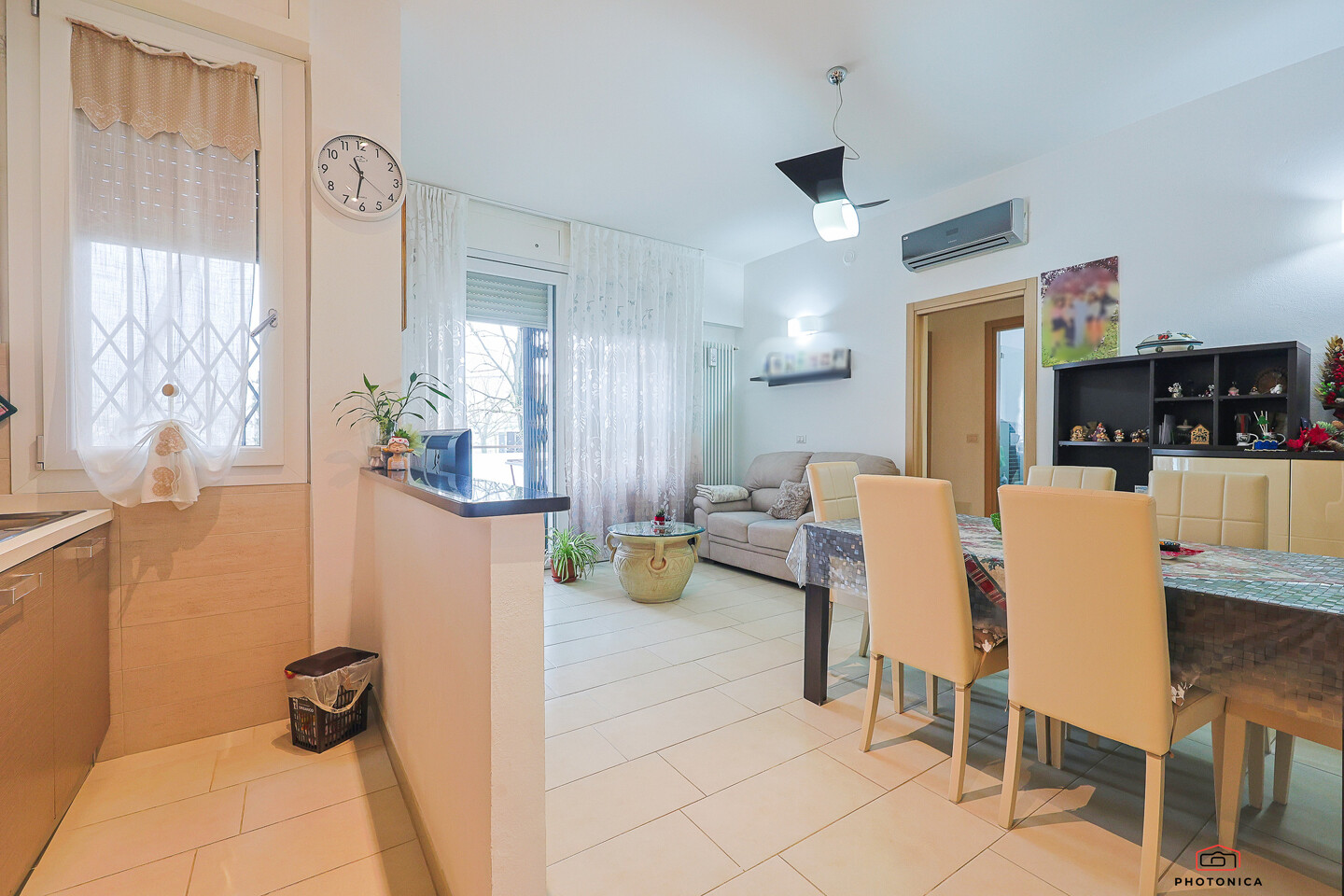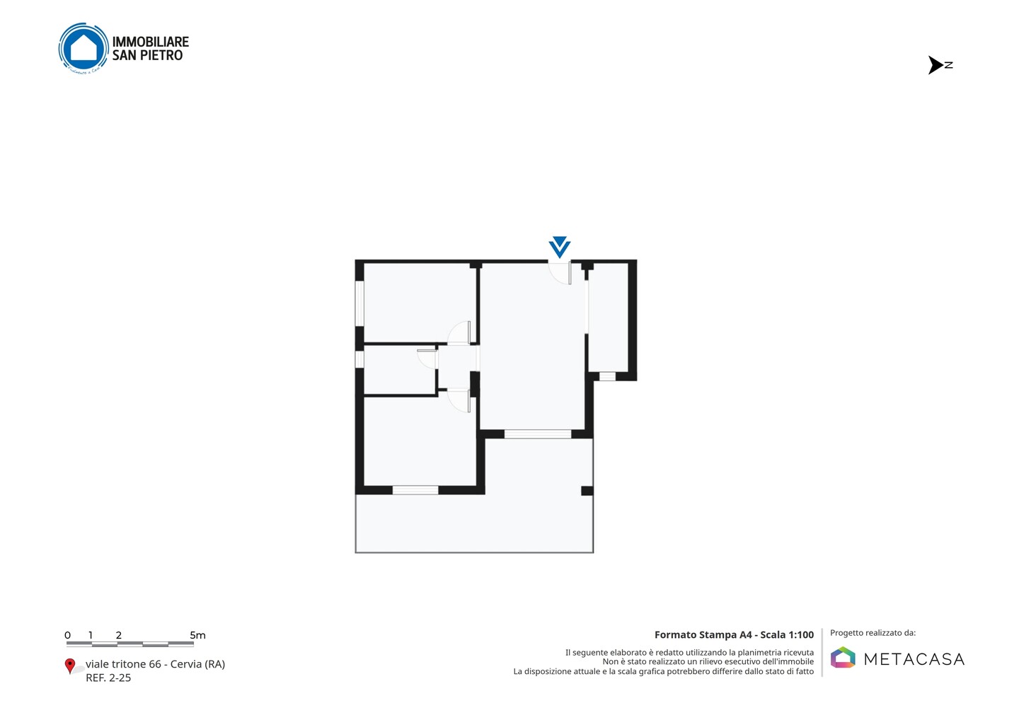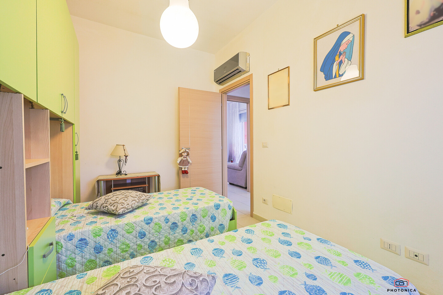 L’appartamento, disposto su un unico livello, offre spazi funzionali e ben organizzati: soggiorno con accesso a un ampio terrazzo loggiato, perfetto per momenti di relax all’aria aperta, un disimpegno, una camera matrimoniale, una camera doppia e un bagno finestrato con box doccia.