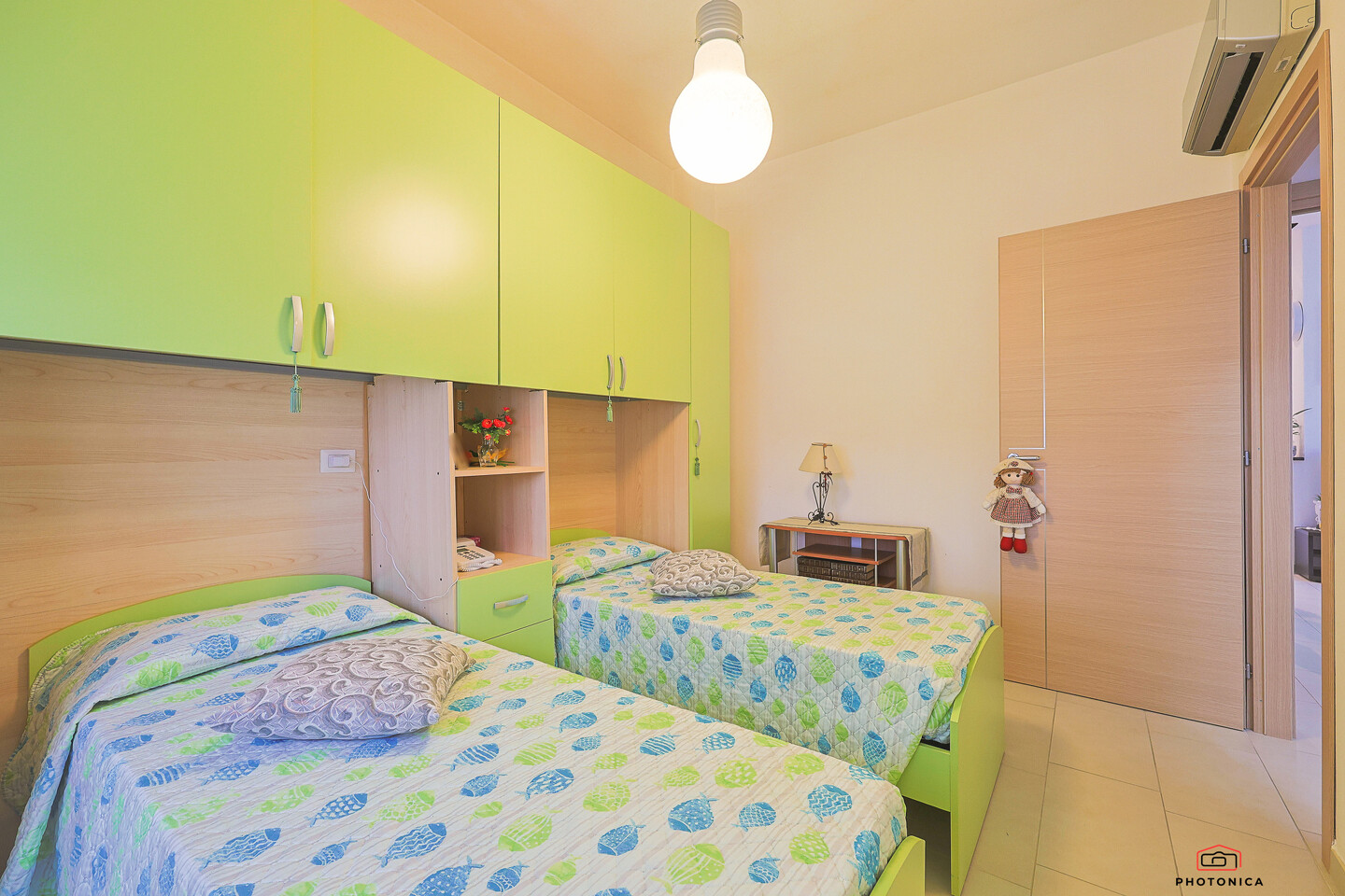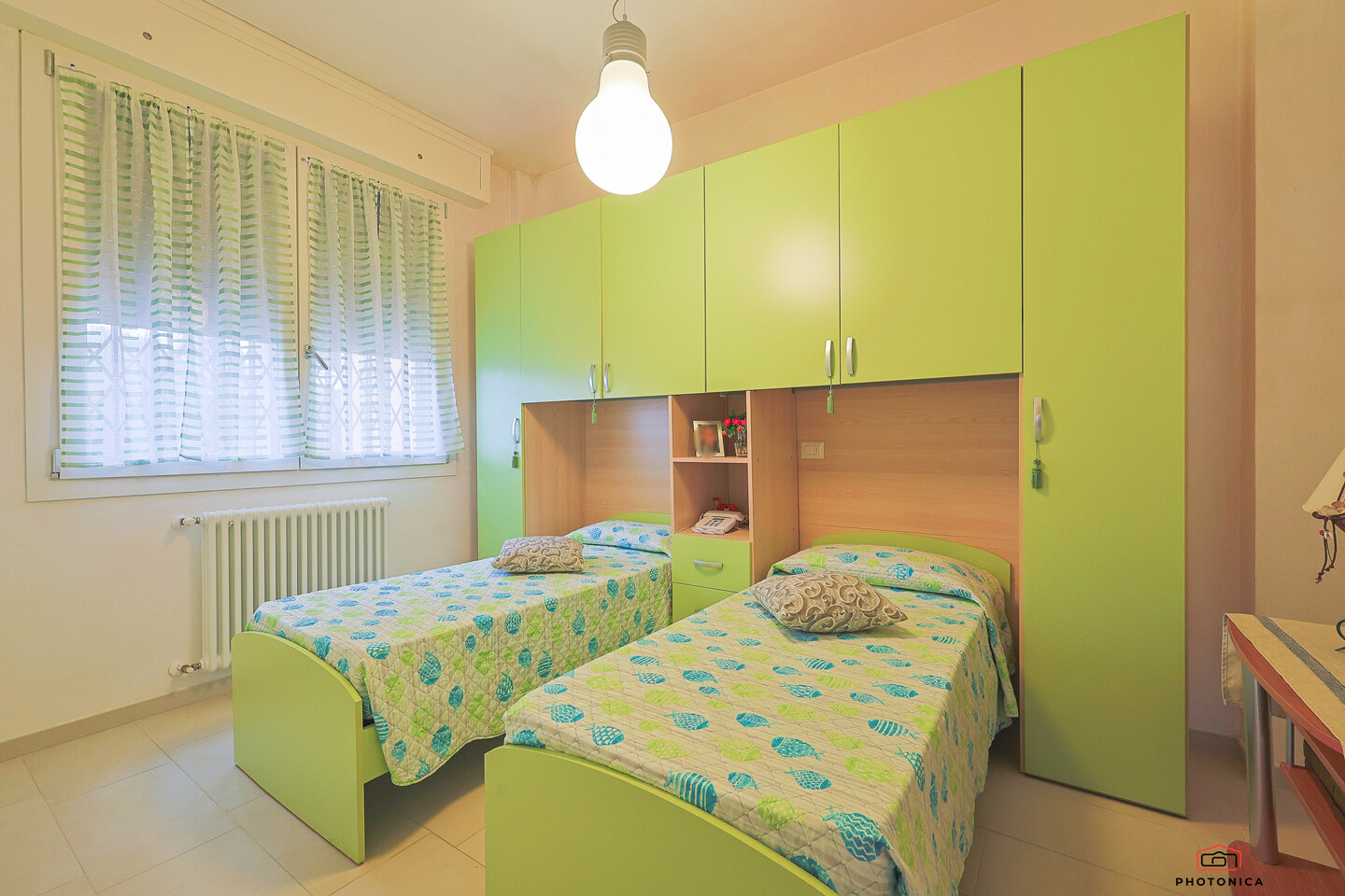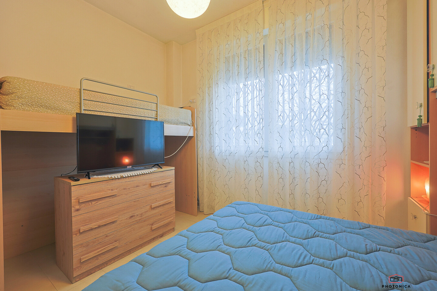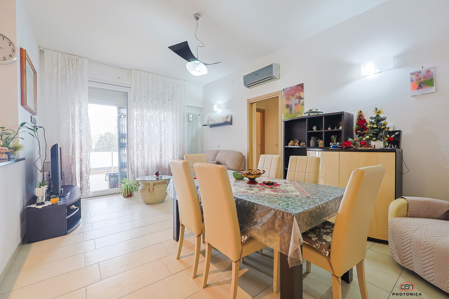 L’appartamento, disposto su un unico livello, offre spazi funzionali e ben organizzati: soggiorno con accesso a un ampio terrazzo loggiato, perfetto per momenti di relax all’aria aperta, un disimpegno, una camera matrimoniale, una camera doppia e un bagno finestrato con box doccia.