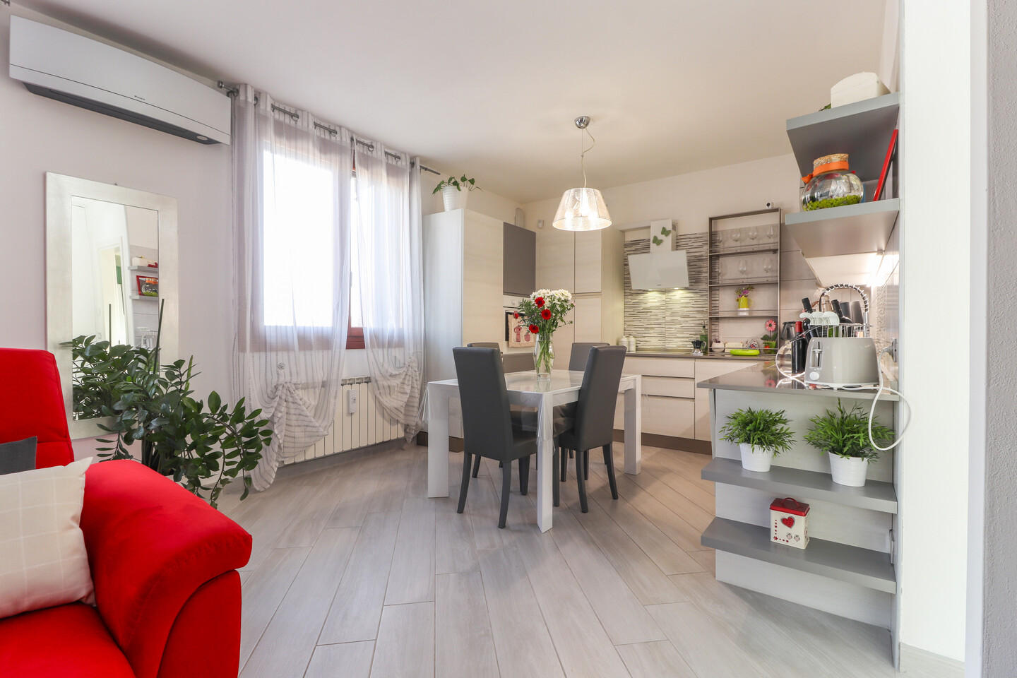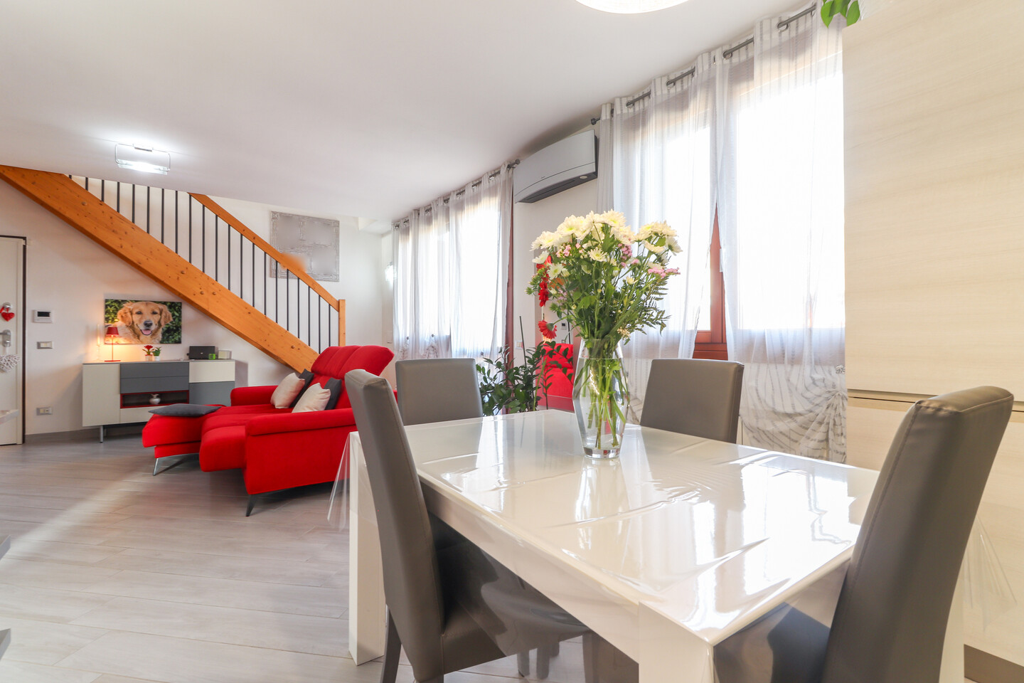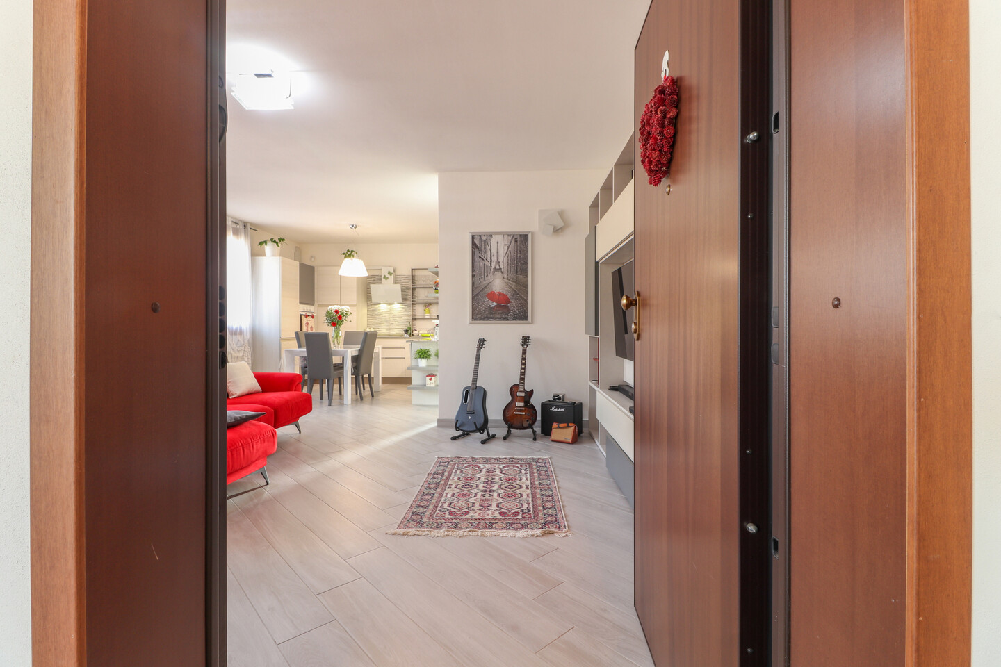 Ci troviamo in una zona residenziale tranquilla, all’interno di un condominio di recente costruzione. Ci troviamo esattamente a 400 metri dalle scuole dell’infanzia, a 500 metri dal supermercato ed a 600 metri dal centro del paese dove si sviluppano tutti i principali servizi.