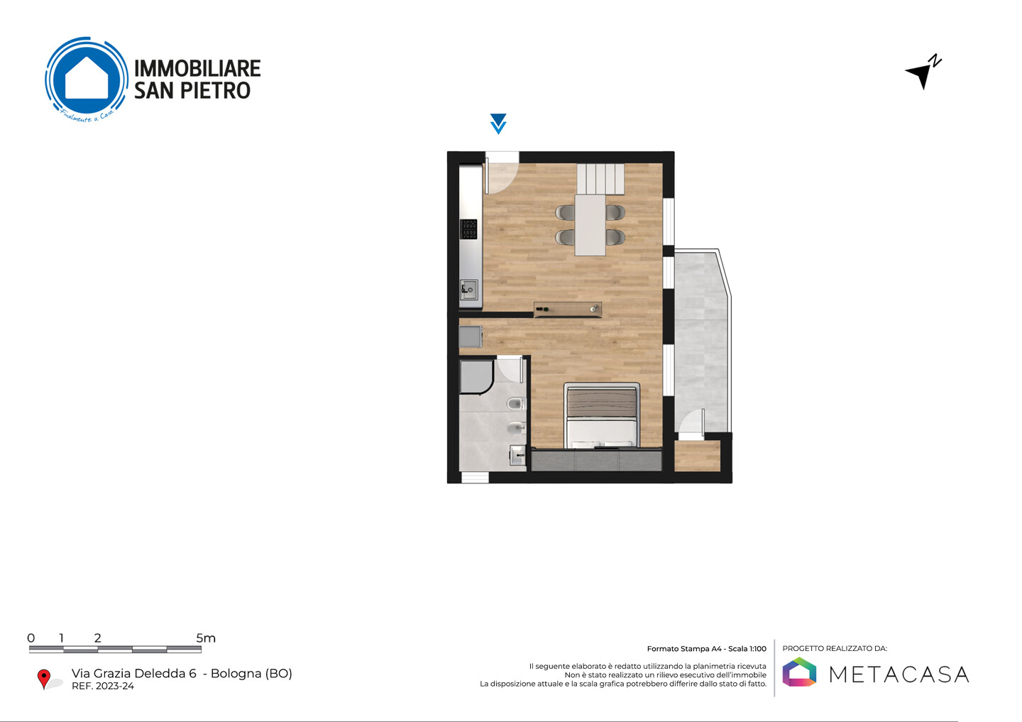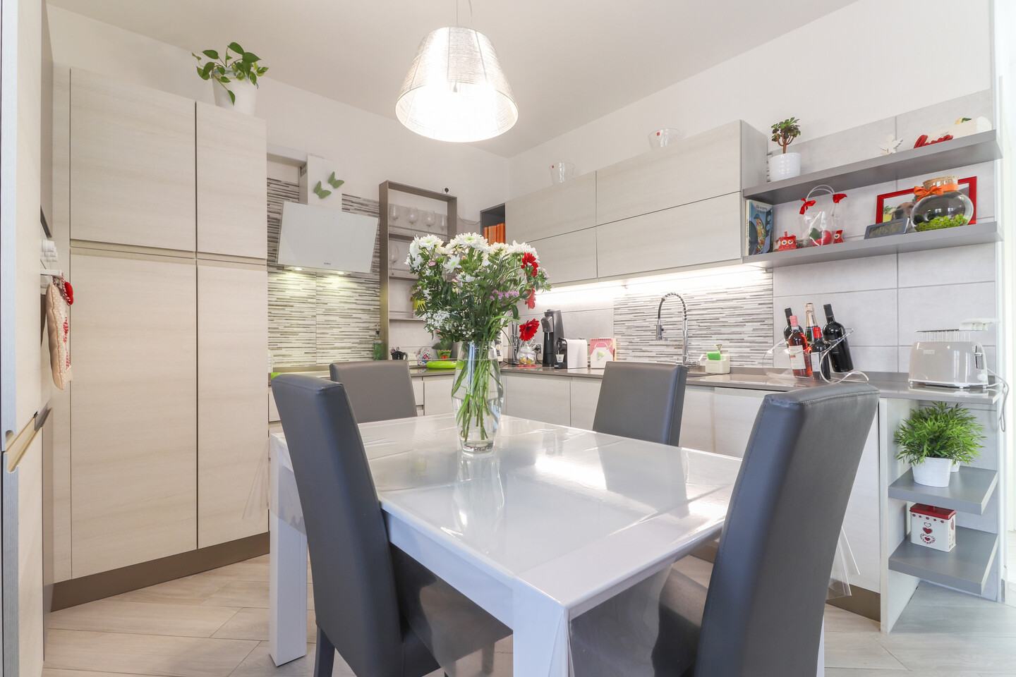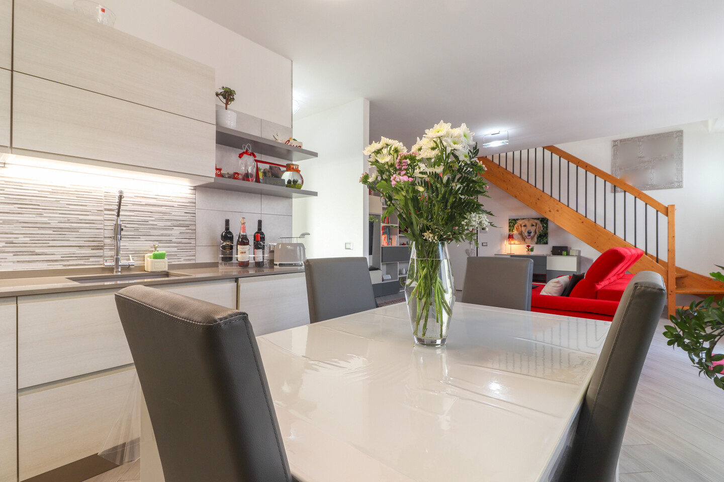 Ci troviamo in una zona residenziale tranquilla, all’interno di un condominio di recente costruzione. Ci troviamo esattamente a 400 metri dalle scuole dell’infanzia, a 500 metri dal supermercato ed a 600 metri dal centro del paese dove si sviluppano tutti i principali servizi.