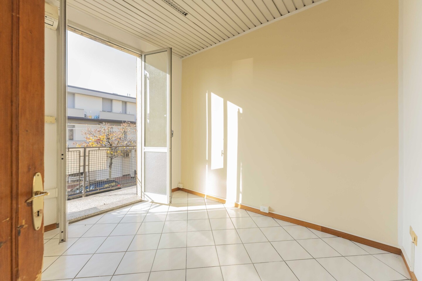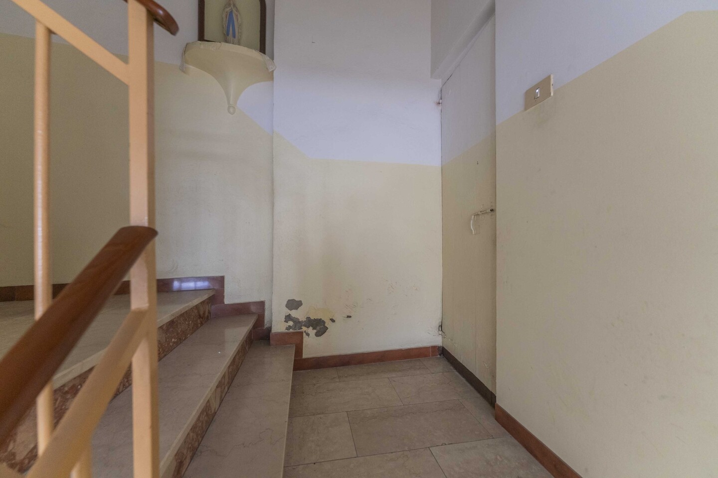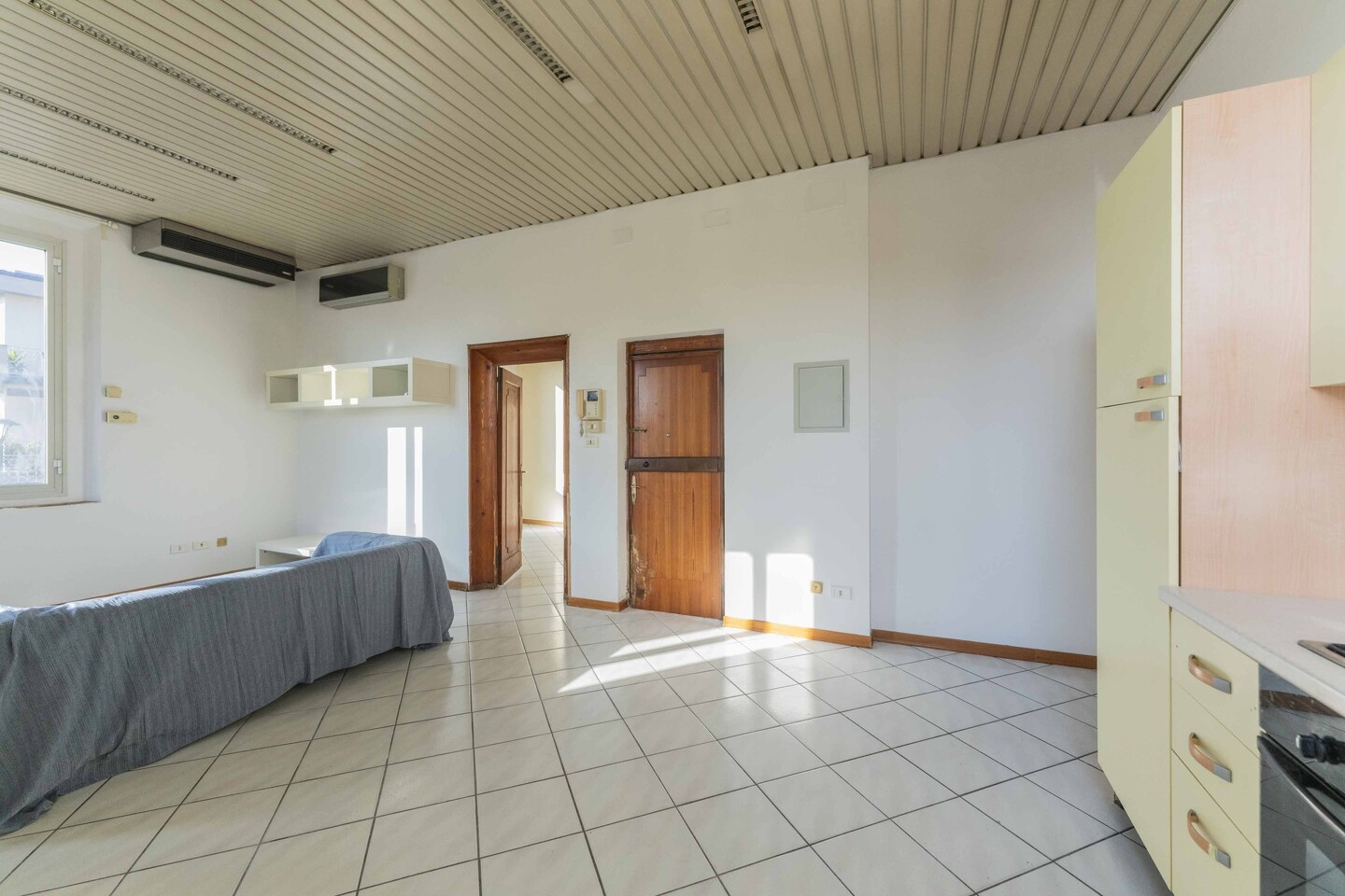 L’appartamento è situato al piano primo di una palazzina anni ’60, internamente ristrutturata a metà degli anni ’90. Ingresso su soggiorno con cucina a vista, una camera matrimoniale con balcone ed un bagno. Al piano terra due cantine. In fabbricato opposto troviamo al piano terra l’autorimessa.