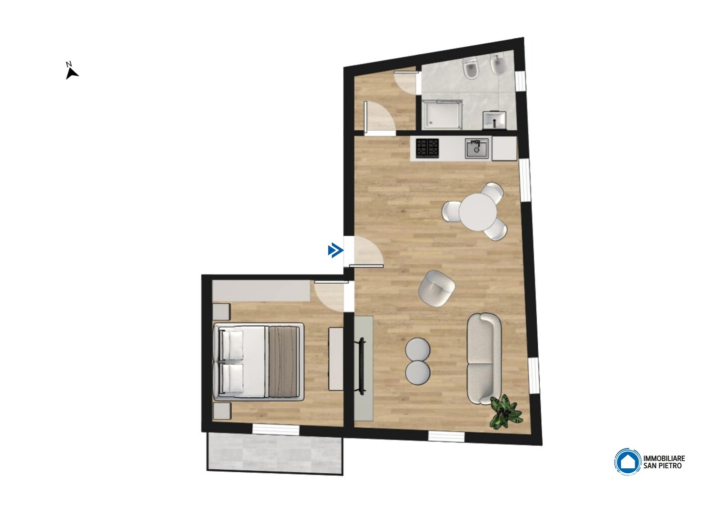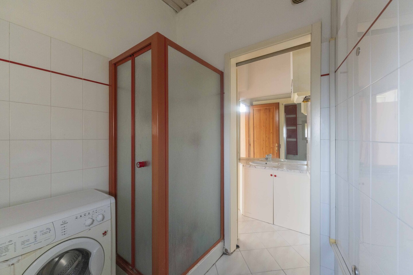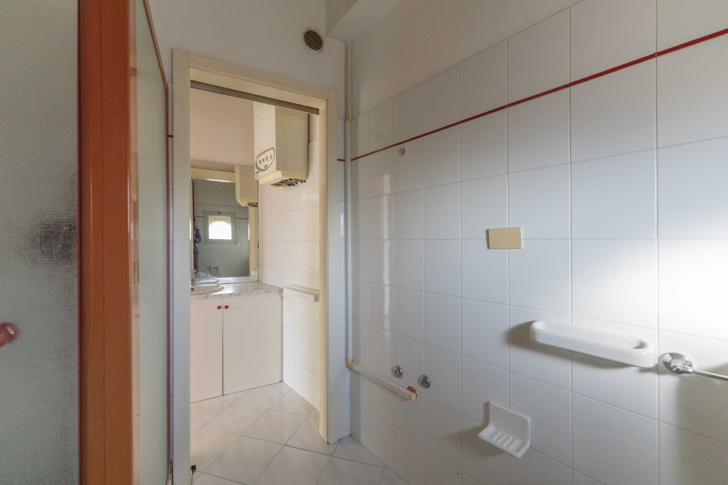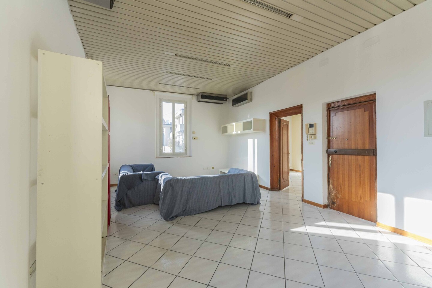 L’appartamento è situato al piano primo di una palazzina anni ’60, internamente ristrutturata a metà degli anni ’90. Ingresso su soggiorno con cucina a vista, una camera matrimoniale con balcone ed un bagno. Al piano terra due cantine. In fabbricato opposto troviamo al piano terra l’autorimessa.