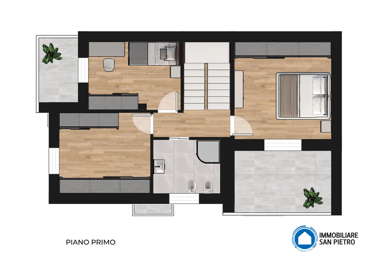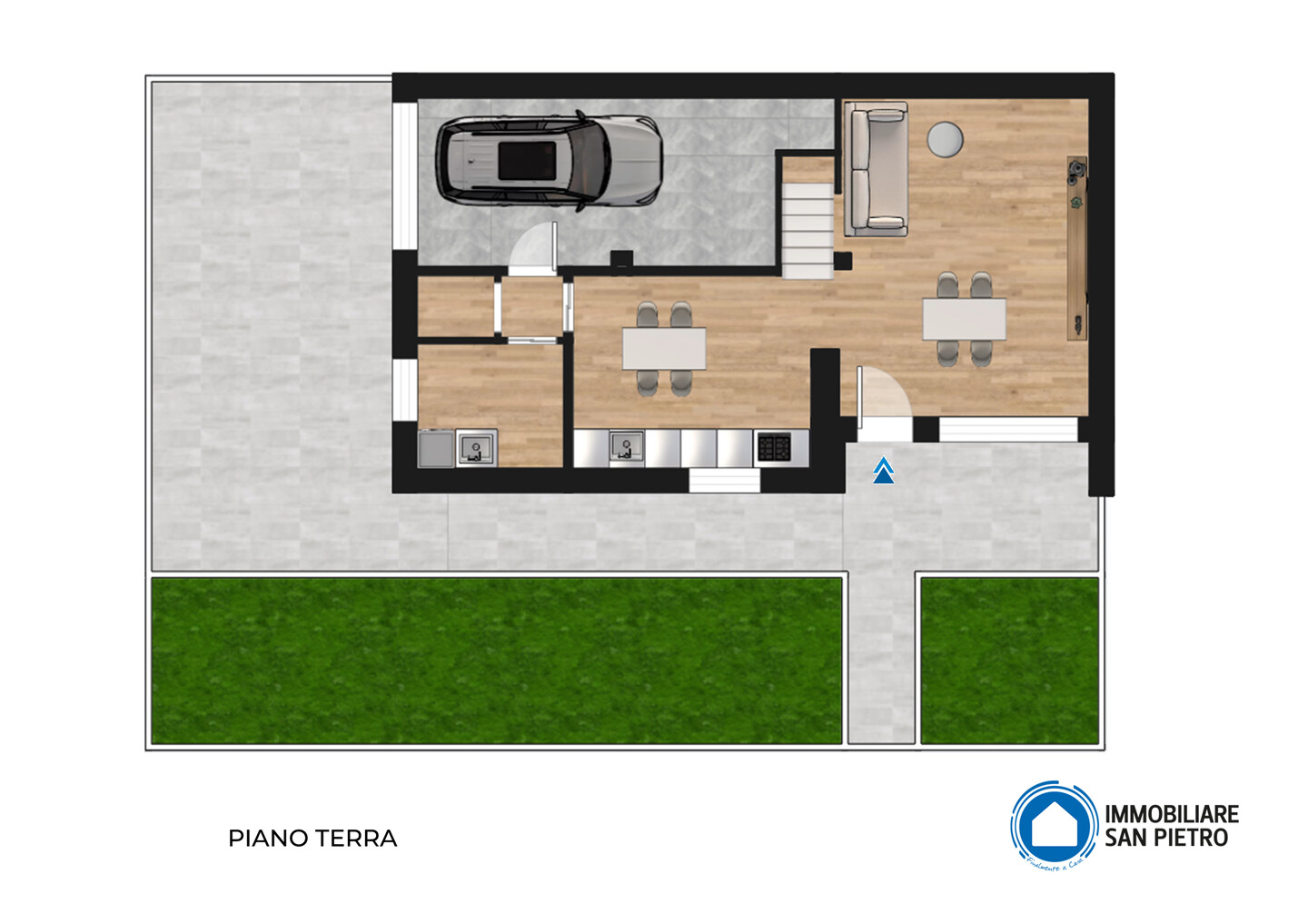 L’immobile è suddiviso in 3 livelli: al piano terra è composto da ingresso su soggiorno, cucina abitabile, disimpegno, lavanderia e locale tecnico, autorimessa; al piano primo sono presenti 2 camere entrambe con terrazza ed un bagno, locale accessorio; il piano secondo, collegato da scala interna, è soffitta/studio.