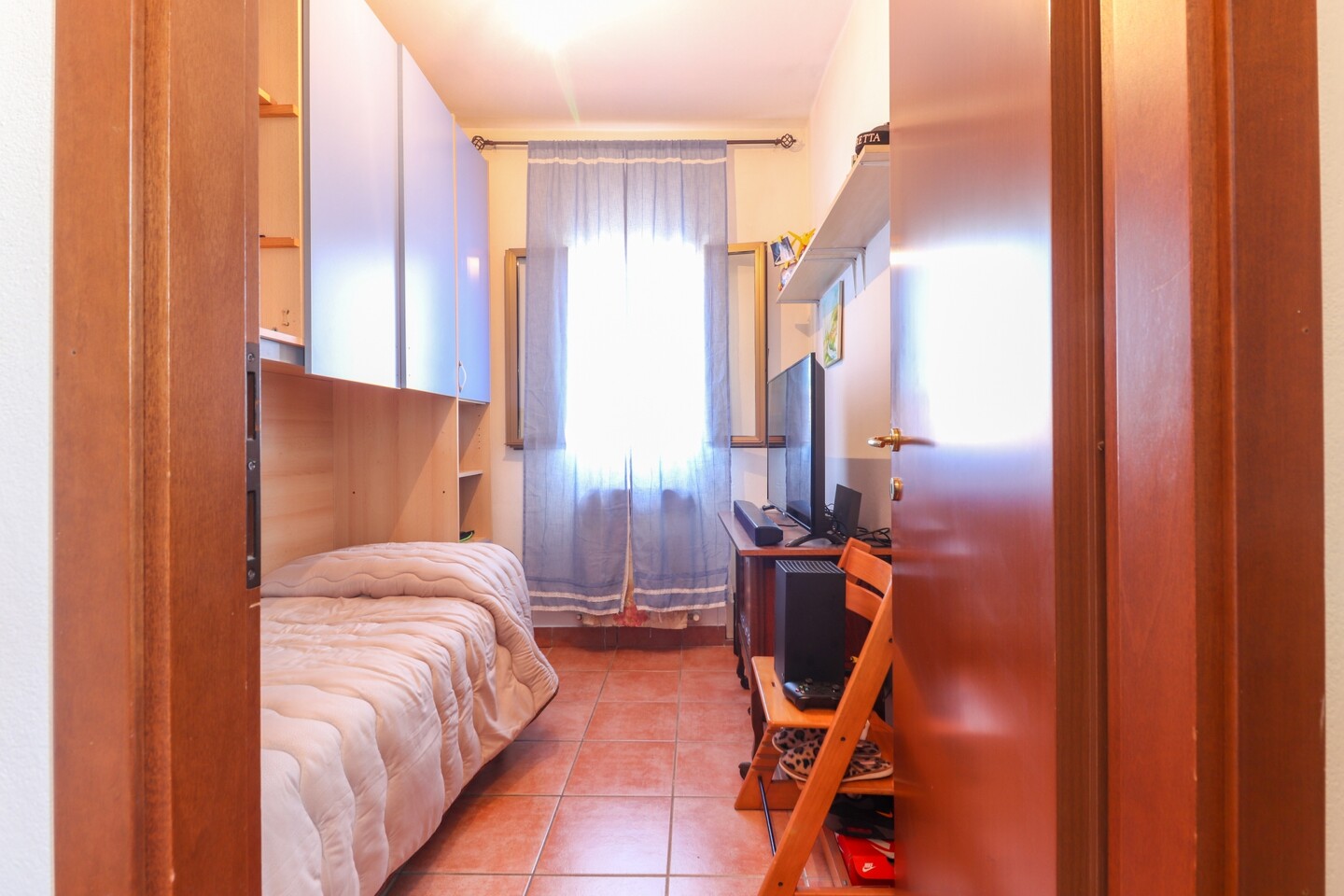 La porzione di casa si sviluppa su tre livelli, con una distribuzione funzionale degli spazi e internamente in buone condizioni. Al piano terra si sviluppa la zona giorno con angolo cottura, tramite graziosa scala si accede al primo piano dove troviamo la camera matrimoniale, bagno finestrato e ampio ripostiglio, arredabile come camera singola. Al piano secondo il sottotetto. Completano la proprietà in fabbricato accessorio, cantina e legnaia, oltre a piccolo ripostiglio.