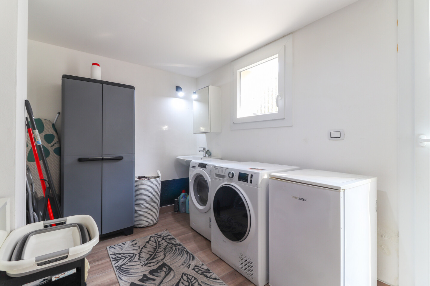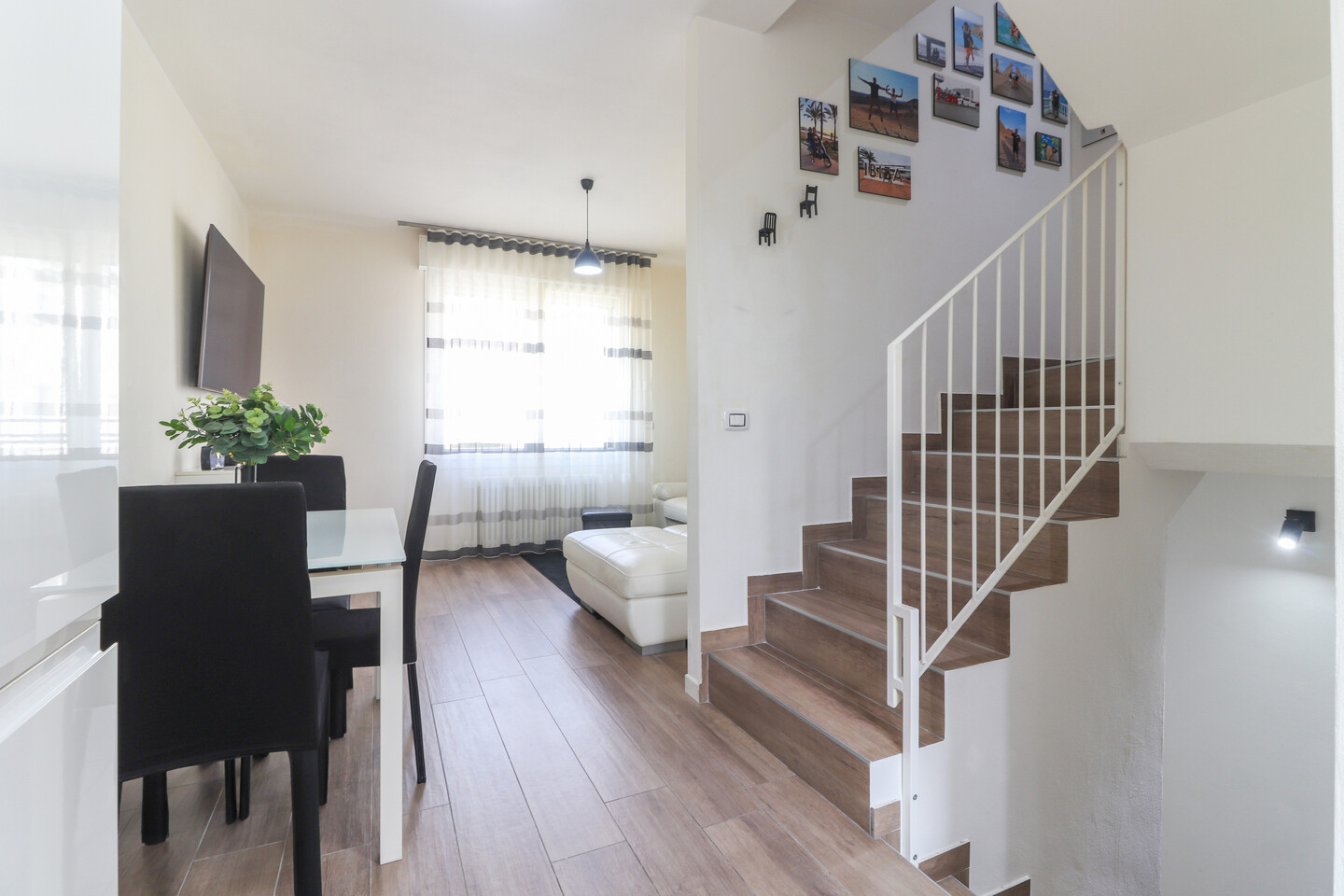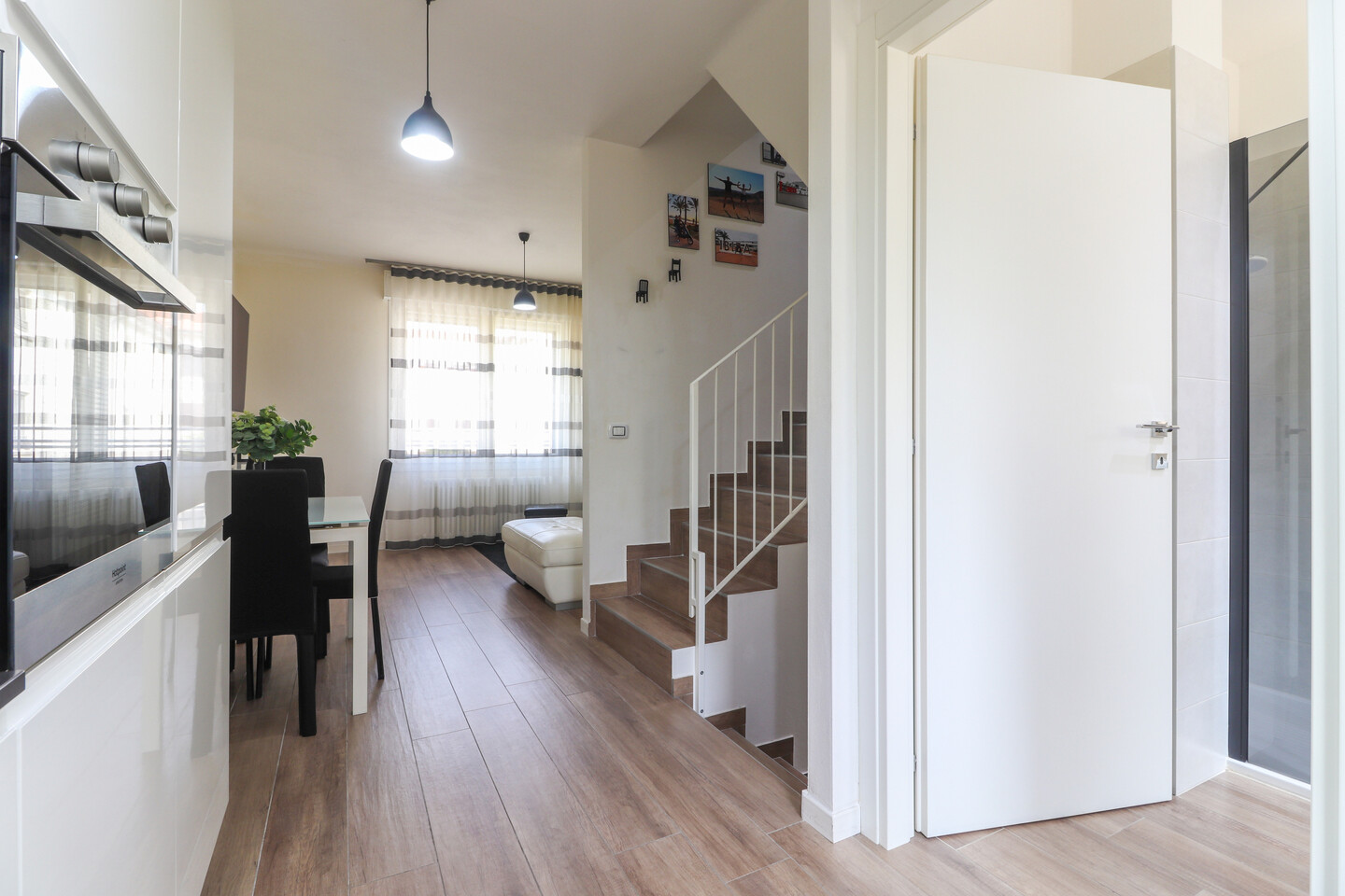 Villetta sviluppata su 3 livelli: piano terra con ingresso, garage con zona lavanderia e giardino privato; al piano superiore abbiamo soggiorno con angolo cottura e bagno; al piano secondo 2 camere da letto e bagno.