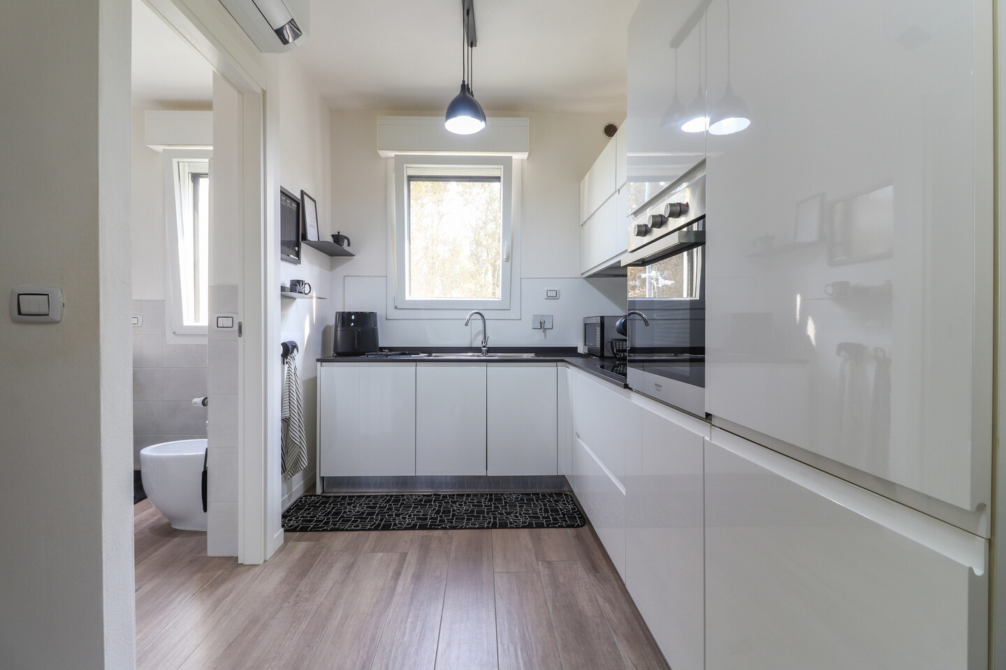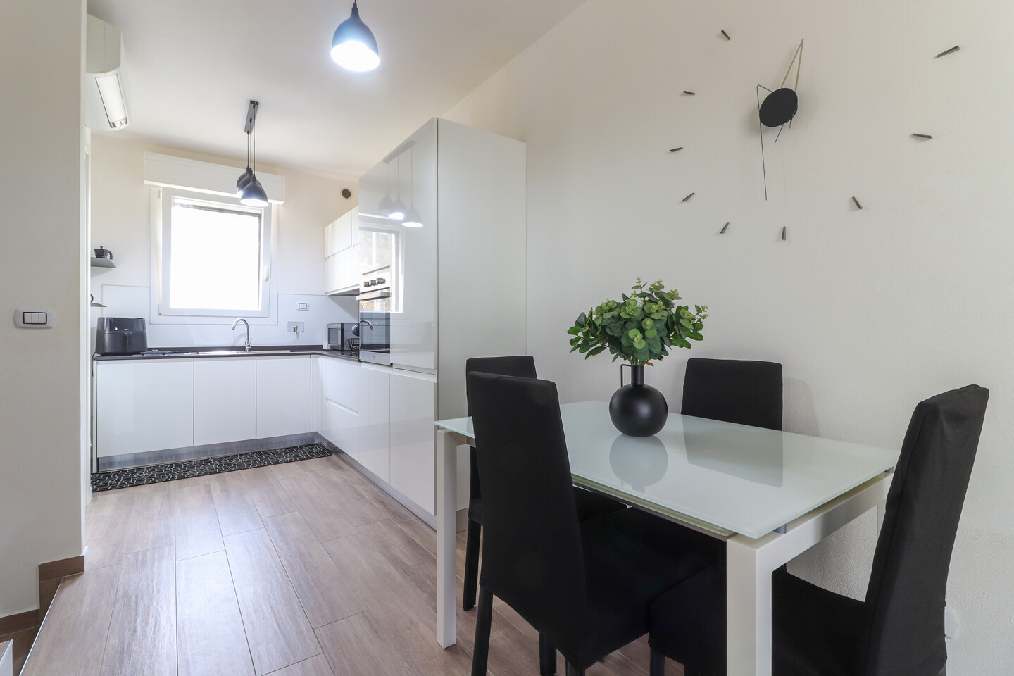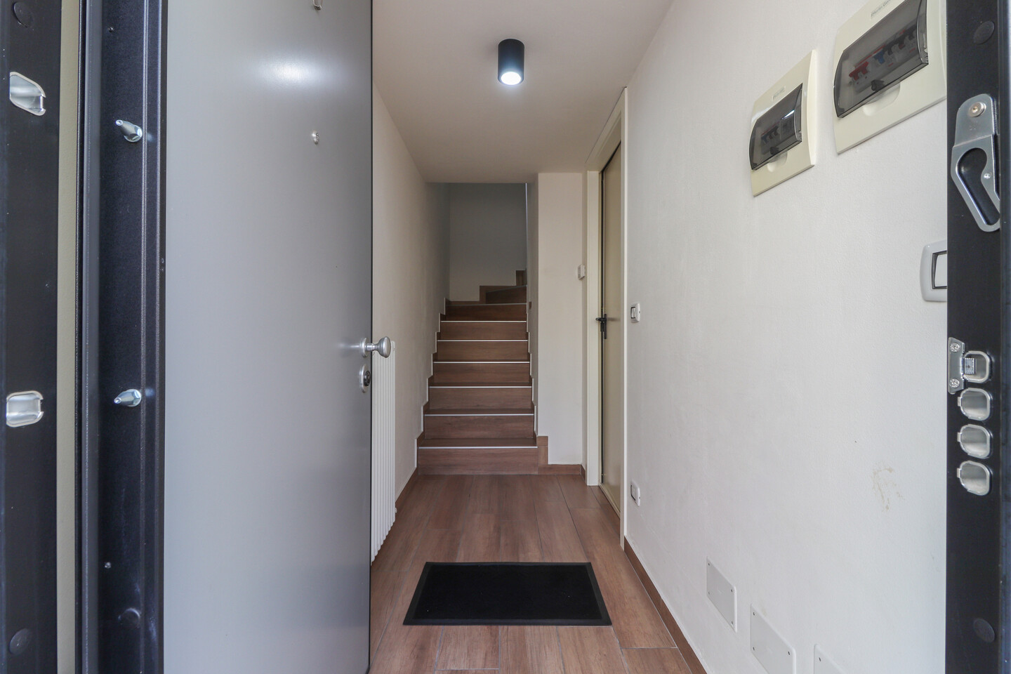 Villetta sviluppata su 3 livelli: piano terra con ingresso, garage con zona lavanderia e giardino privato; al piano superiore abbiamo soggiorno con angolo cottura e bagno; al piano secondo 2 camere da letto e bagno.