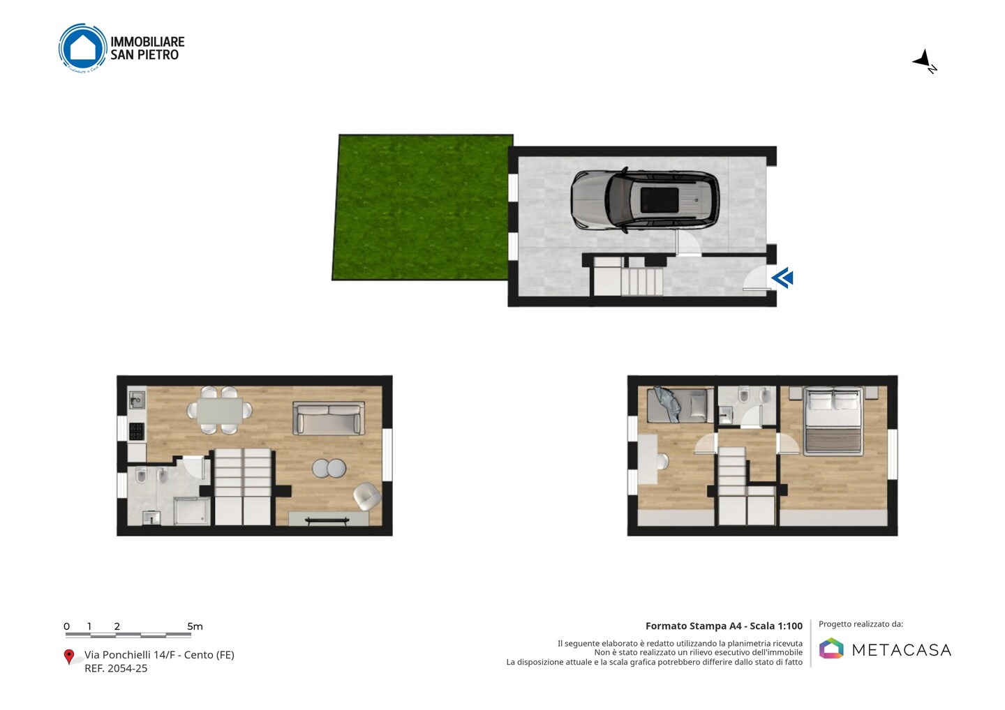 Ci troviamo in una zona residenziale tranquilla, esattamente a 180 metri dal supermercato, a 130 metri dalla fermata dell’autobus ed a 550 metri dalla Rocca di Cento.