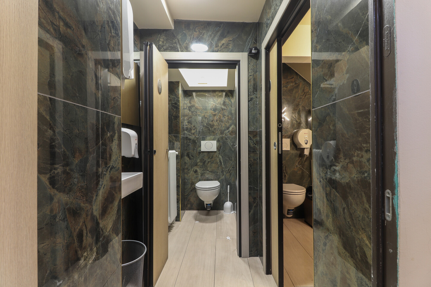 Al primo piano, è presente uno spazio dedicato a spogliatoio e docce per il personale.