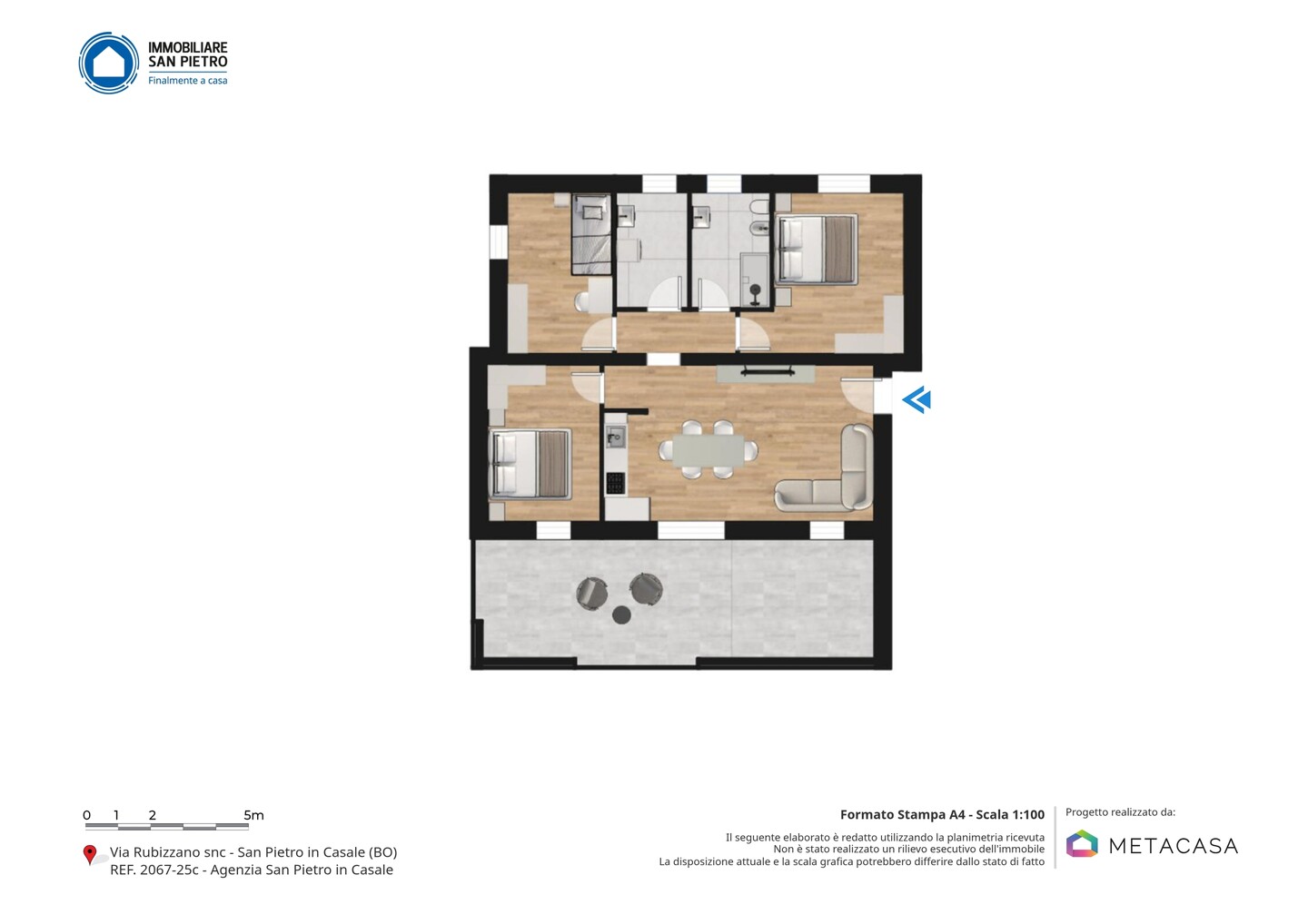 La palazzina si trova in contesto residenziale a ridosso del centro di San Pietro in Casale, comodamente raggiungibile a piedi e a meno di cinquecento metri dalla stazione ferroviaria. La posizione permette di essere immersi nel verde e nella tranquillità, senza rinunciare alle comodità dei servizi utili alla vivibilità quotidiana come bar, tabacchi, banche, poste, uffici comunali, supermercati e negozi di alimentari, farmacie, asilo nido, scuola materna, elementari e medie. Sono inoltre presenti numerose fermate dell’autobus di linea 97 (Tper) e la stazione ferroviaria che ti collegherà a Bologna e Ferrara in circa 30 minuti, senza bisogno di utilizzare il tuo mezzo personale! E’ ben provvisto anche di servizi secondari, ma comunque fondamentali per lo svago ed il tempo libero come ristoranti, parchi, centro sportivo e biblioteche. A pochi chilometri è presente anche il casello autostradale di Altedo con entrata/uscita dedicata (autostrada A13)