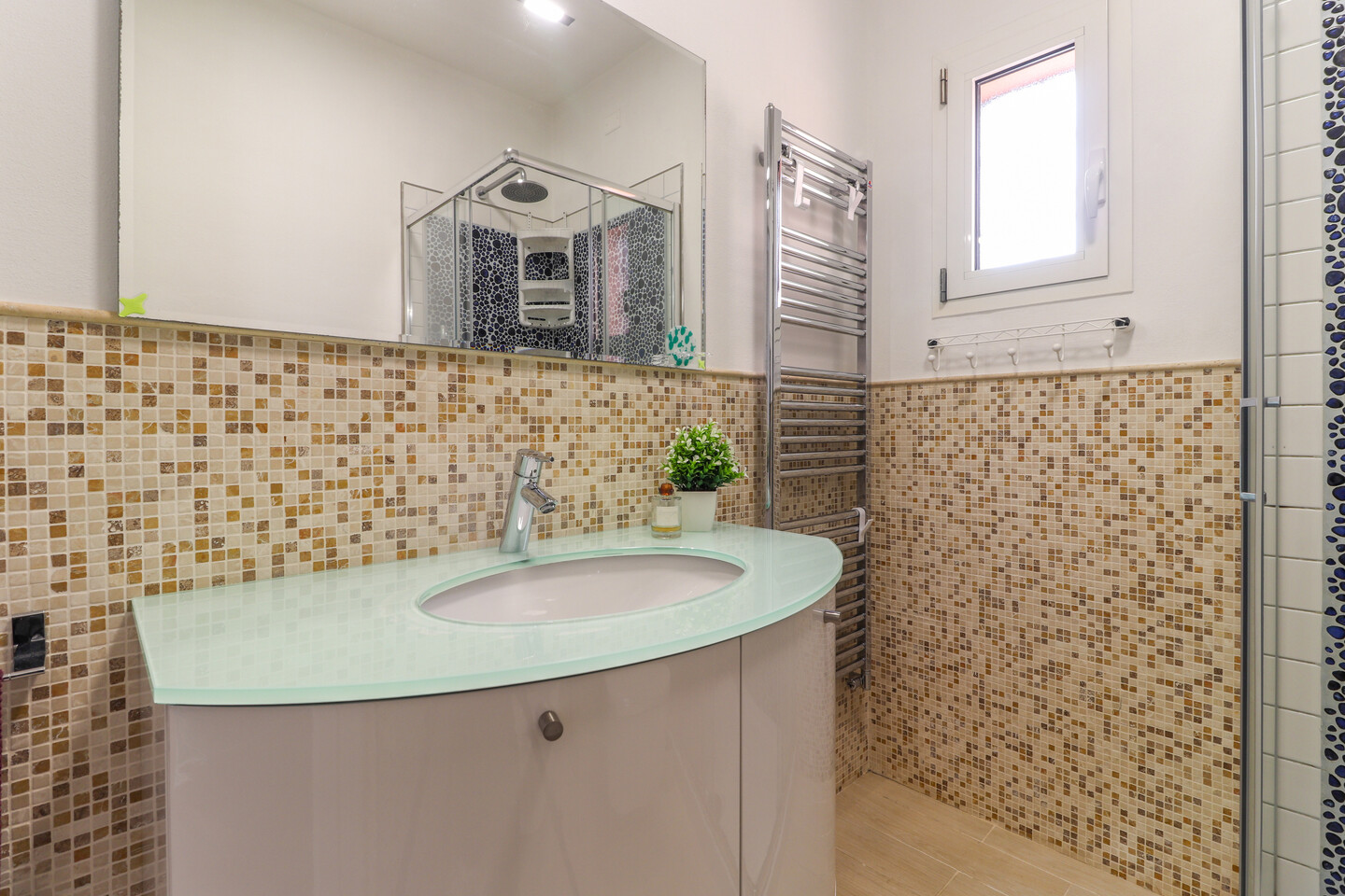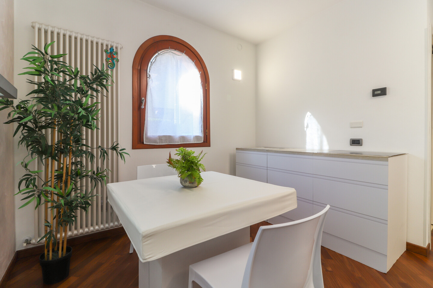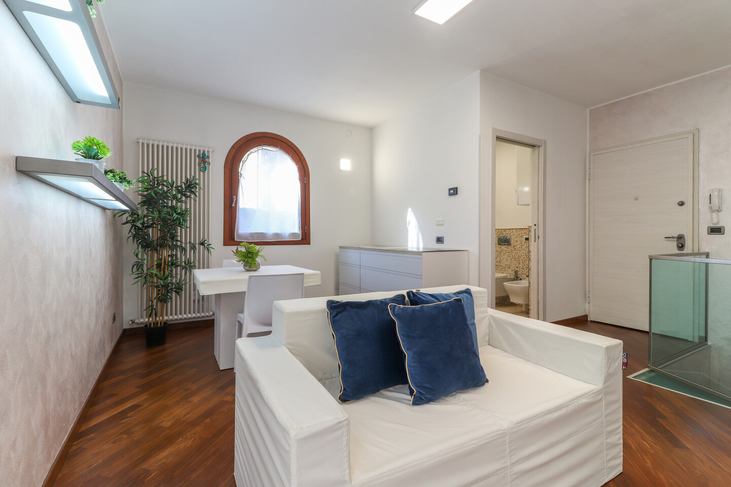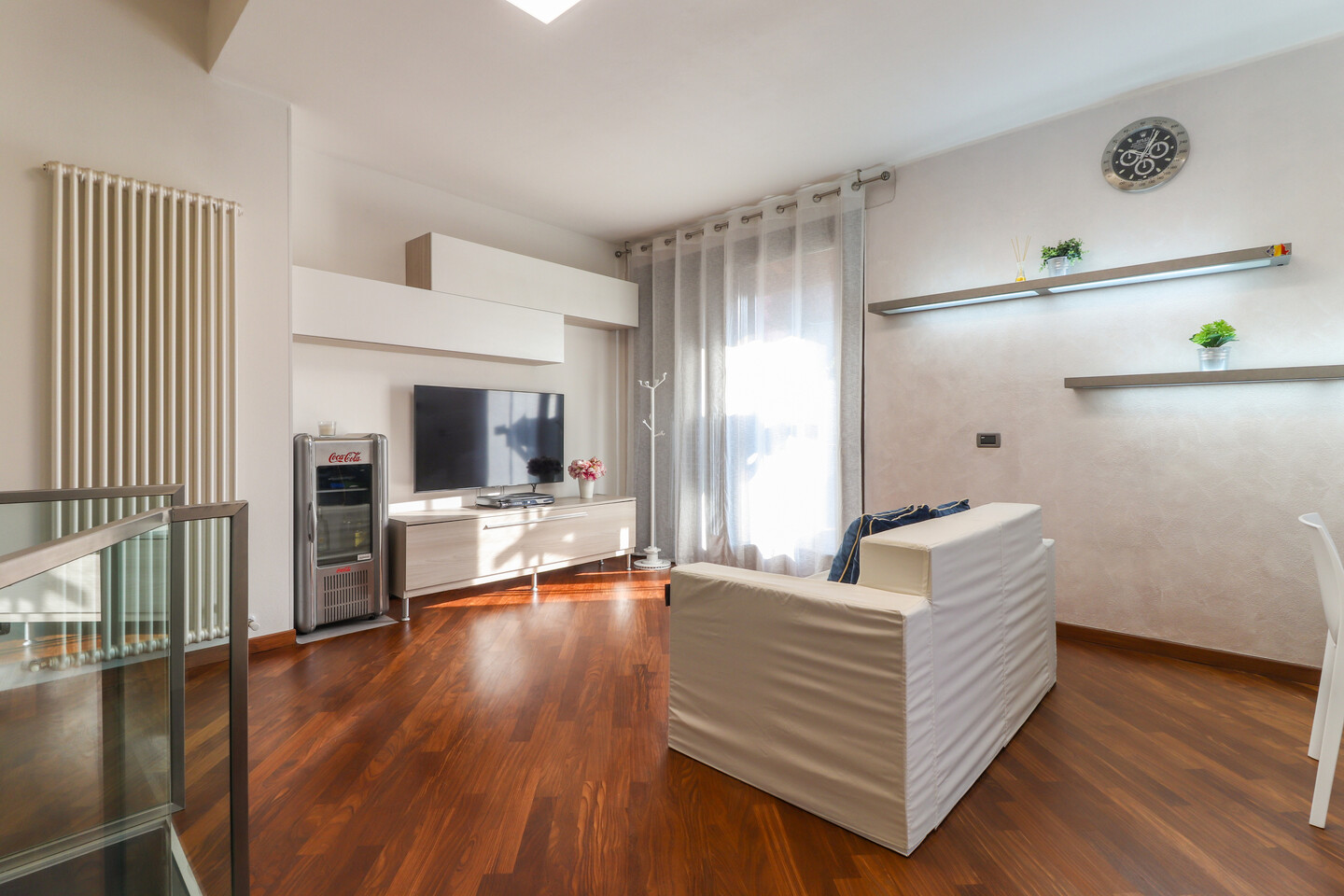 L’ingresso indipendente dal giardino conduce al luminoso soggiorno con angolo cottura e ad un bagno finestrato con doccia. Da qui si accede sia alla scala principale in parquet che porta alla zona notte, sia alla scala in vetro che conduce al piano seminterrato, dove è presente la taverna/cantina.