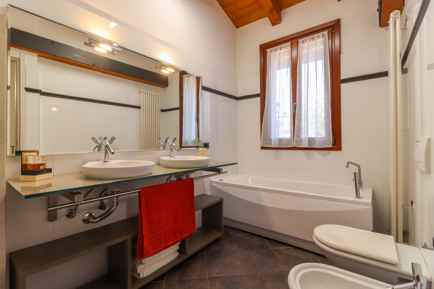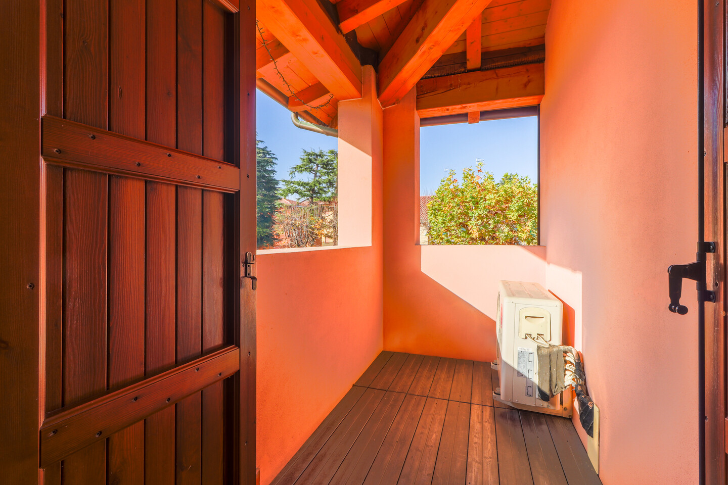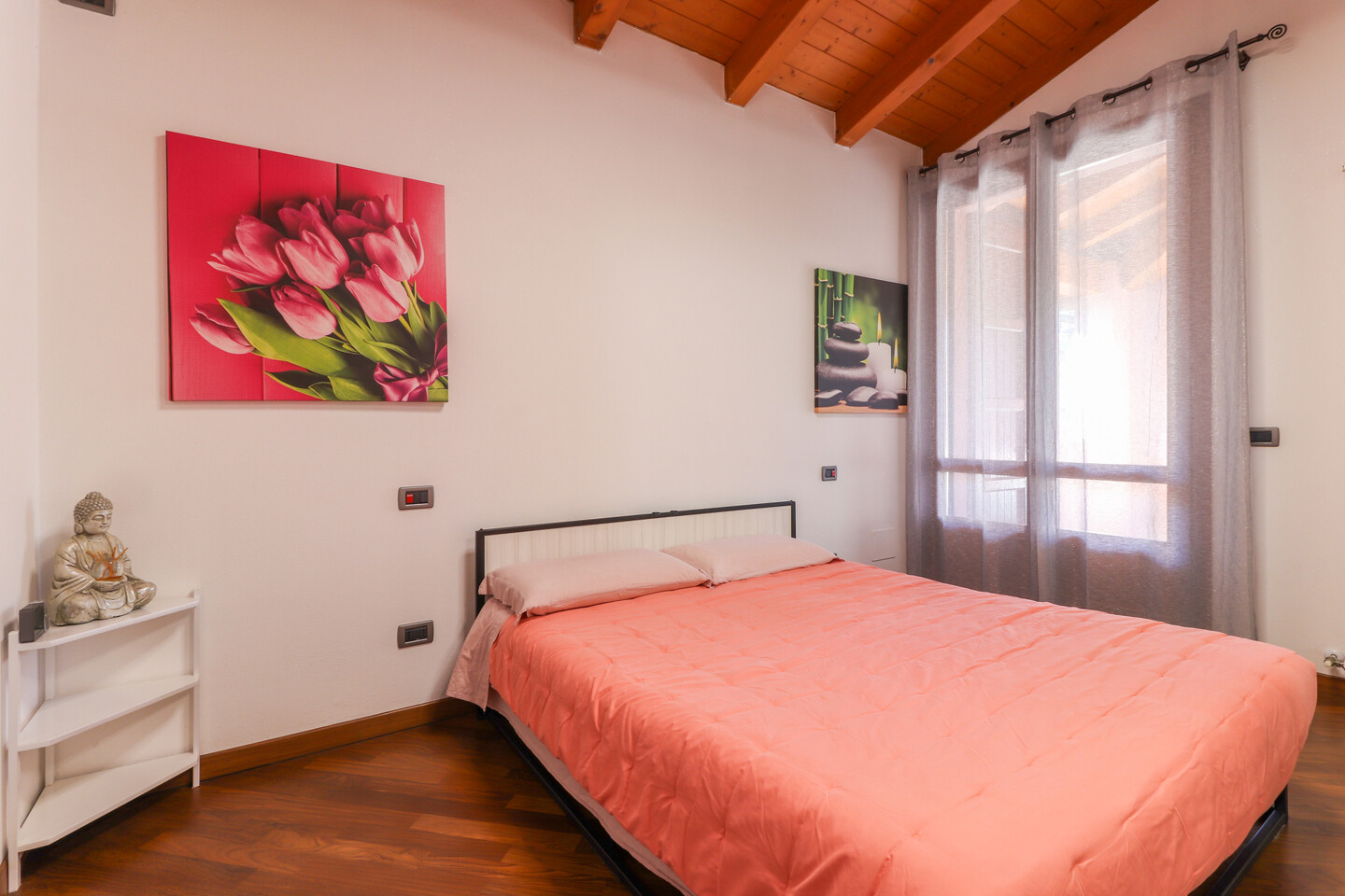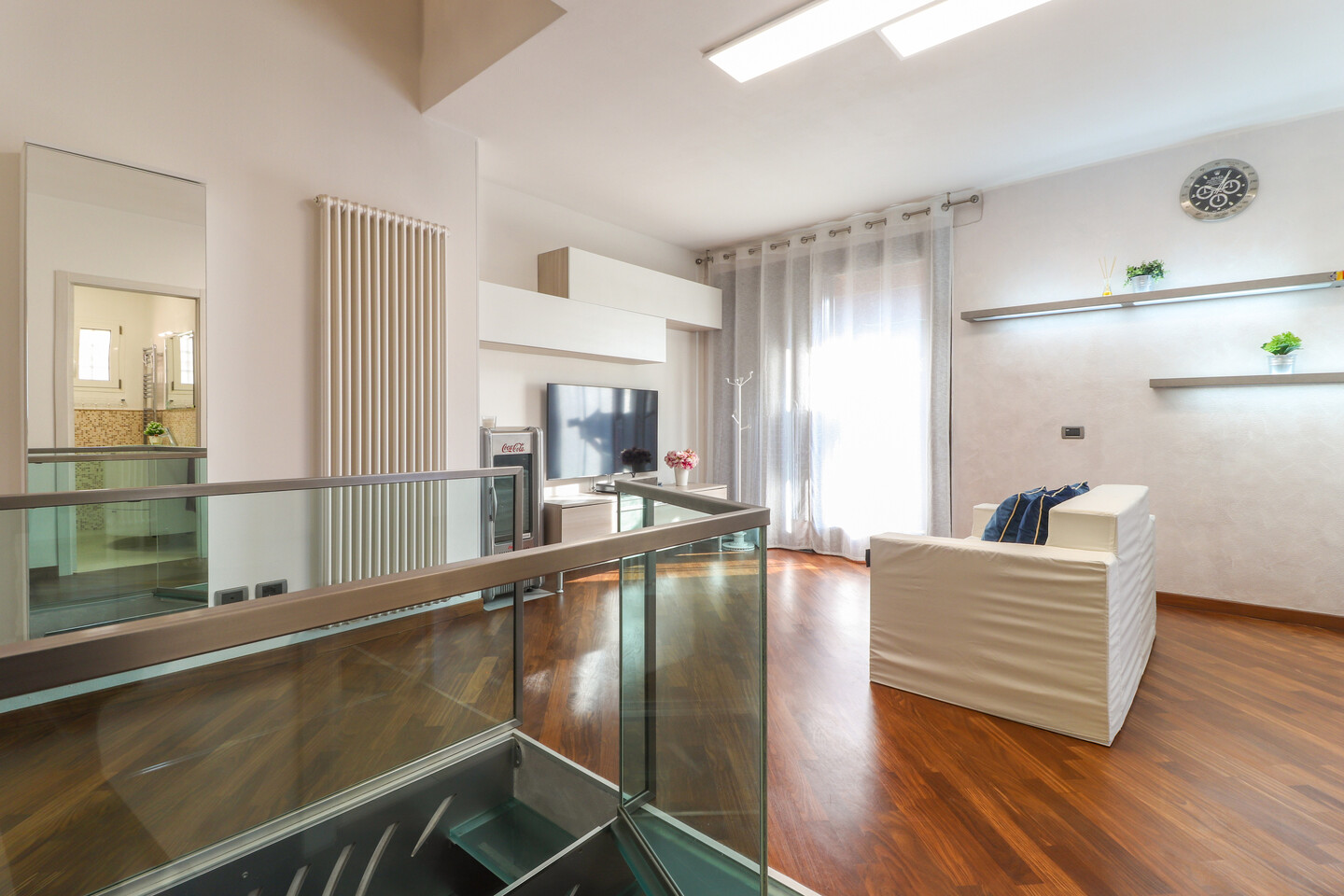 Al piano superiore, caratterizzato da suggestivi soffitti mansardati in legno alti fino a 3,20 metri, si trovano 1 camera matrimoniale con accesso diretto alla terrazza, 1 camera doppia e un bagno spazioso dotato di vasca e doppio lavabo.