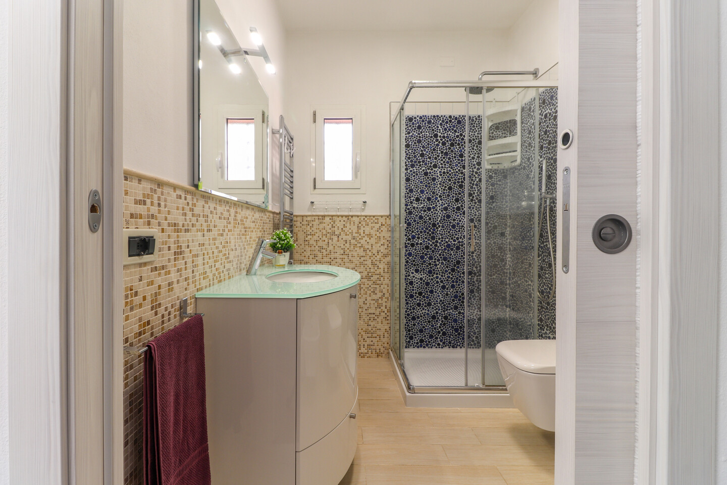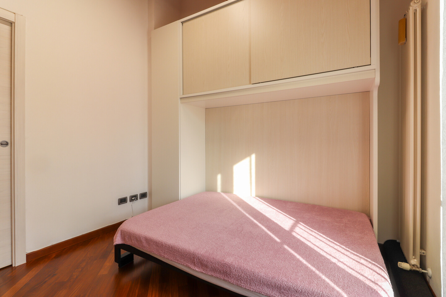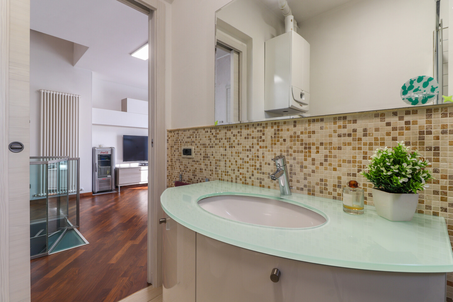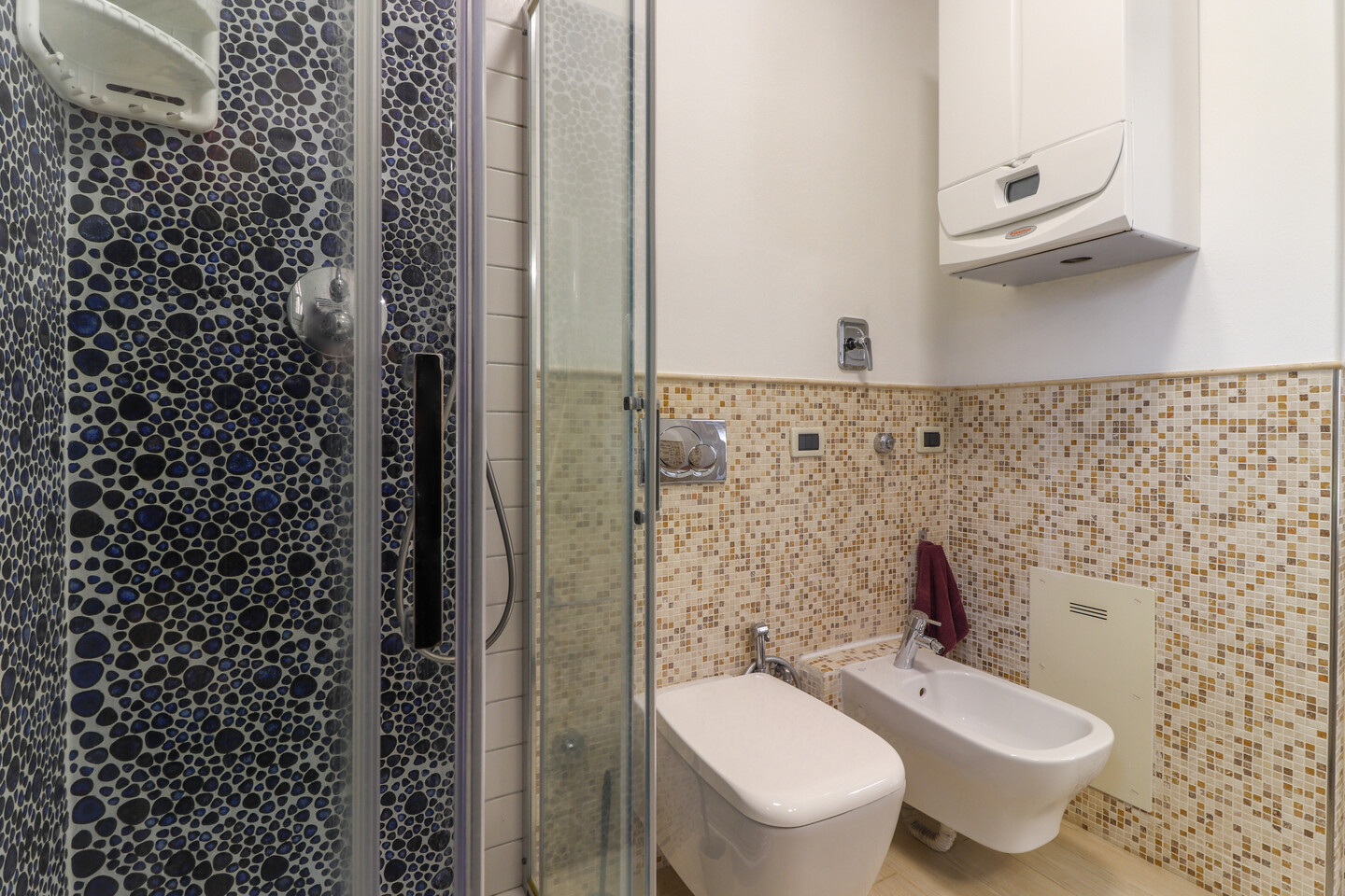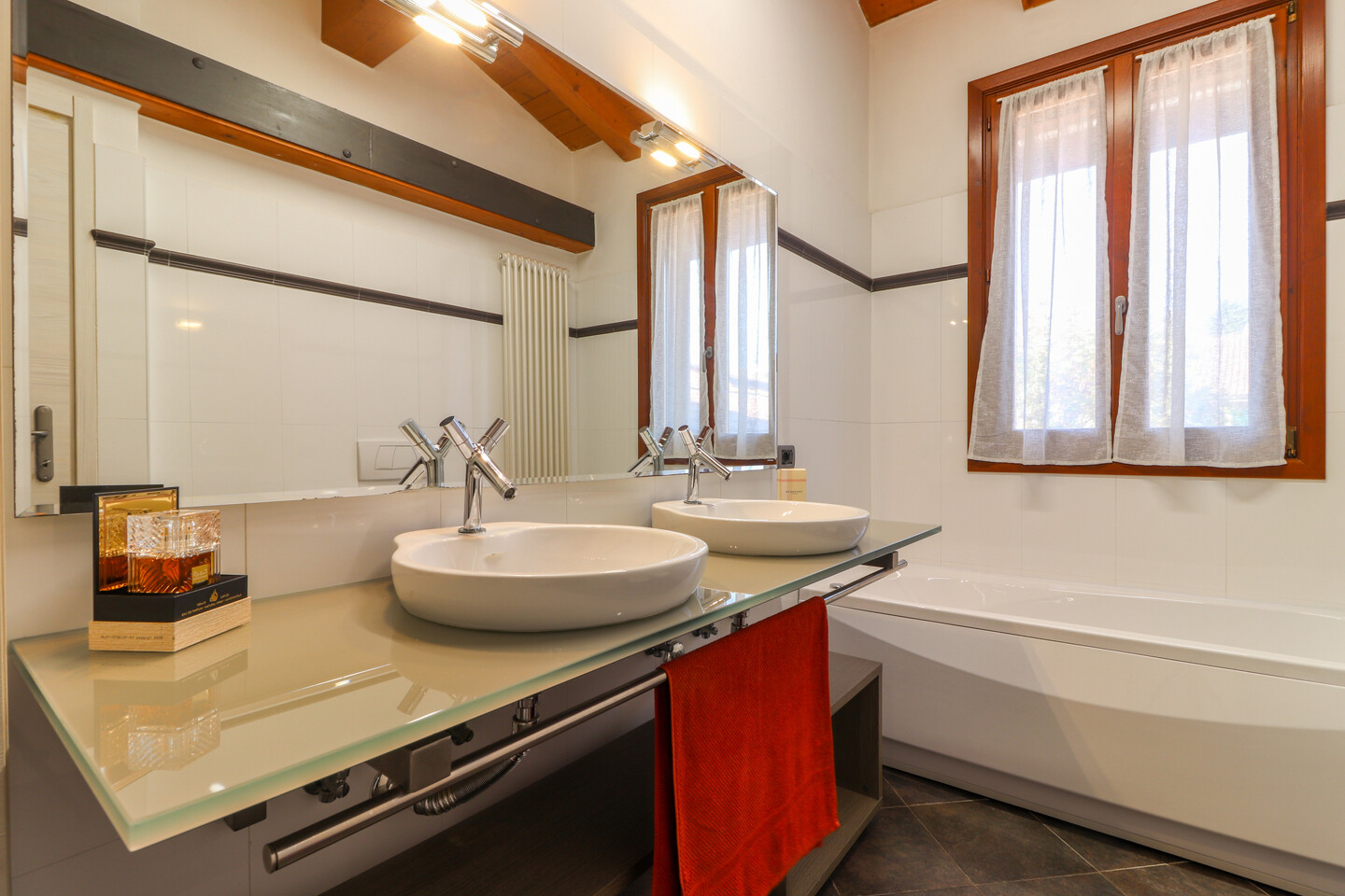 Al piano superiore, caratterizzato da suggestivi soffitti mansardati in legno alti fino a 3,20 metri, si trovano 1 camera matrimoniale con accesso diretto alla terrazza, 1 camera doppia e un bagno spazioso dotato di vasca e doppio lavabo.