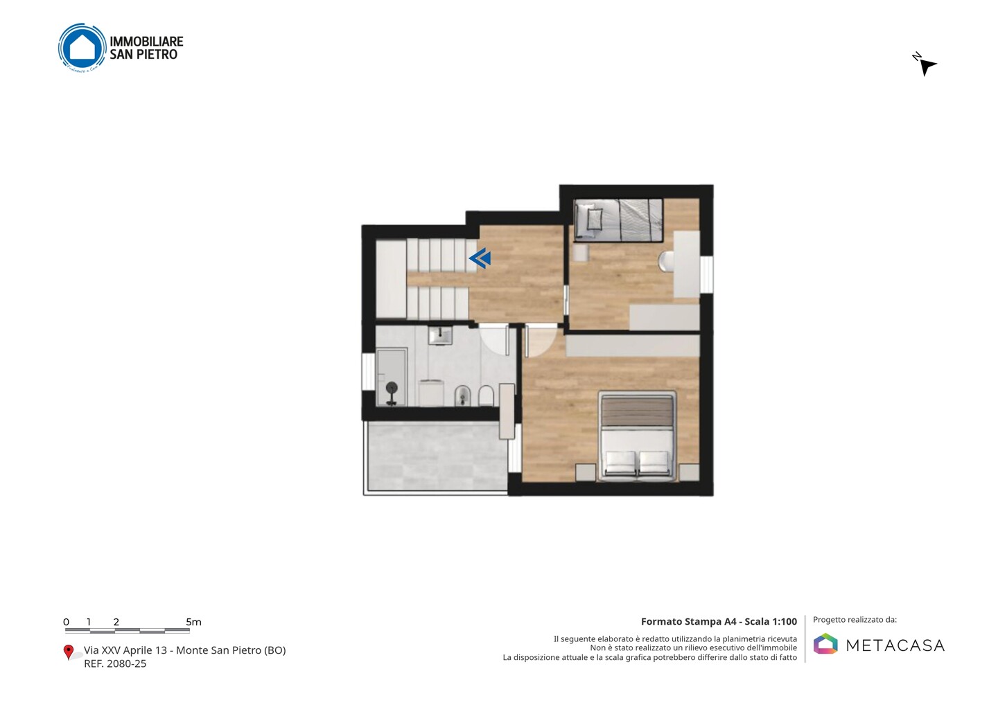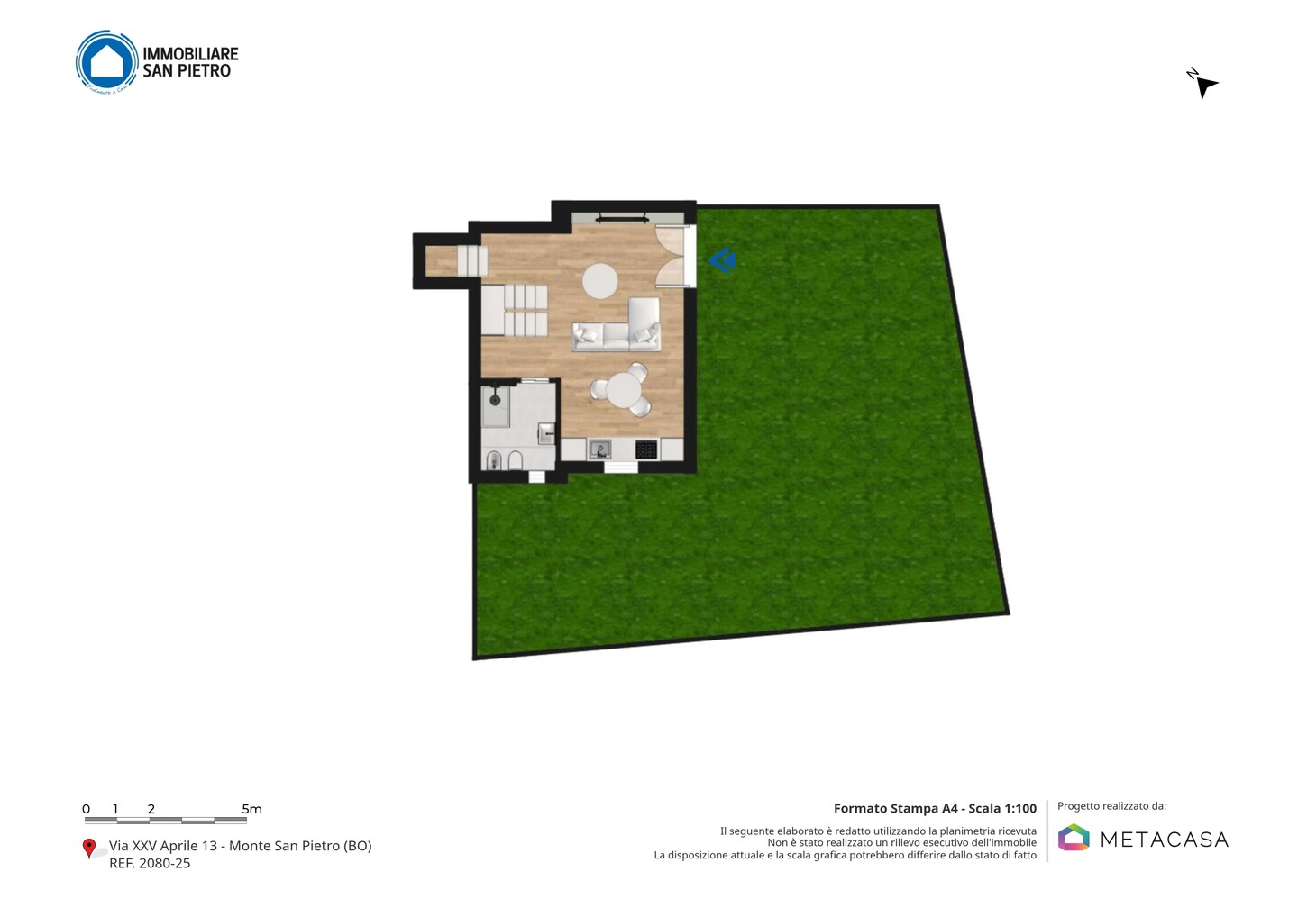 L’immobile si trova in Via XXV Aprile n. 13 a Monte San Pietro, un contesto residenziale molto apprezzato per tranquillità, verde e qualità della vita.