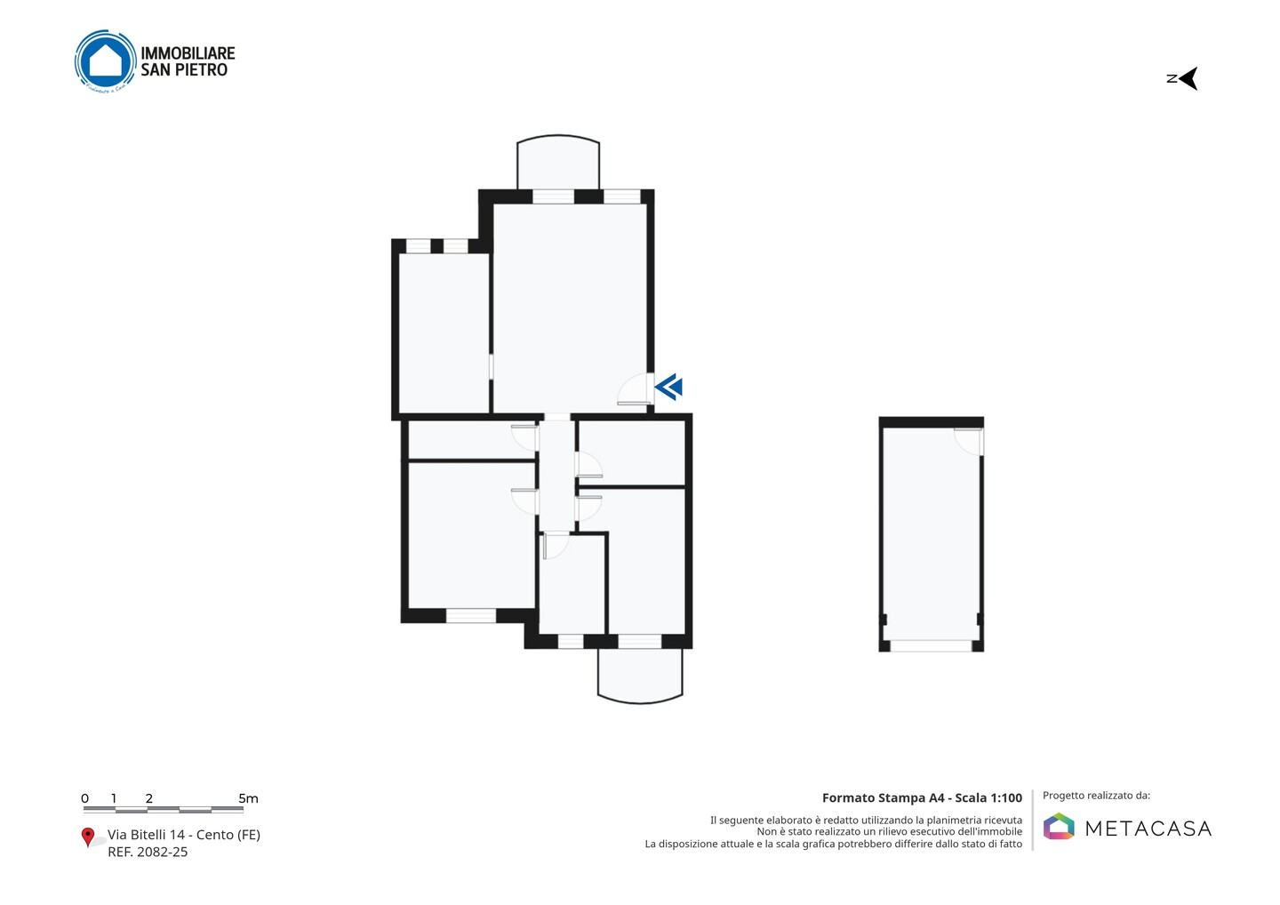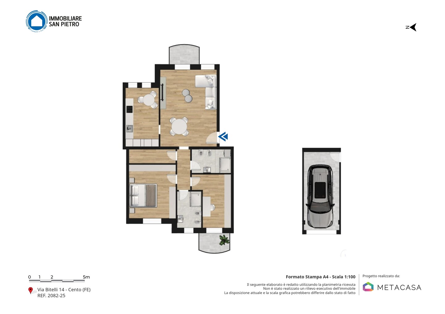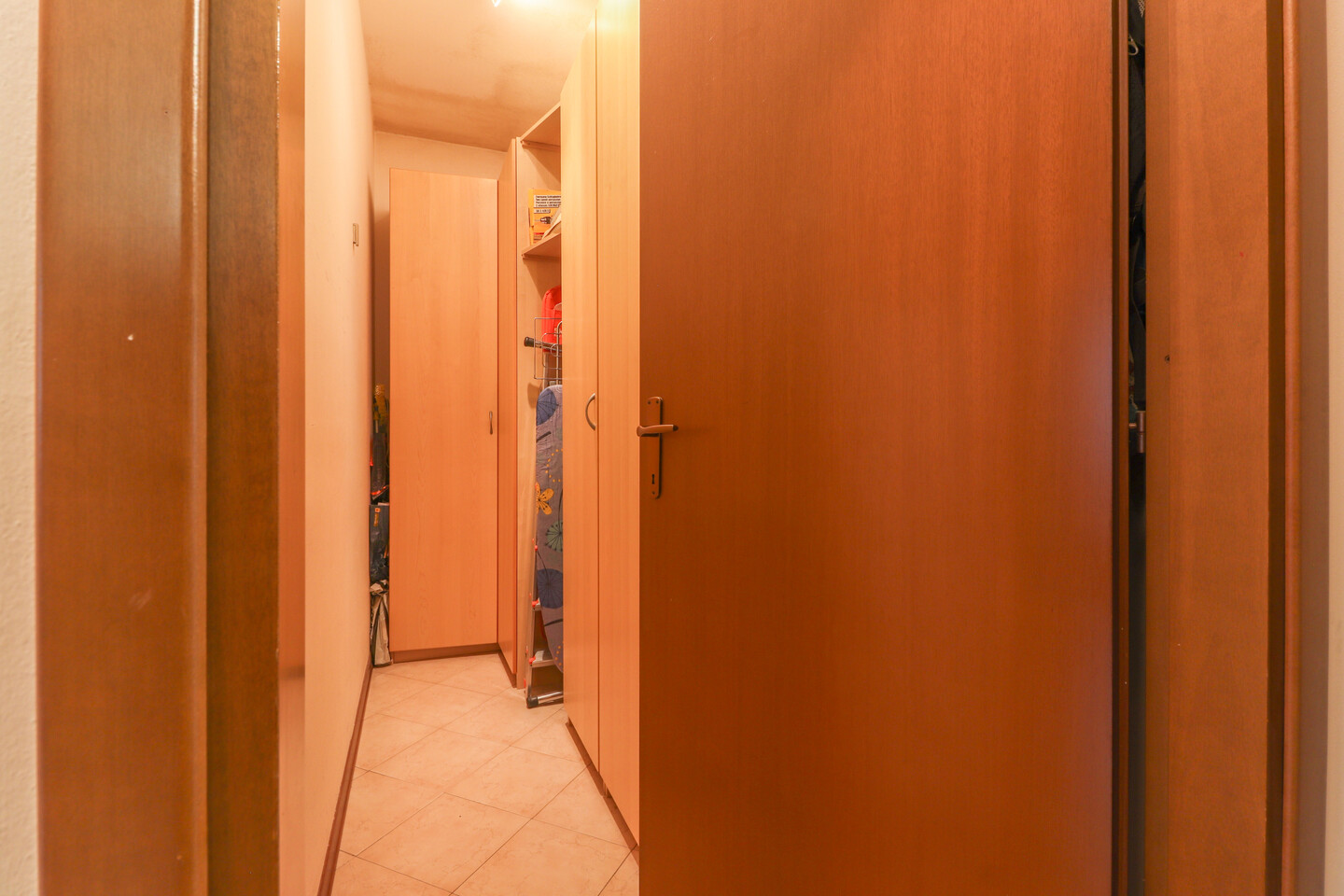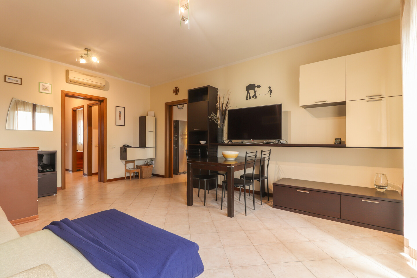 Ingresso su soggiorno con accesso al balcone, cucina abitabile, disimpegno, camera da letto matrimoniale, studio, bagno e ripostiglio. A completare la proprietà garage al piano terra.