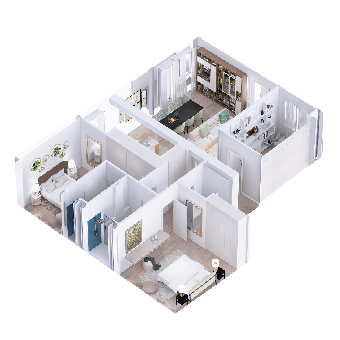 L’appartamento è composto da luminoso soggiorno, cucina abitabile, entrambi con accesso a due balconi vista mare, 2 camere da letto matrimoniali, un ripostiglio zona lavanderia e un bagno.